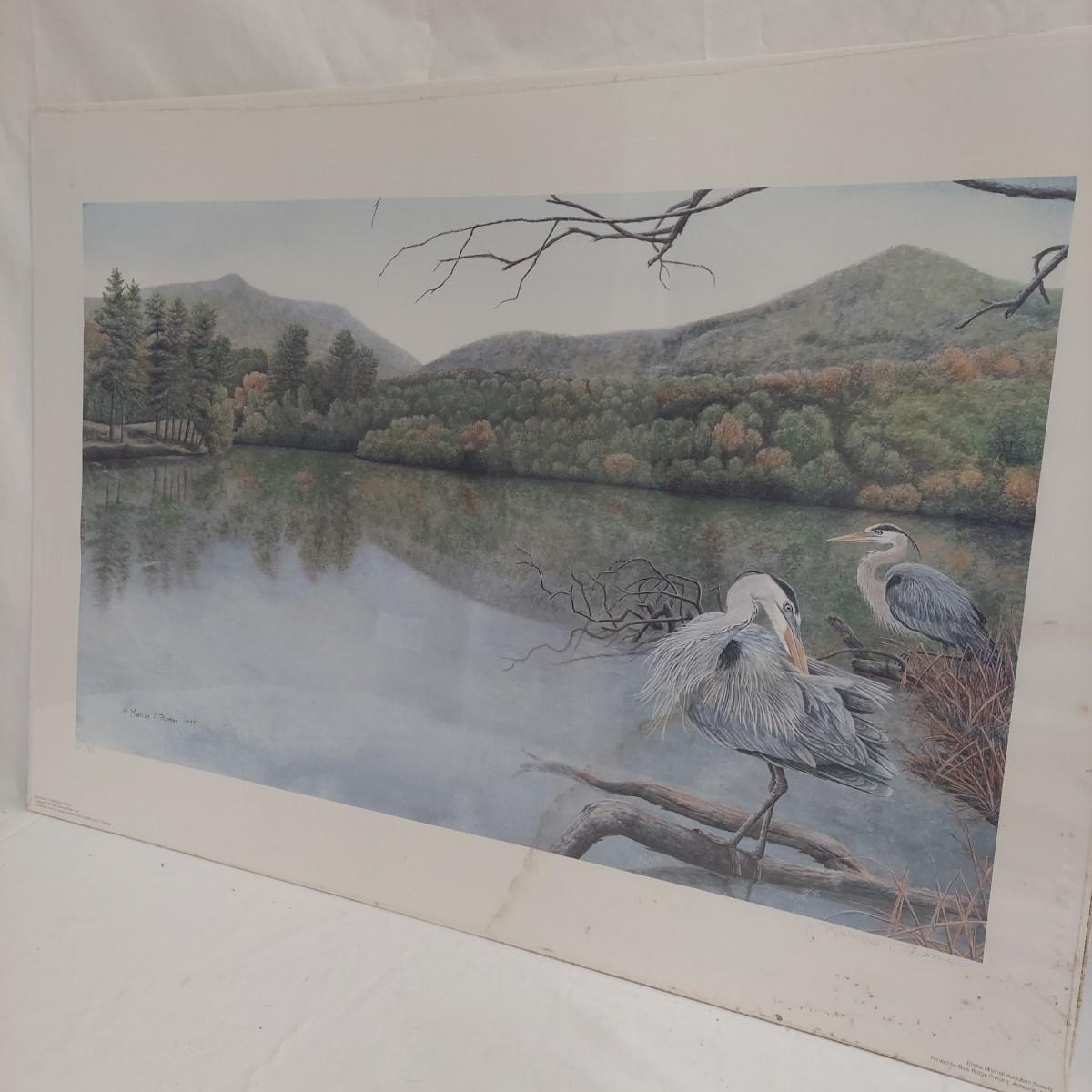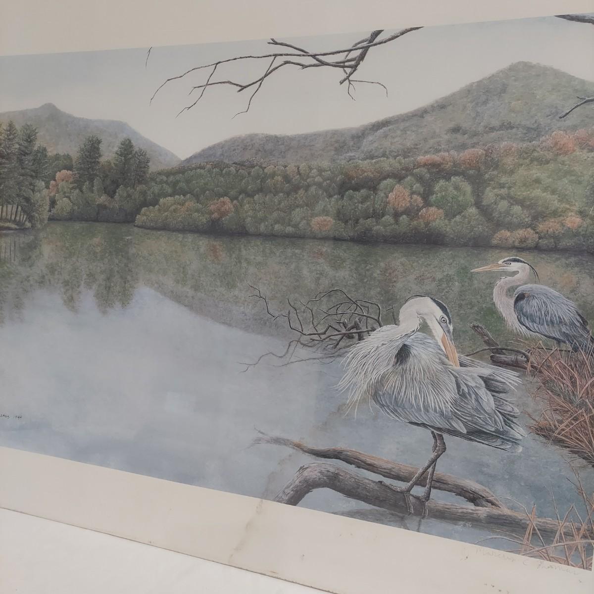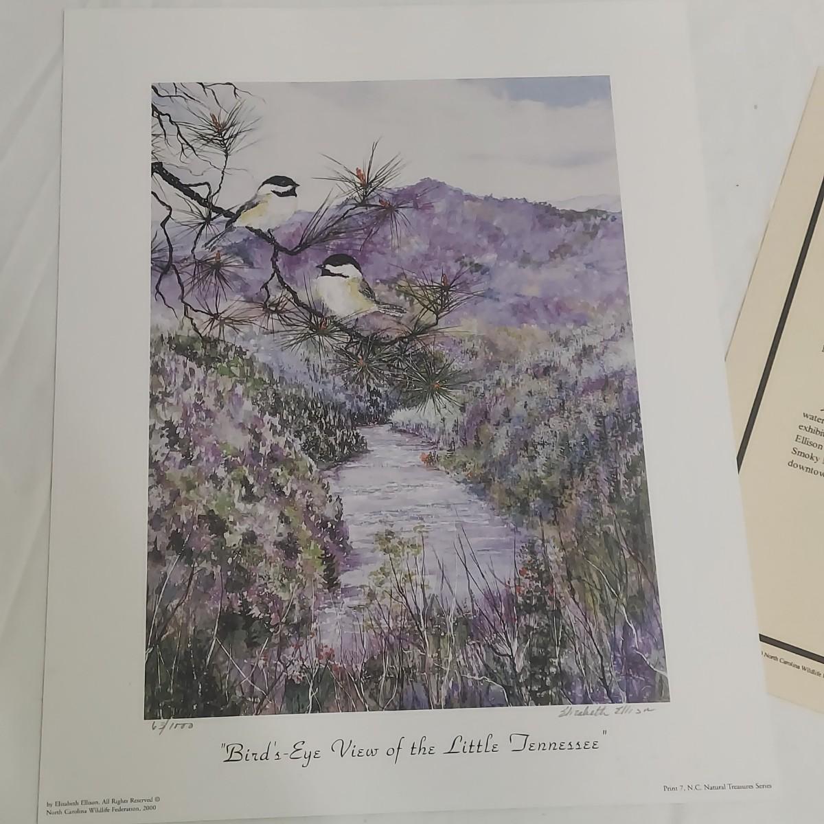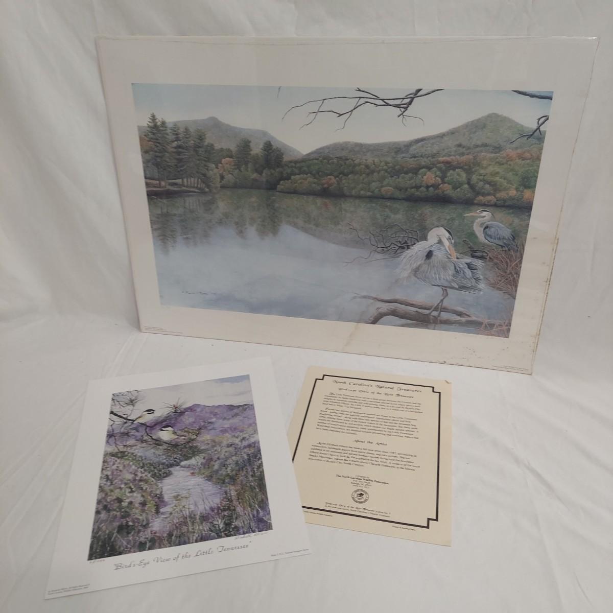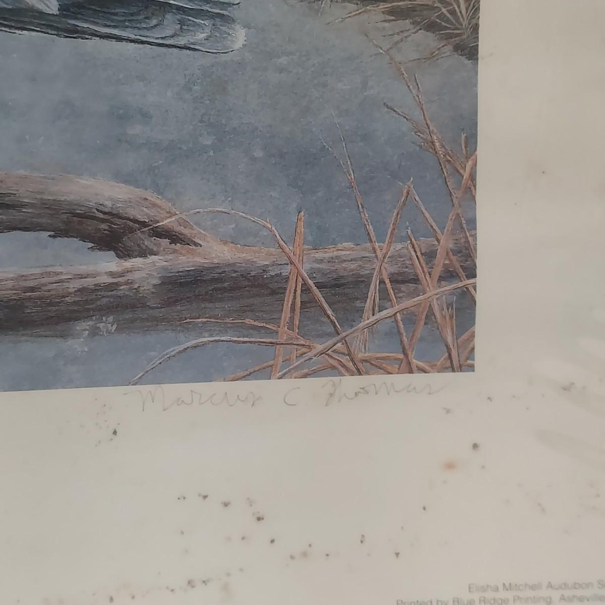Lot includes signed and numbered print Sanctuary by Marcus C. Thomas Of Asheville's own Beaver Lake. Plus an additional signed and numbered print by Elizabeth Ellison with a certificate of authenticity. Some condition issues. Please see photos for details. Shipping available
