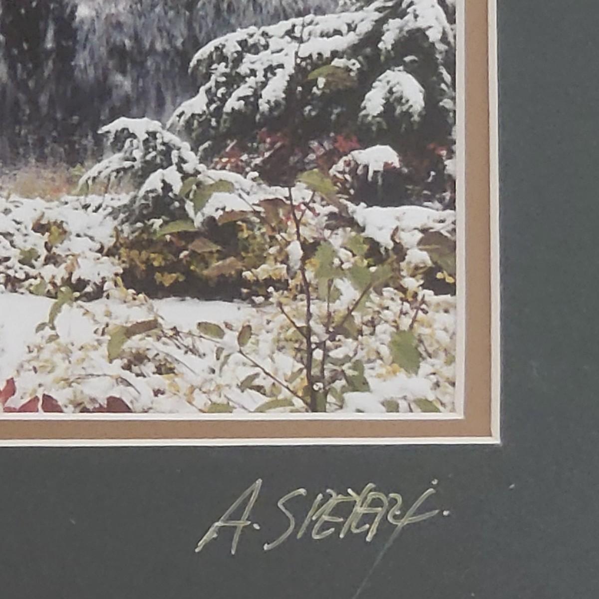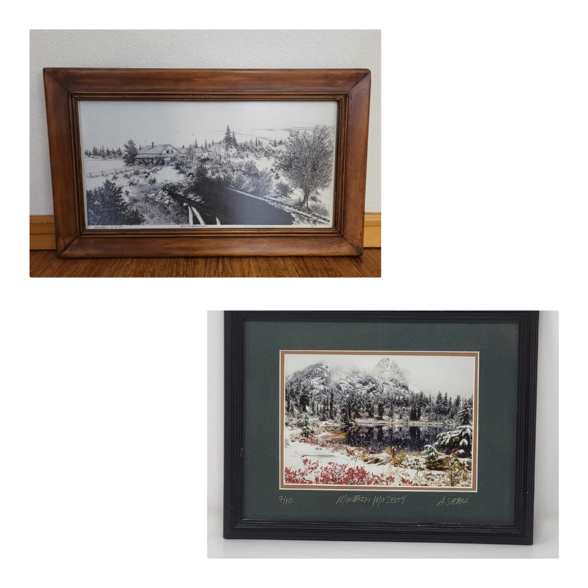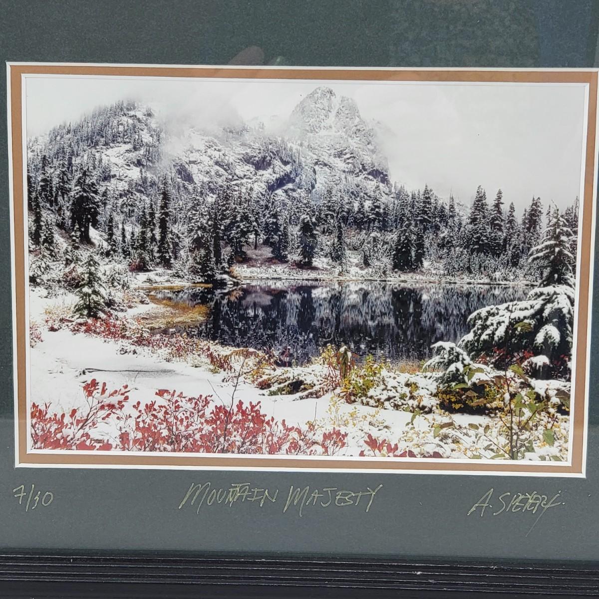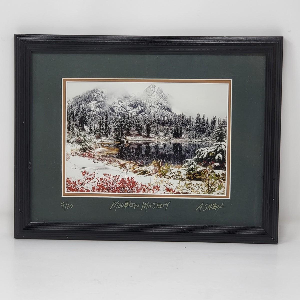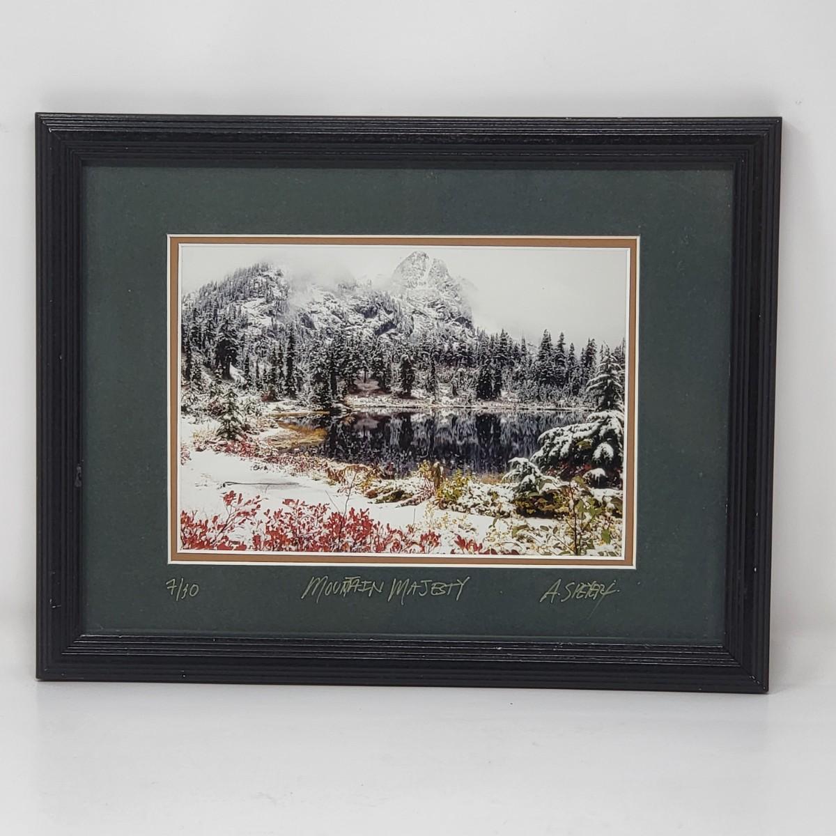 Mountain Majesty by artist A. Speyer, matted & black frame 13" x 10". Numbered 7/10.