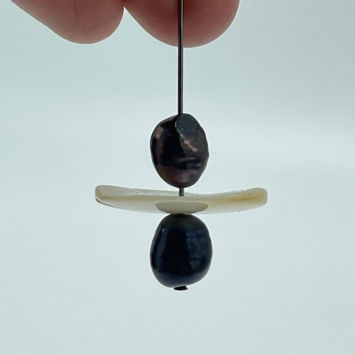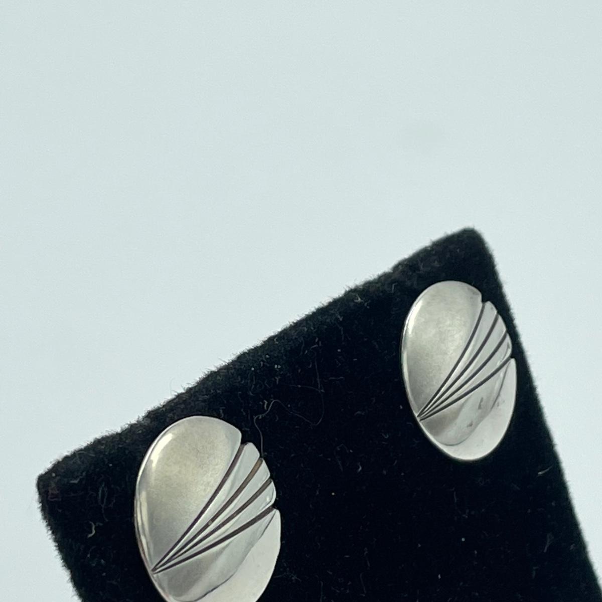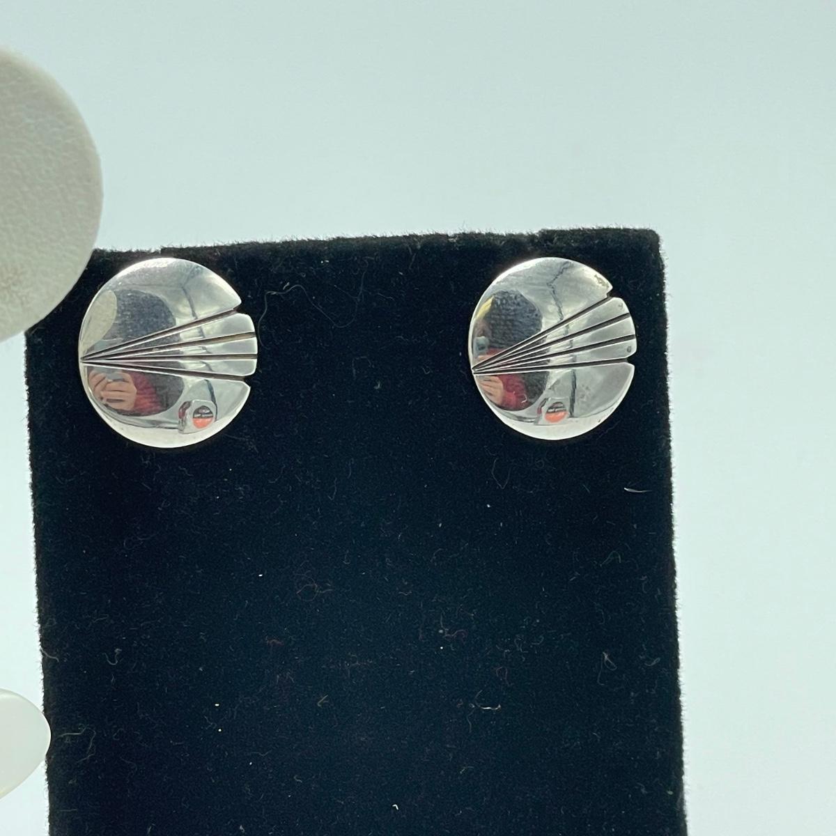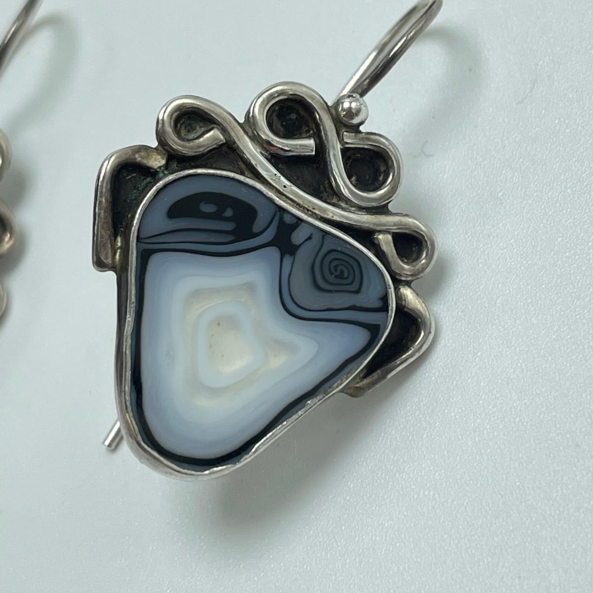 Sterling studs by Navajo Steve Yellowhorse, another pair marked 925 signed, these have a glass like center in their sterling setting. Lastly a dangle pair of French wire earrings with two black freshwater pearls each. See images. Shipping available.