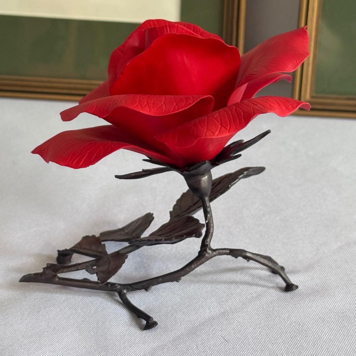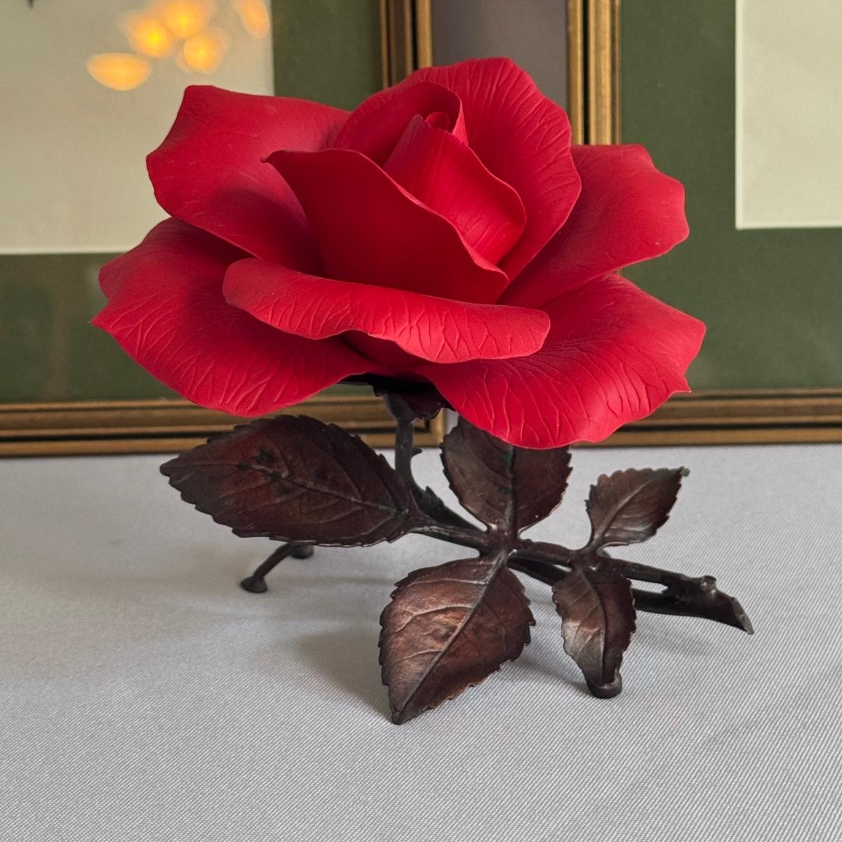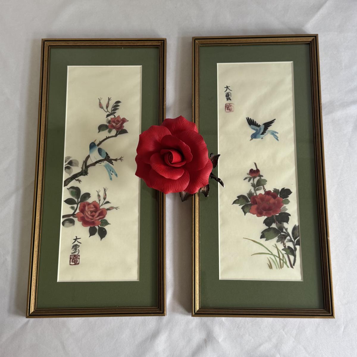 Two Silk Paintings w/ Boehm “Mr.Lincoln” Rose (GB-DZ)