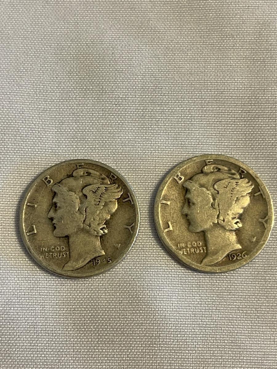 TWO MERCURY SILVER DIMES