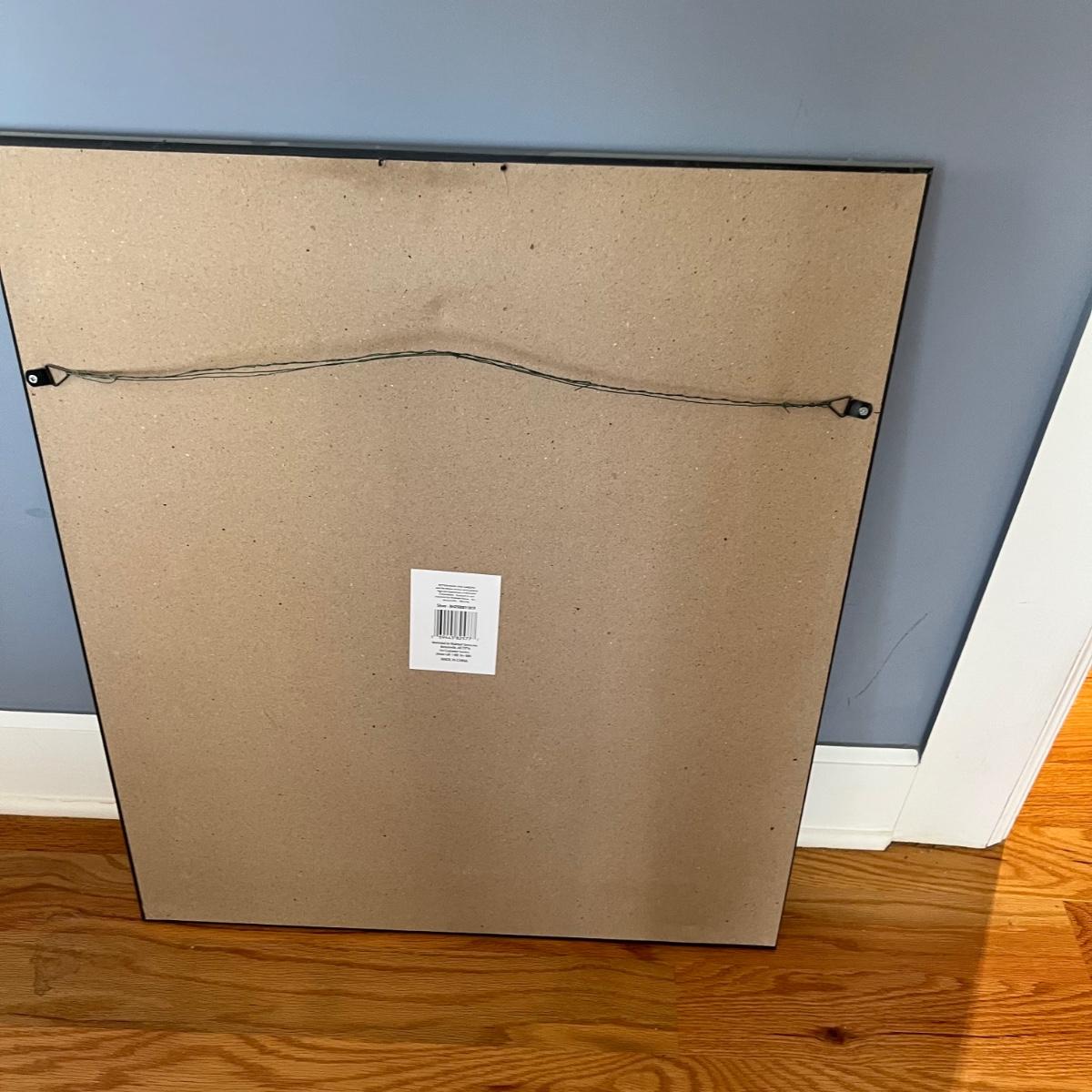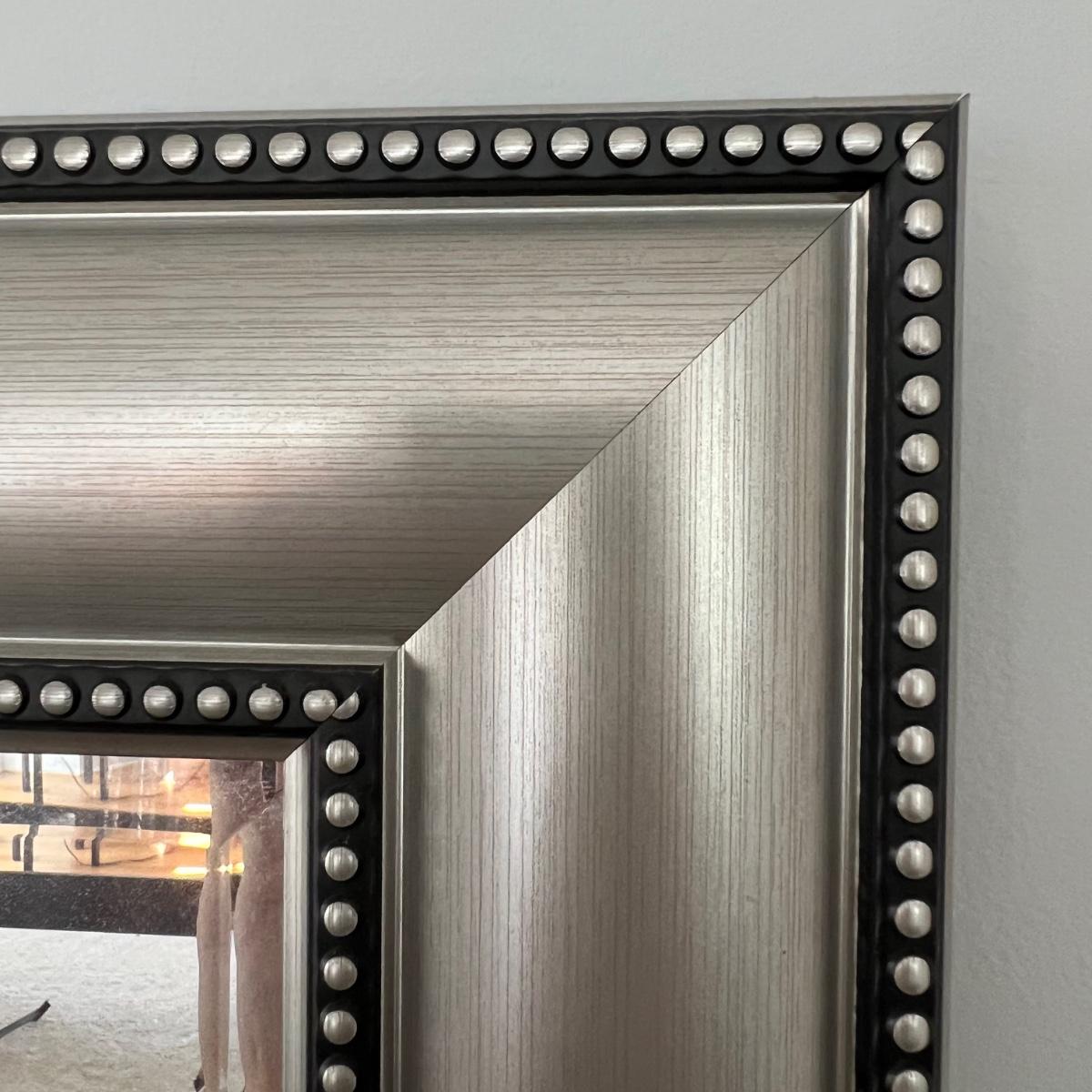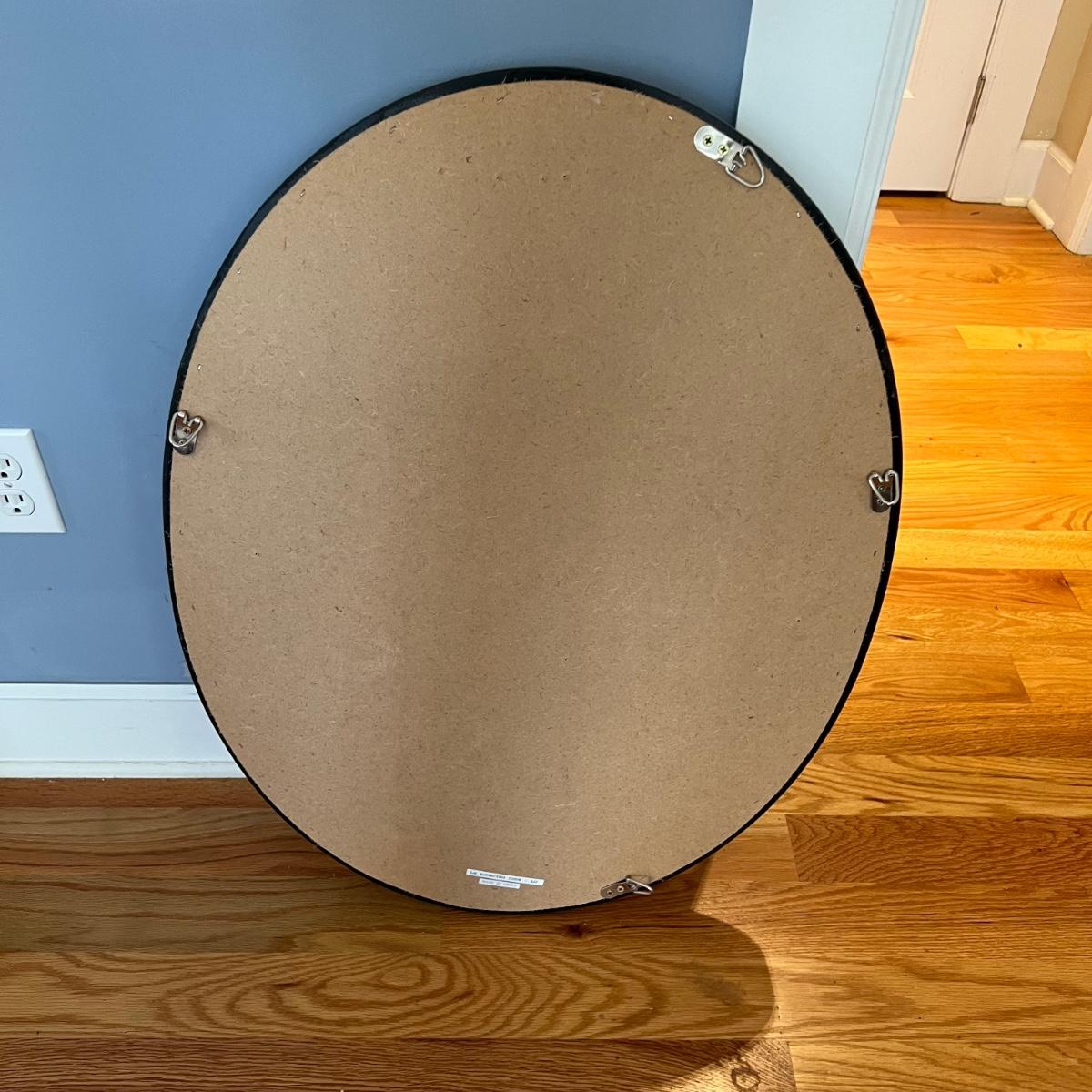 Two silver colored frame mirrors. Large square mirror is 22“ x 28”. The oval mirror is 23” x 24”. Note the small scratch on the square mirror shown in the photographs. Both frames are made of high density styrofoam. Local pickup only..