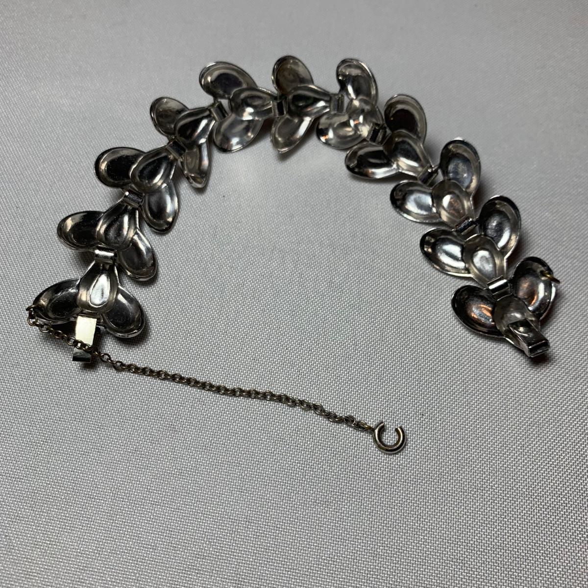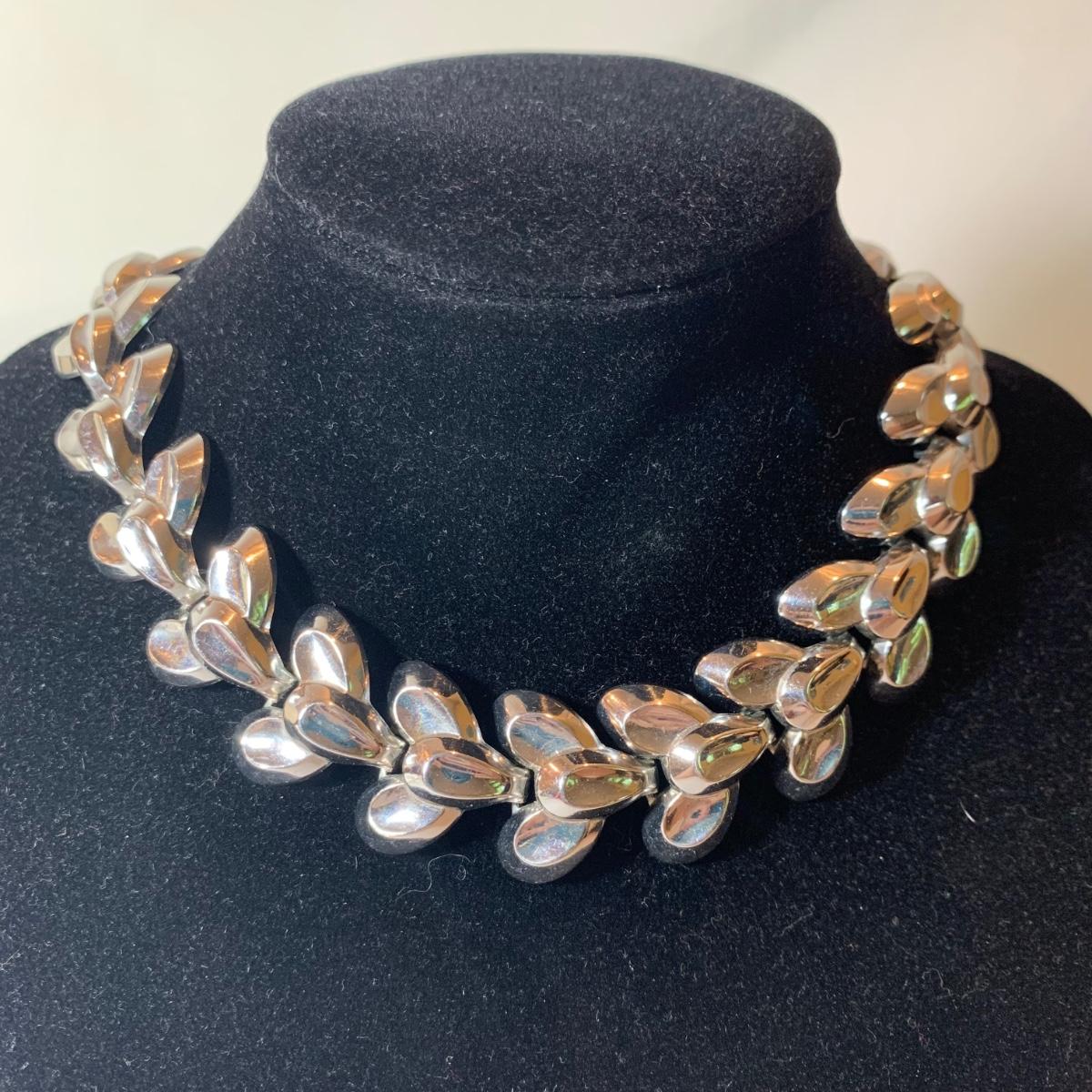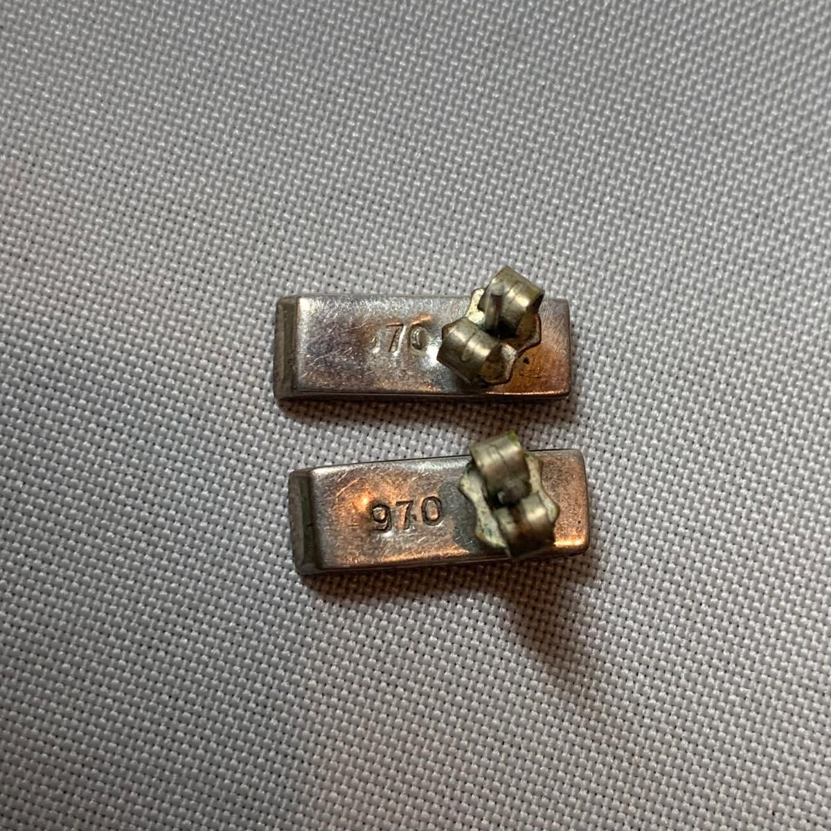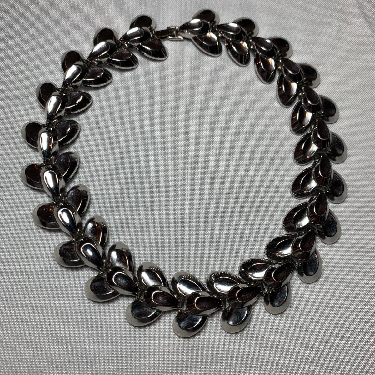 Two sets of silver colored jewelry. One set has a necklace and earrings with gorgeous rectangular blue colored stones. The necklace is 20” long. The necklace metal is marked 980 and the earrings are marked 970. The other set features a matching necklace and bracelet. This set is marked “˜Monet’. This necklace is 14.5”. The bracelet closes but has a secondary clasp that is broken; see photos.