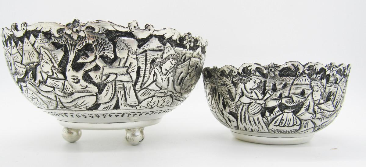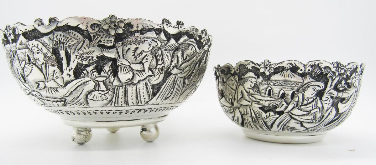 Two sizes of Persian matching footed bowls, marked 84 standard silver. 9.065 ozt