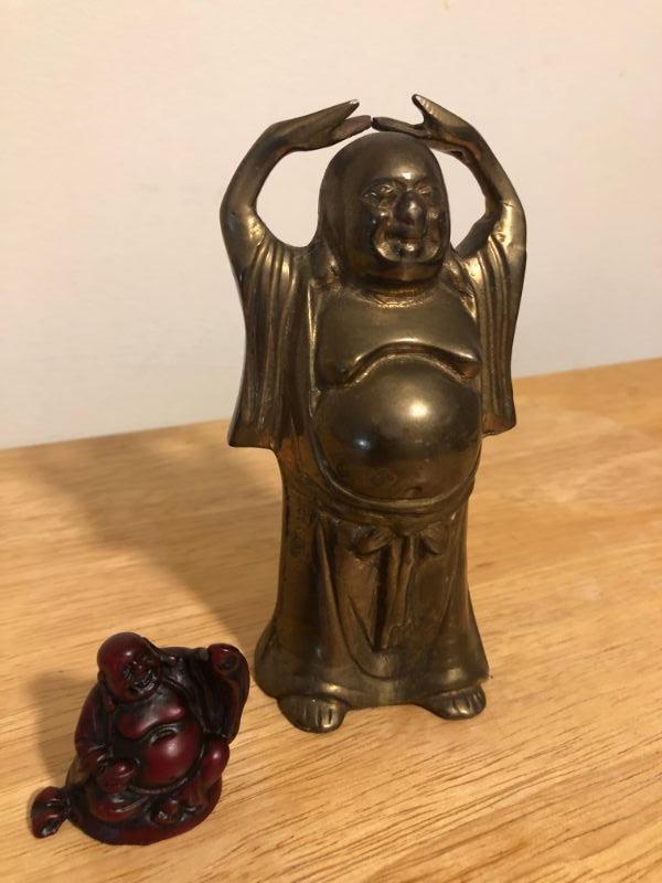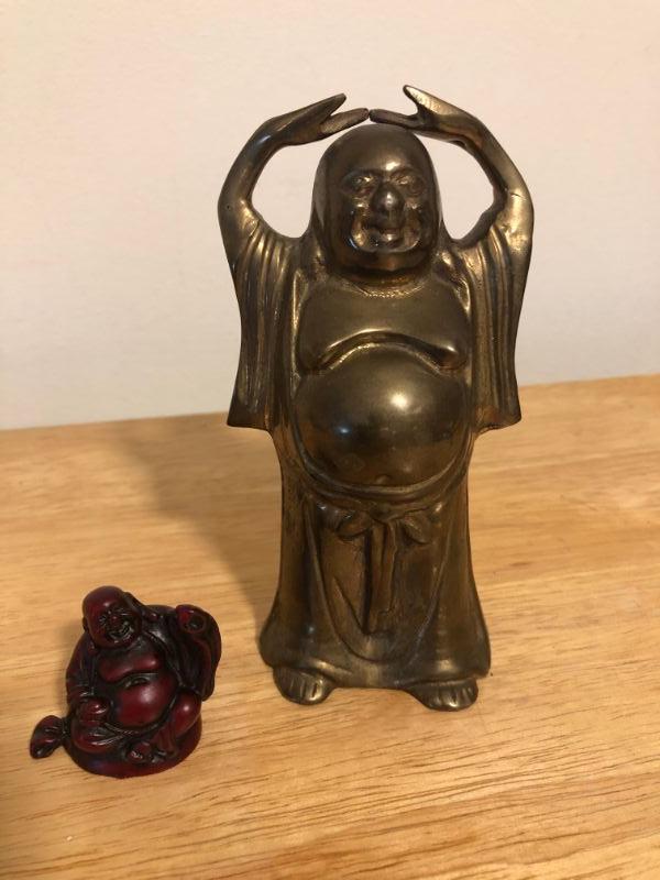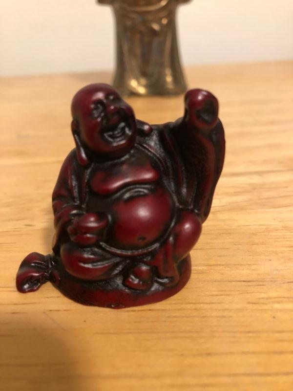 Brass Buddha about 5.5" and 2" Red Stone carving. **Please read Terms and Conditions before placing a bid. Pick up is Thursday, August 15, 2019 from 4pm to 7pm or Sunday, August 18 from 11am-2pm in Mullica Hill. All sales are final. All sales are as is, where is. Please review all photos. Any props included in photos are not included in listing. All measurements are approximate.