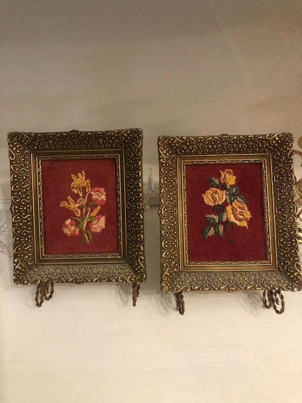 TWO small pictures with needlepoint
