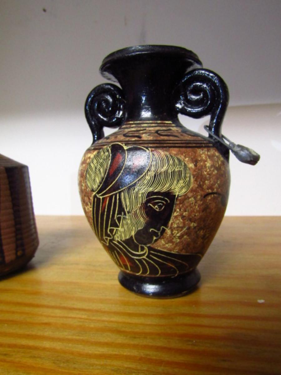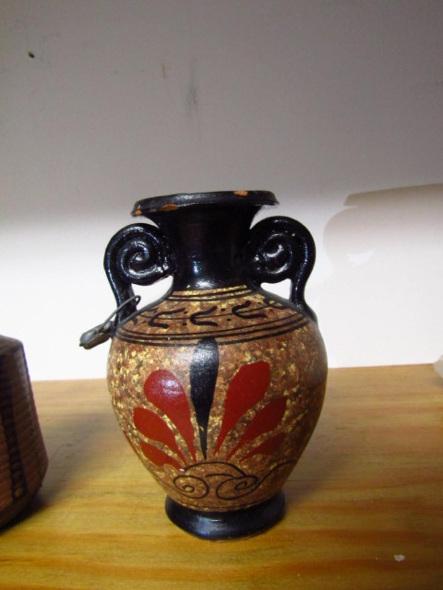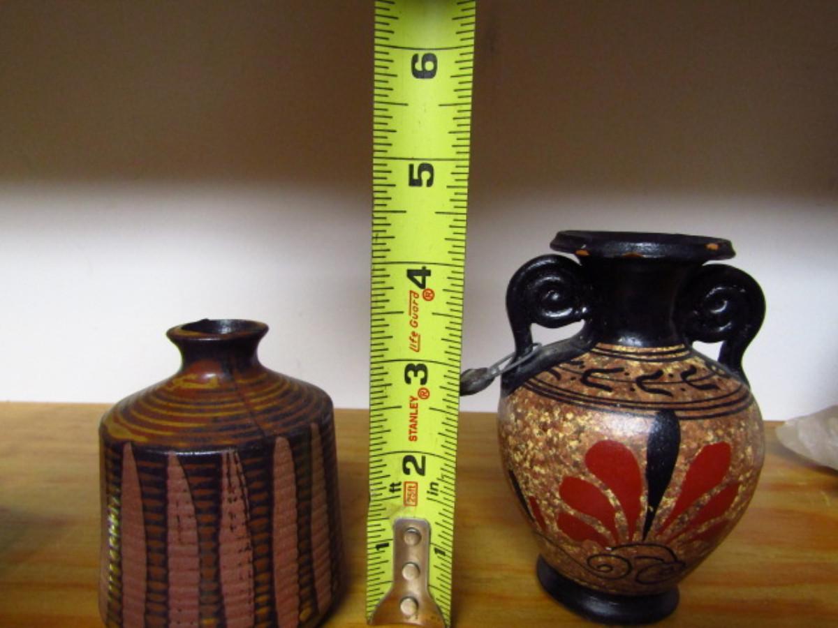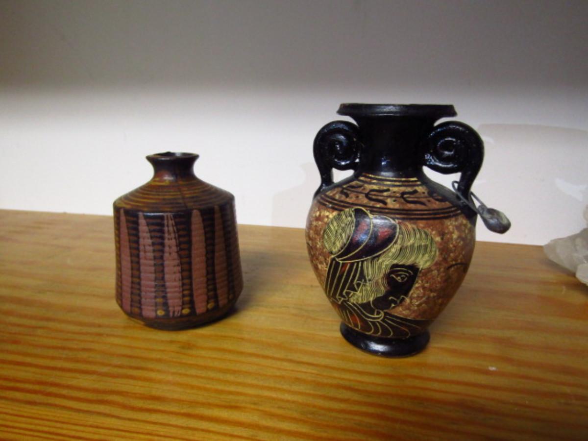 Two Small Pottery Vases, Urn shaped one is made in Greece.