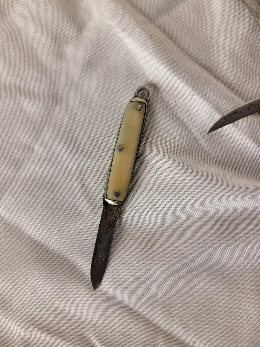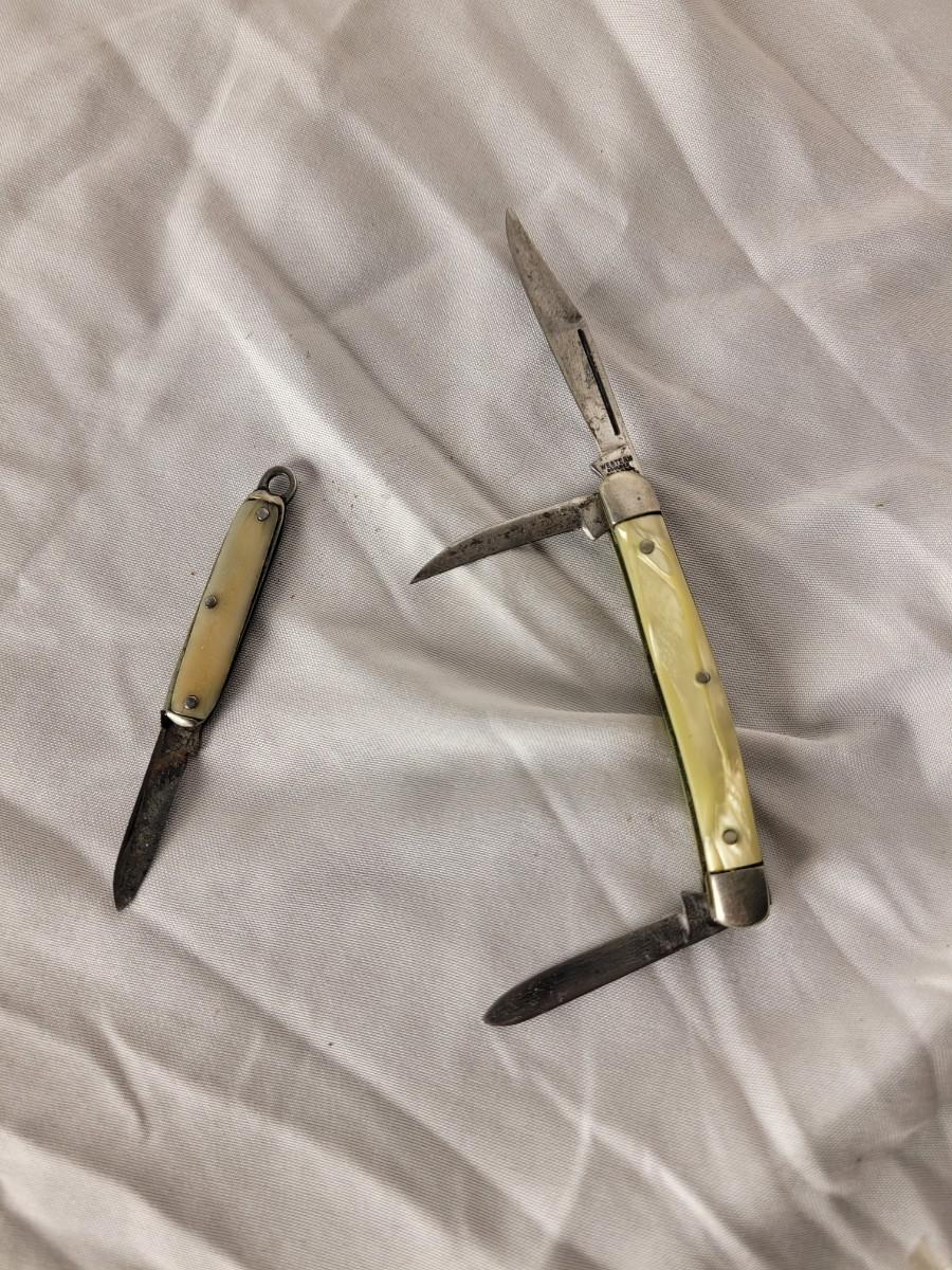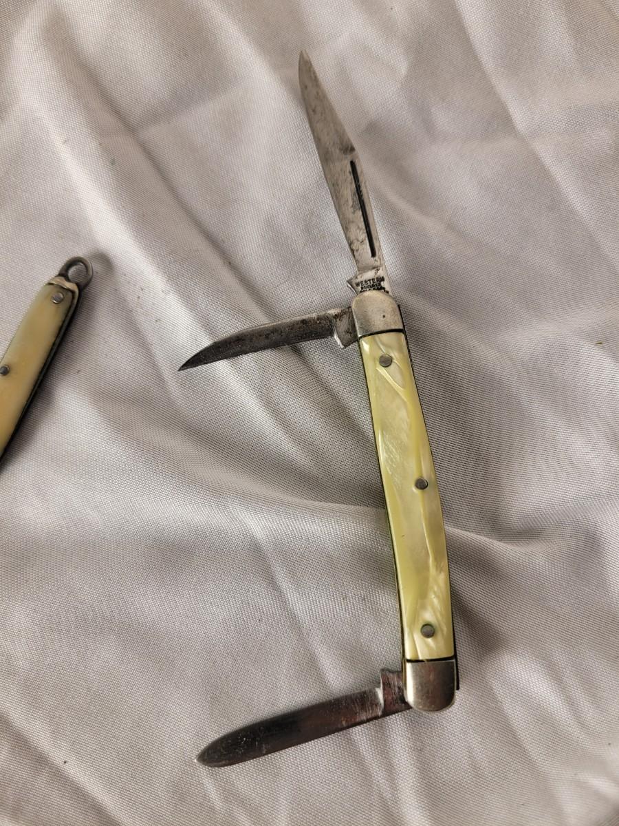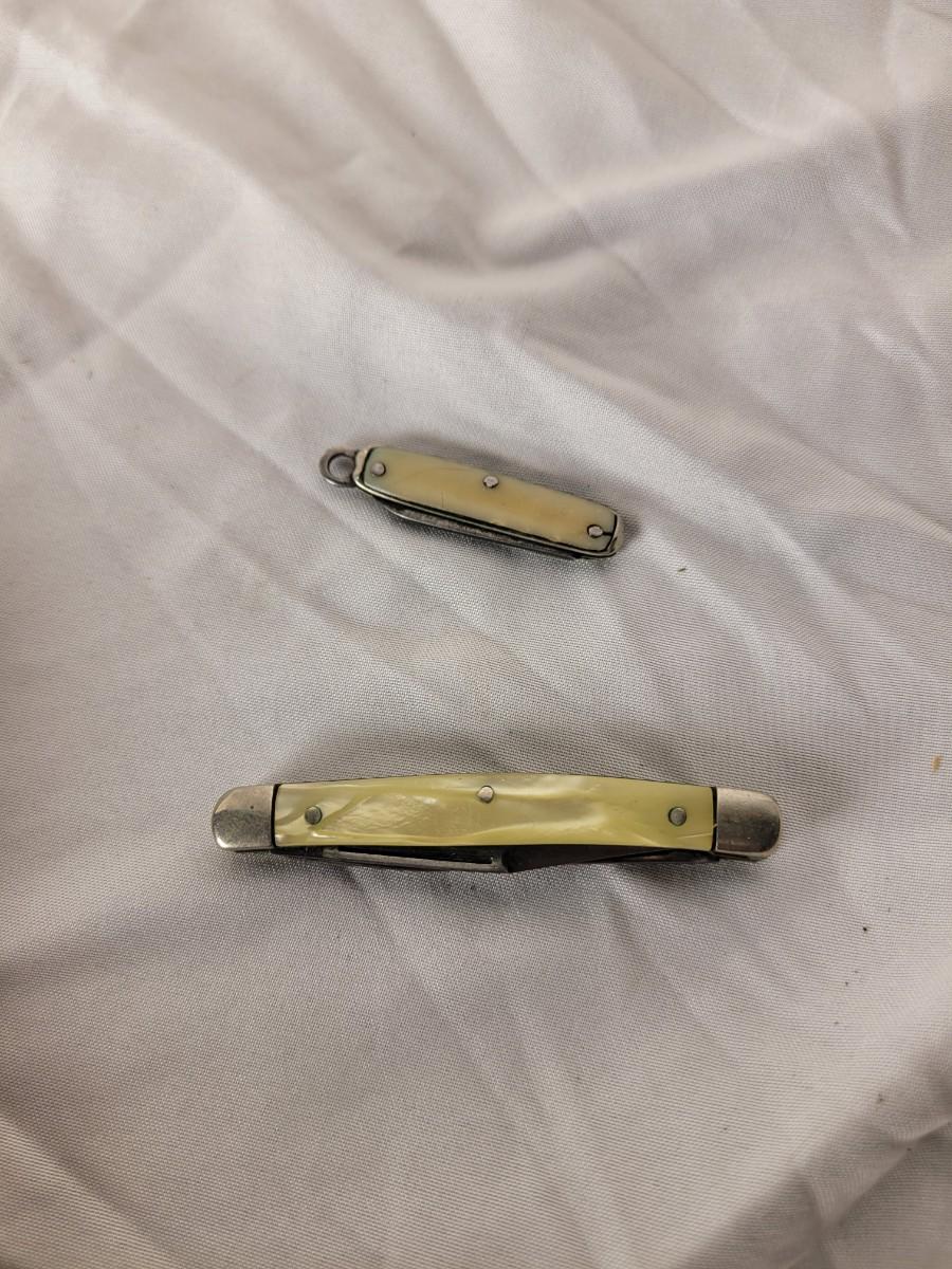 Two smaller vintage pocket knife/Keychain knives pearl iridescent