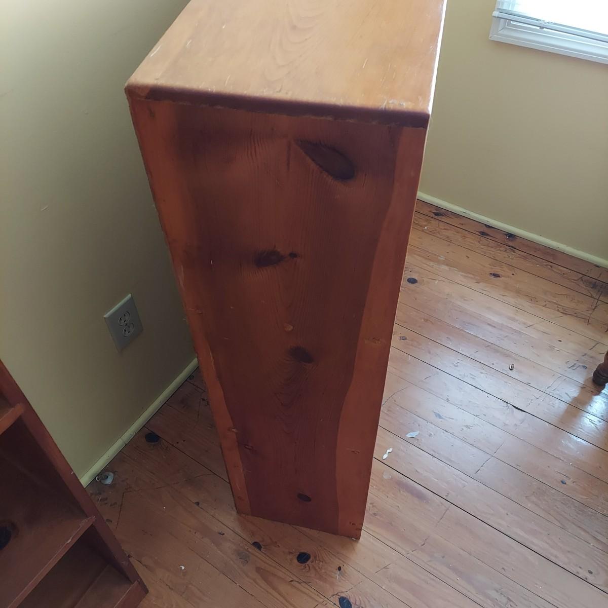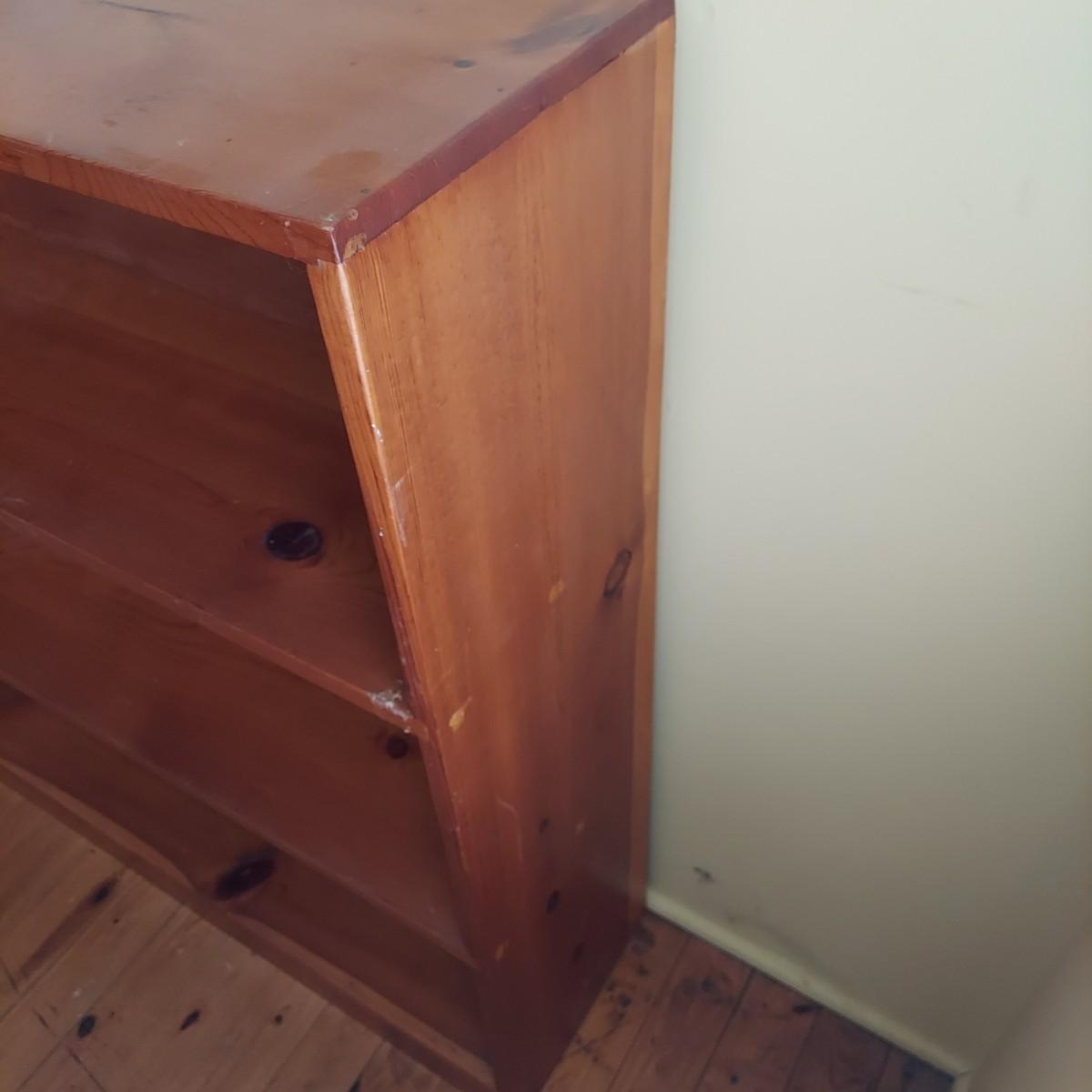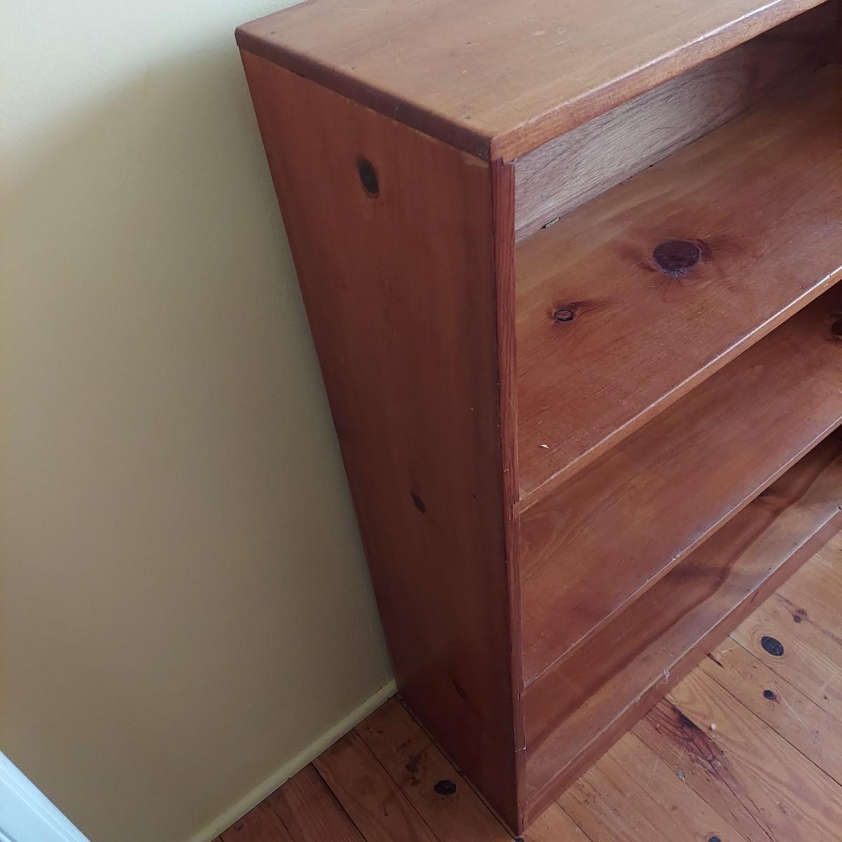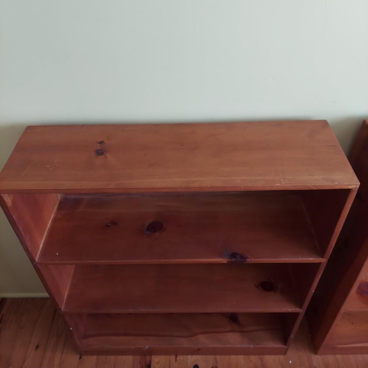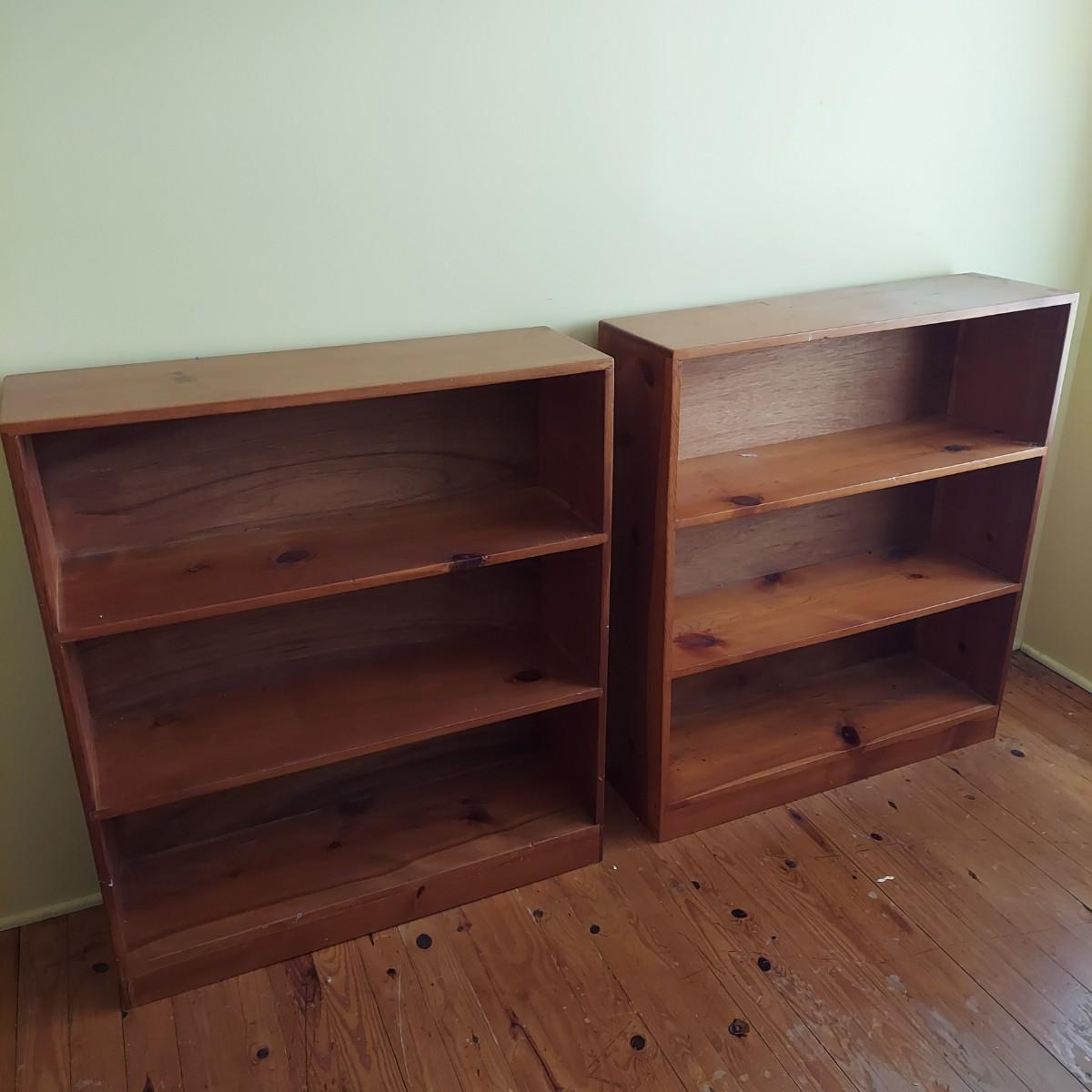 Two solid wood bookshelves with fixed shelves. Each measure 36.5” x 11.5” x 42"H. A few overall nicks. Please see photos for details. Local Pickup Only