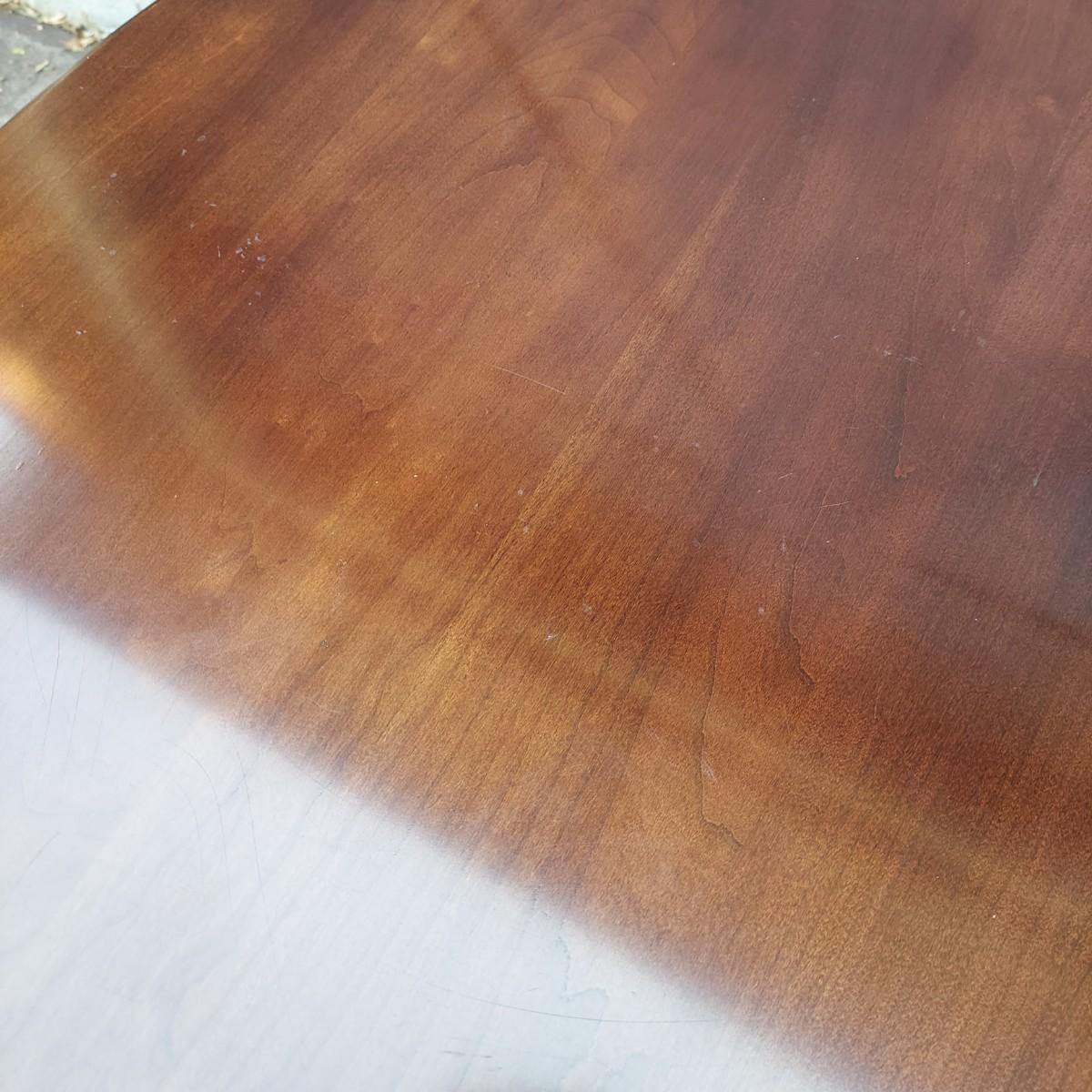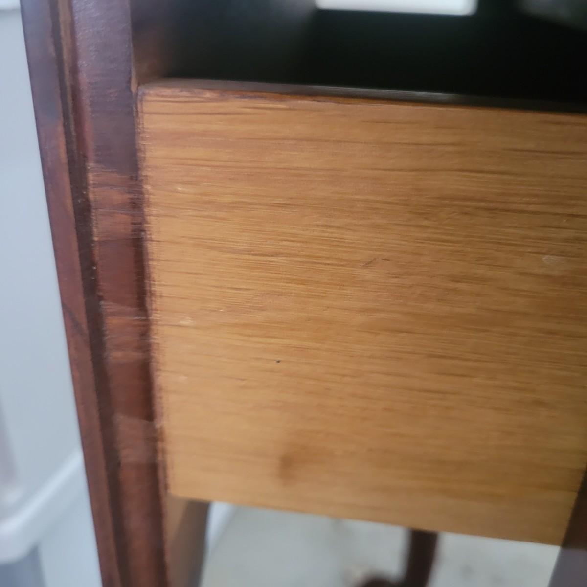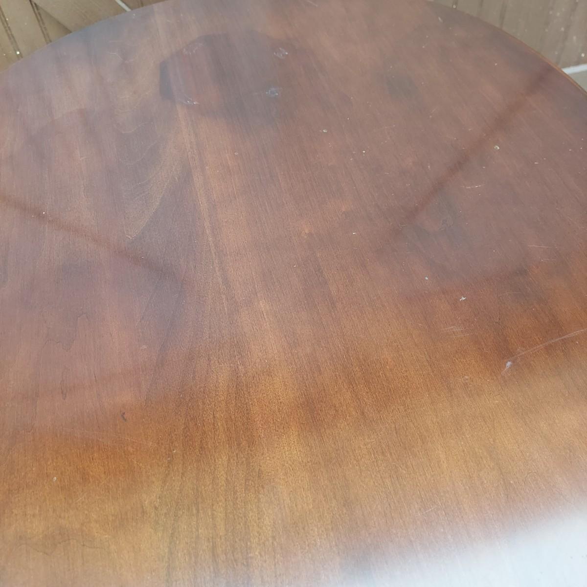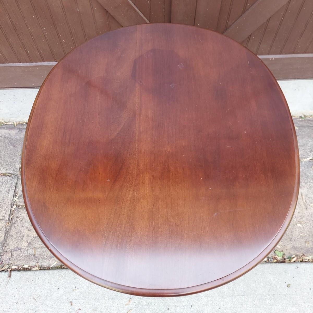Two solid wood side tables with storage drawer. Appears to be cherry wood and has dovetailed drawers. Made by Stratton Trutype Americana. Each are 23.5 x 26.5 x 23"H. Some signs of use on the top surfaces. Please see photos. Local Pickup Only.