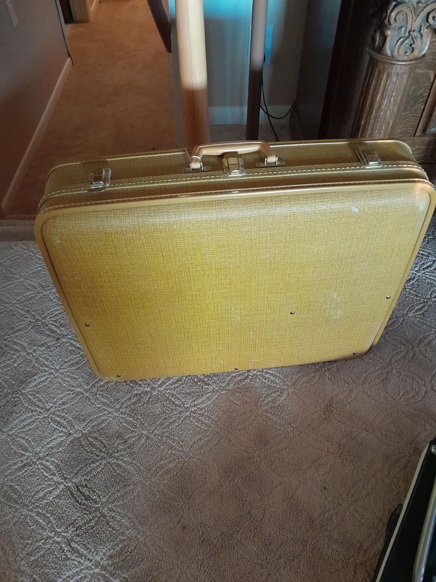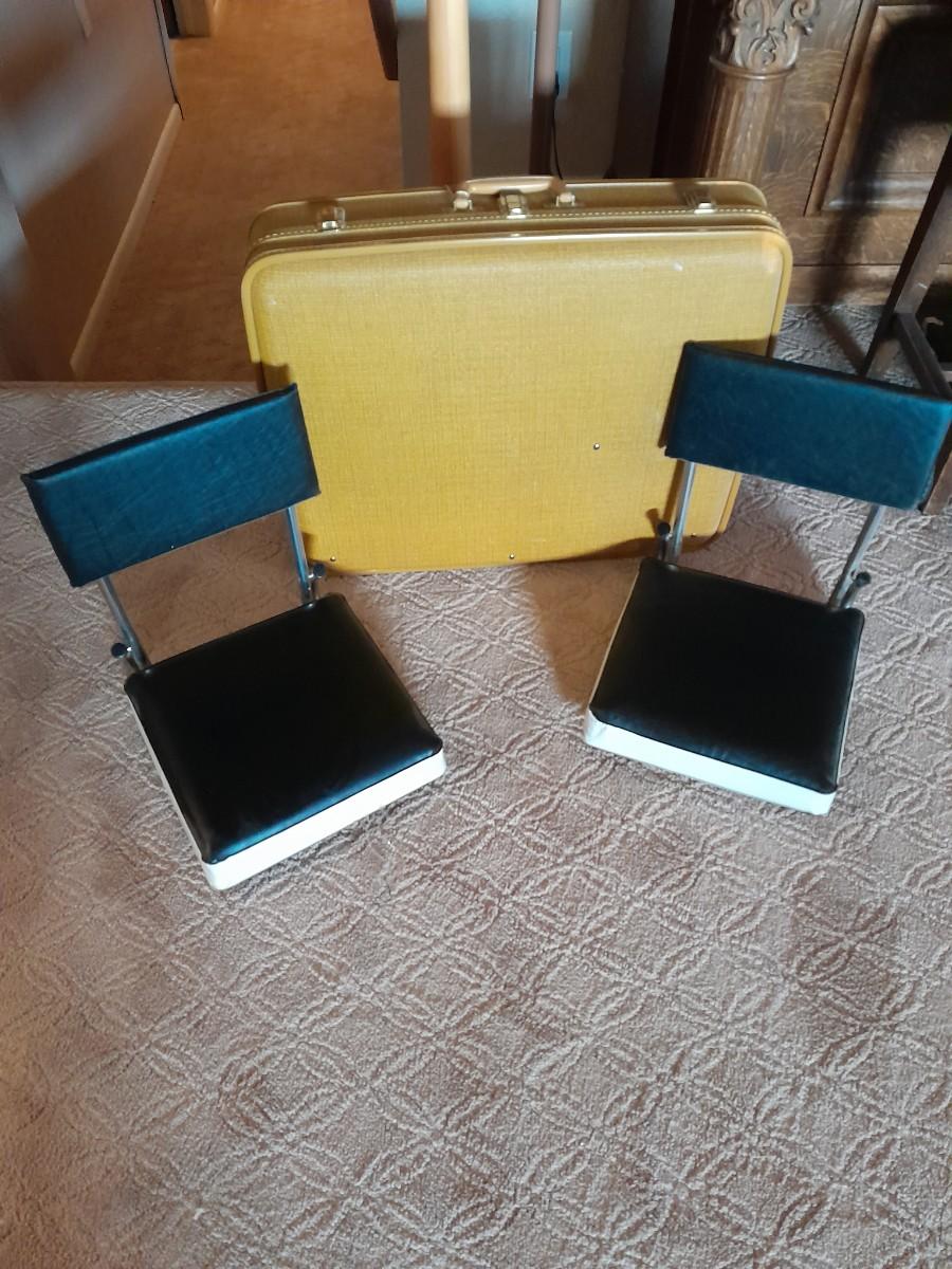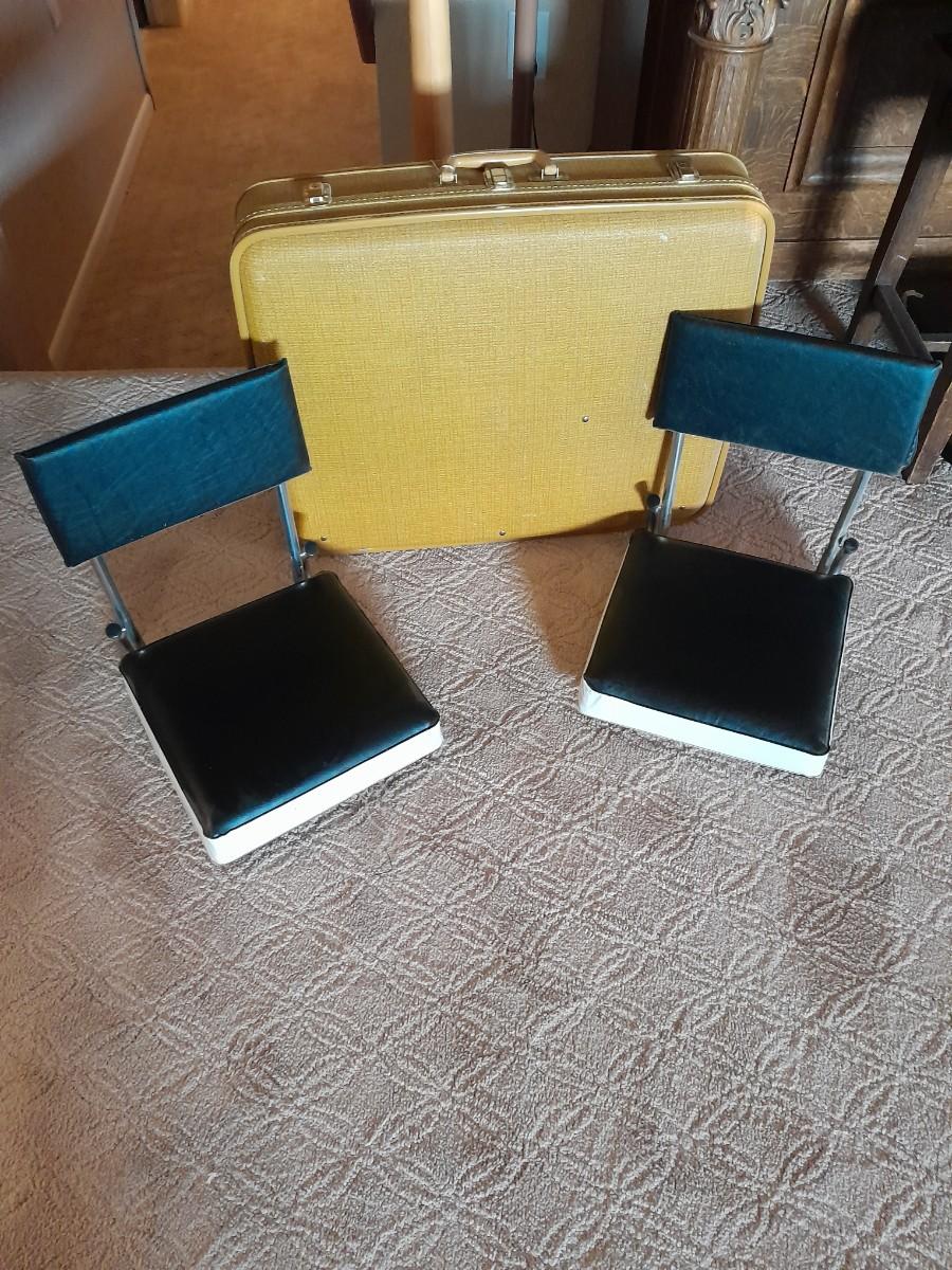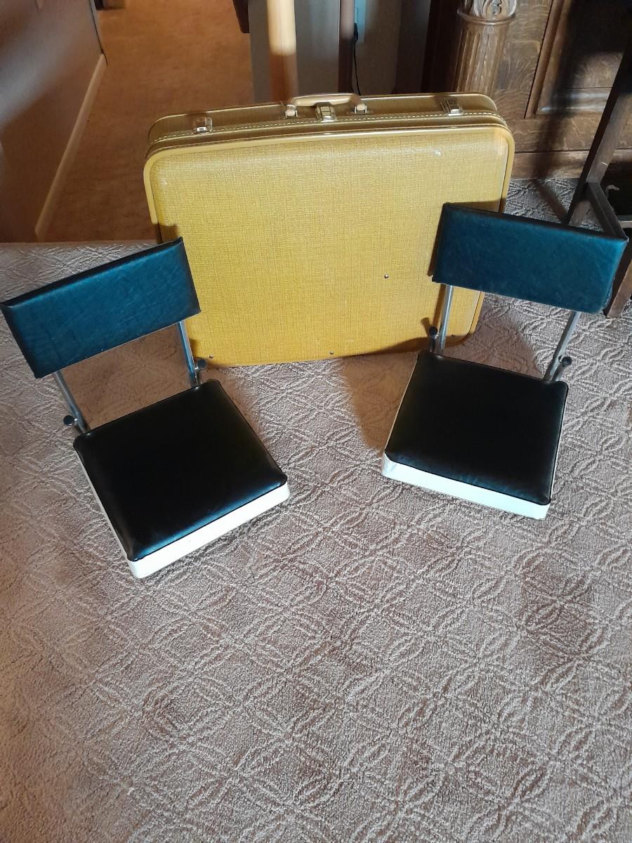 TWO STADIUM CHAIRS AND A LOCKING SUITCASE LIKE LUGGAGE PIECE