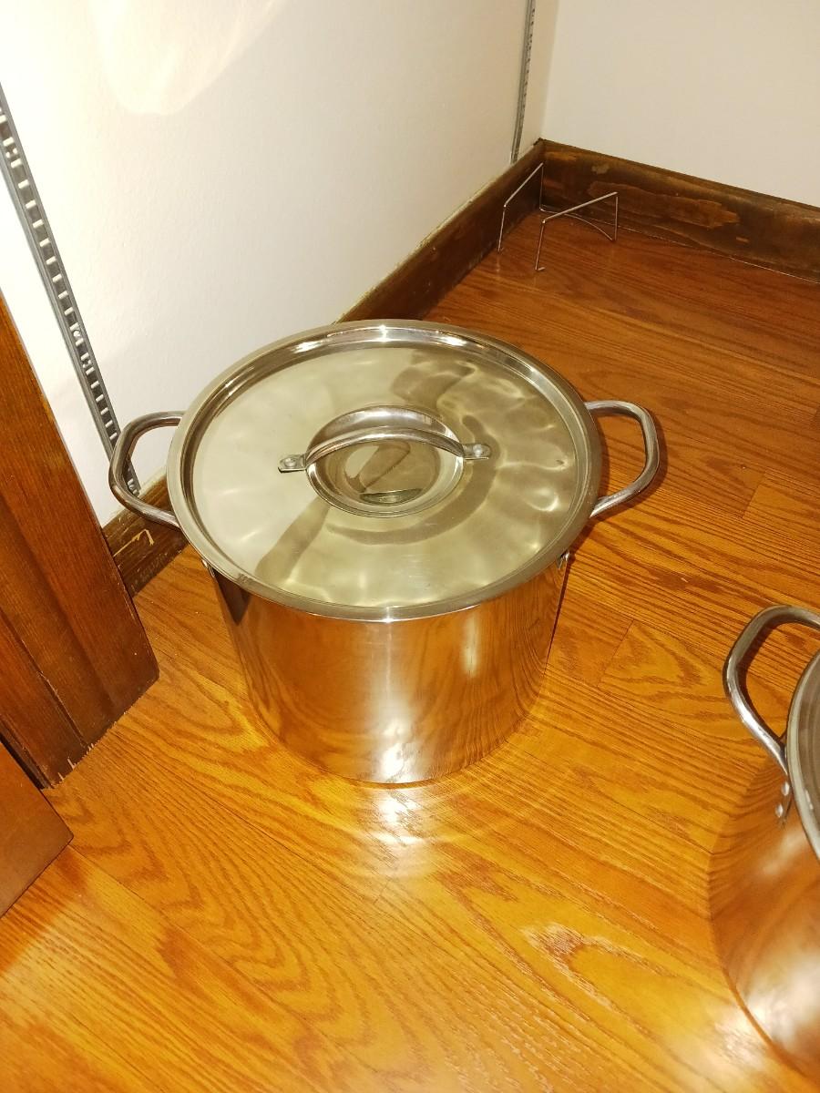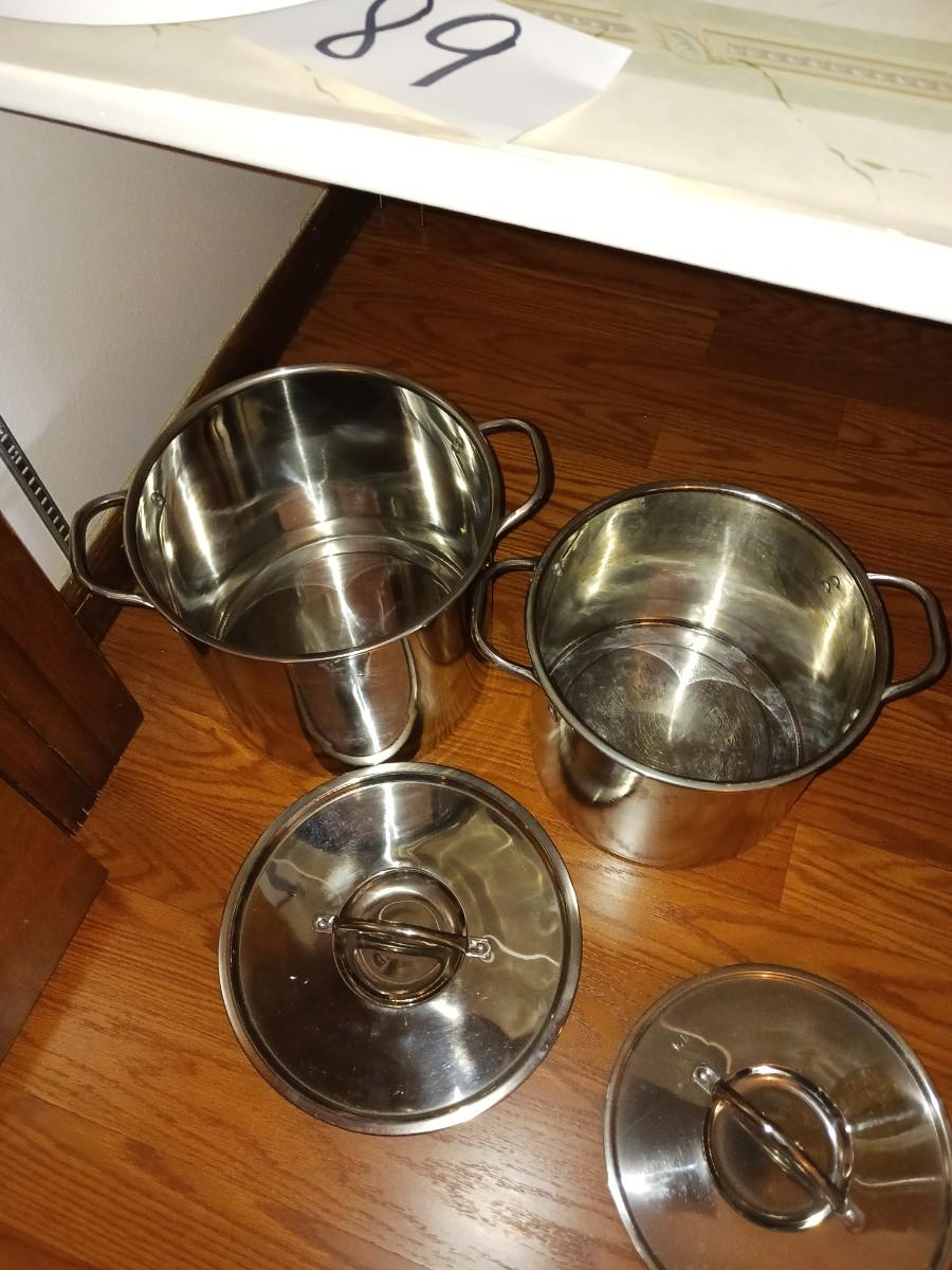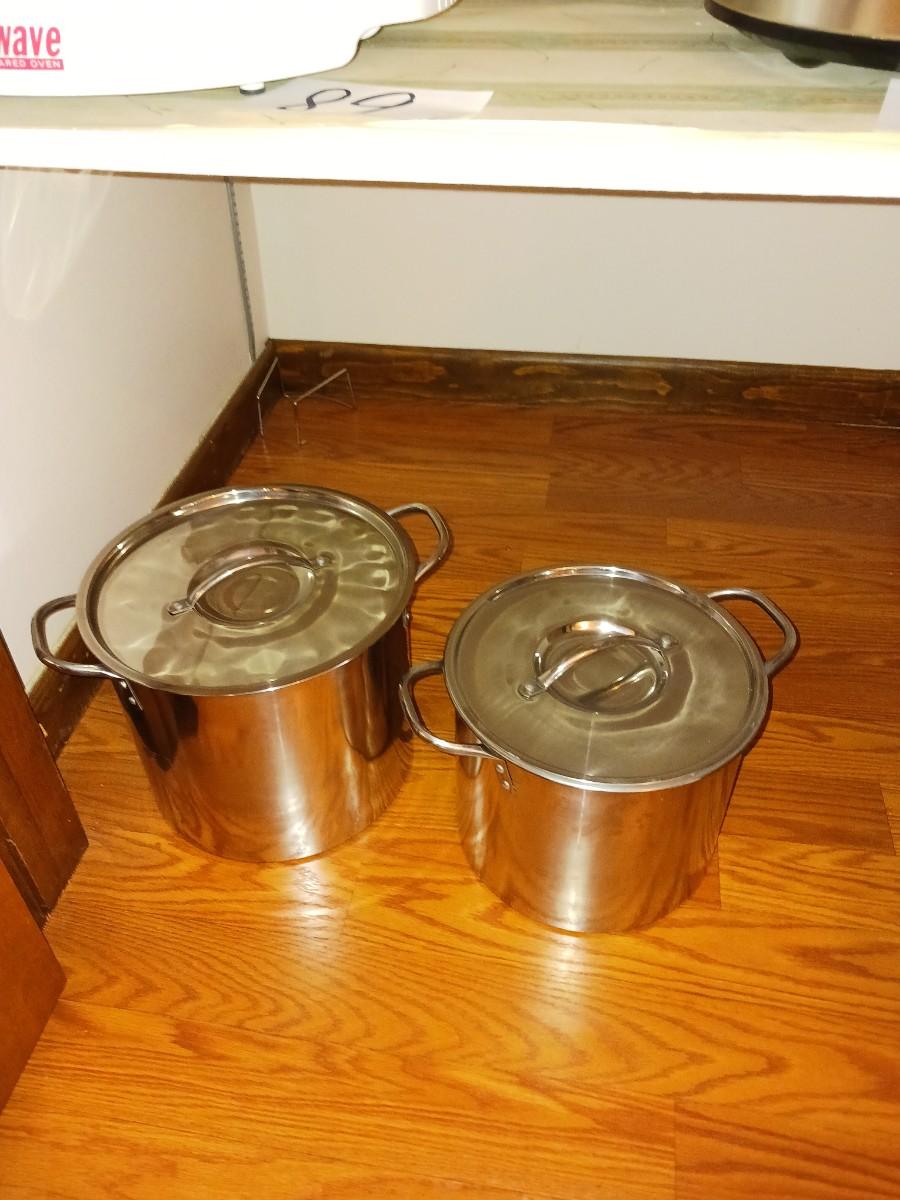 TWO STAINLESS STEEL STOCK POTS WITH LIDS