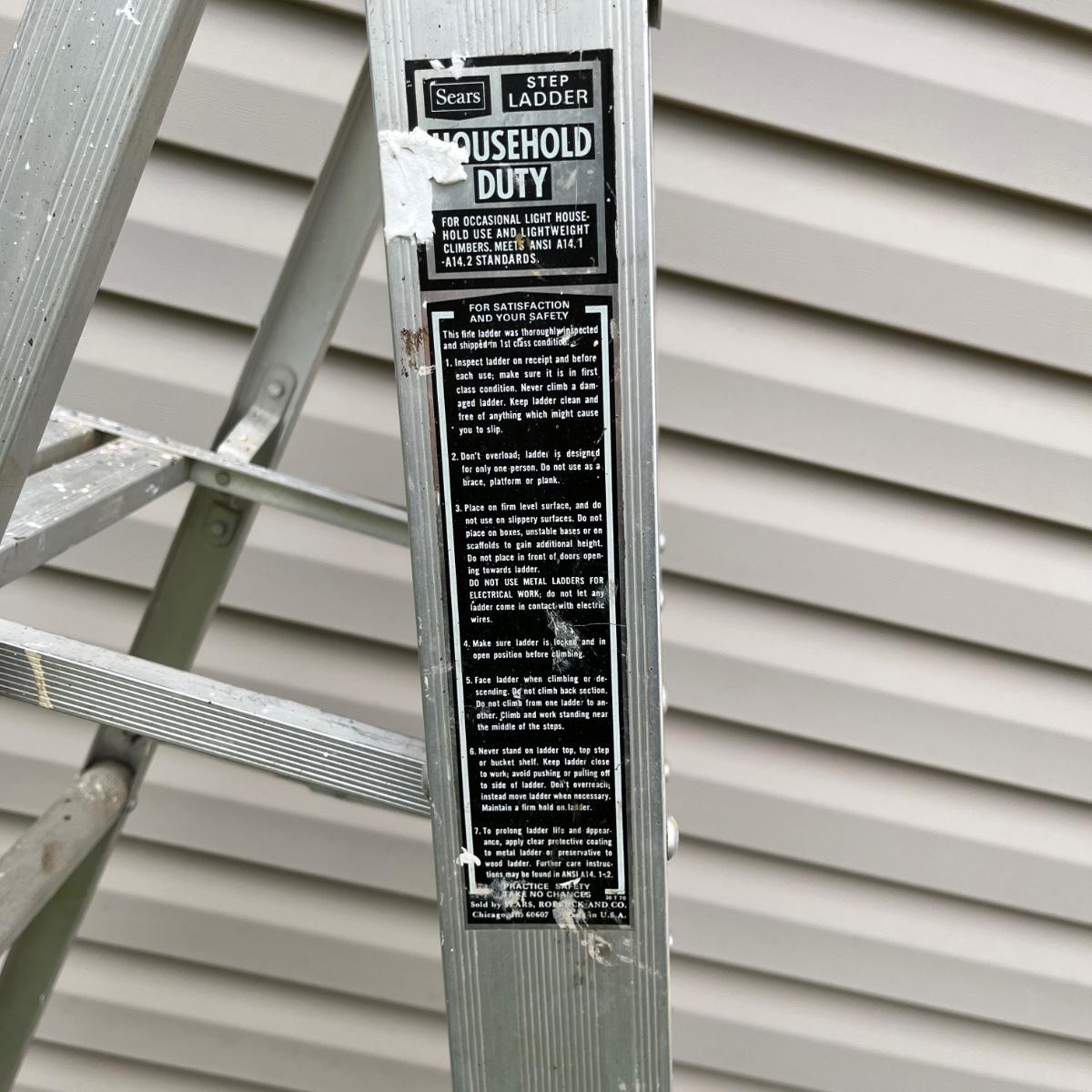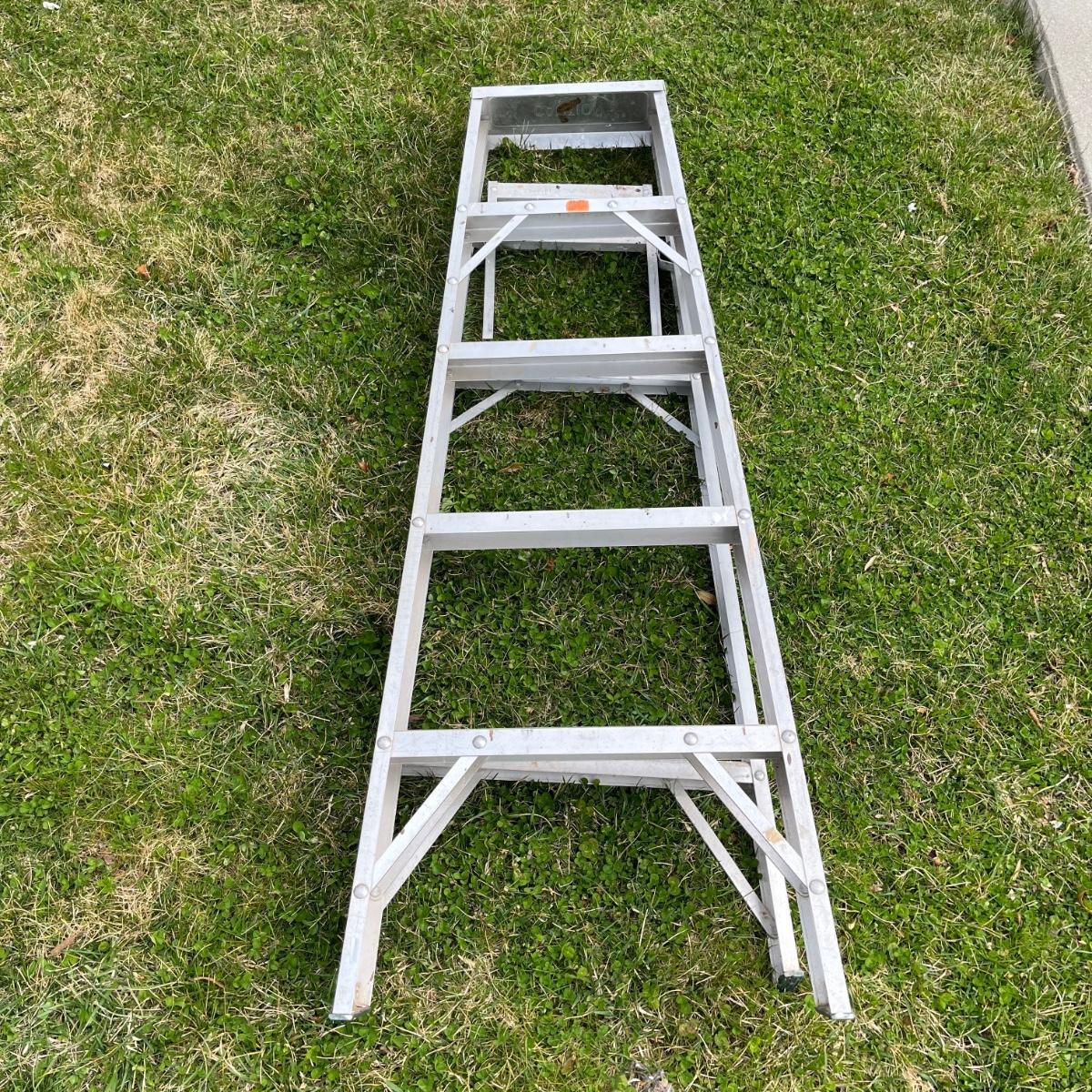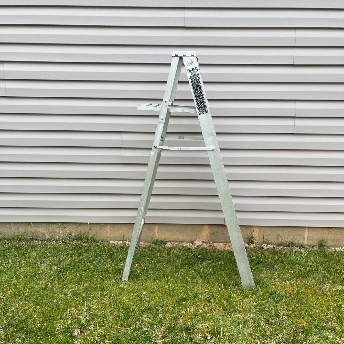 Lot includes a Sears five foot aluminum step ladder and two foot wooden step ladder.