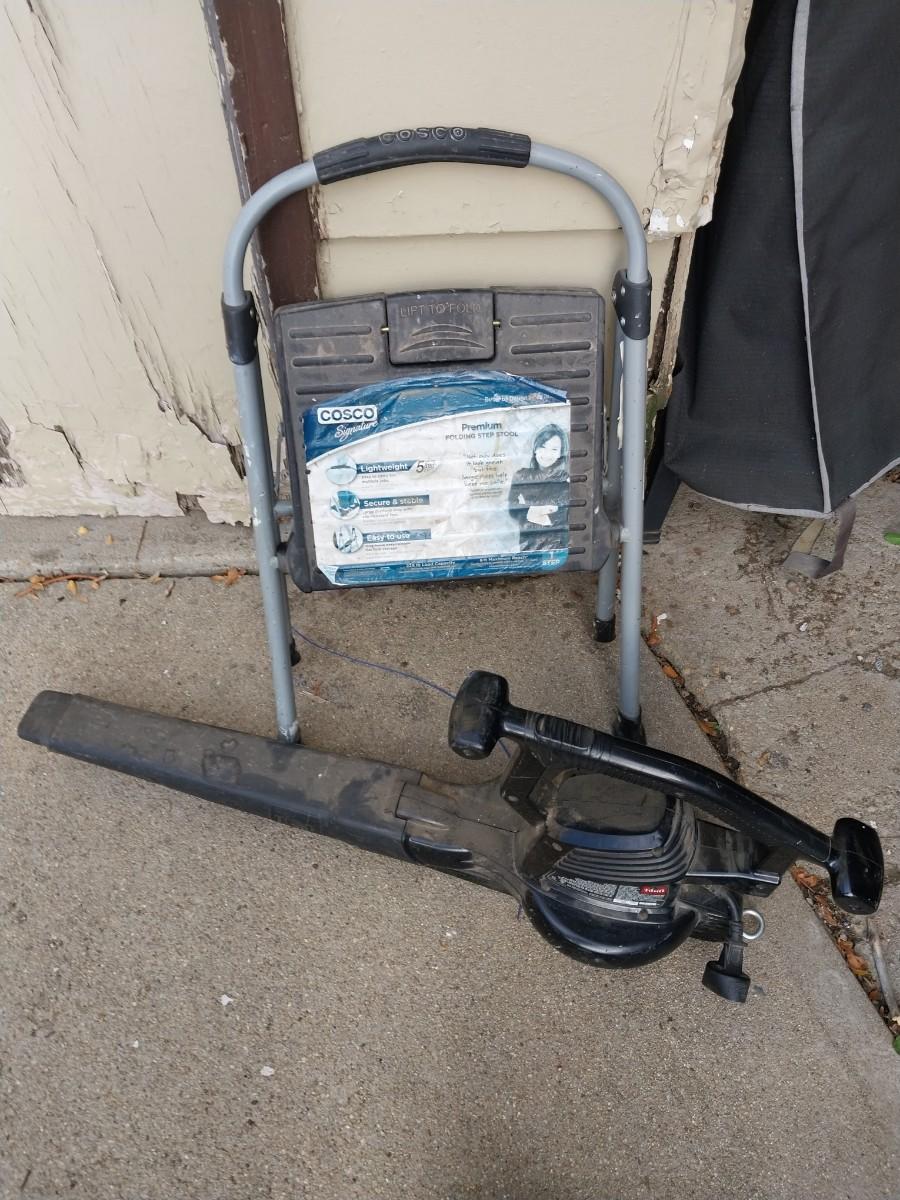 TWO STEP STOOL AND TORO LEAF BLOWER/VAC