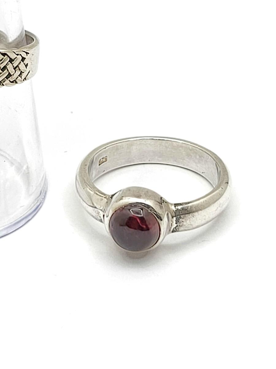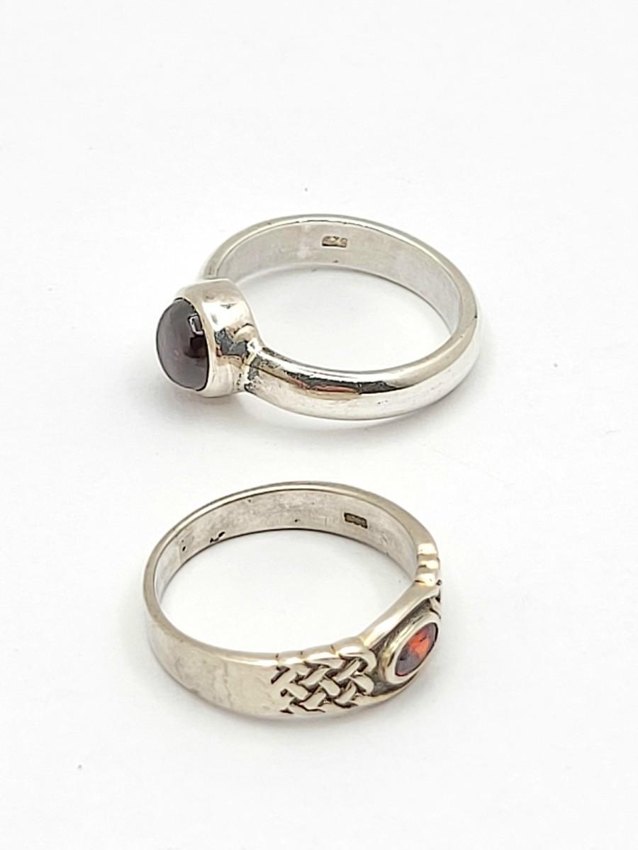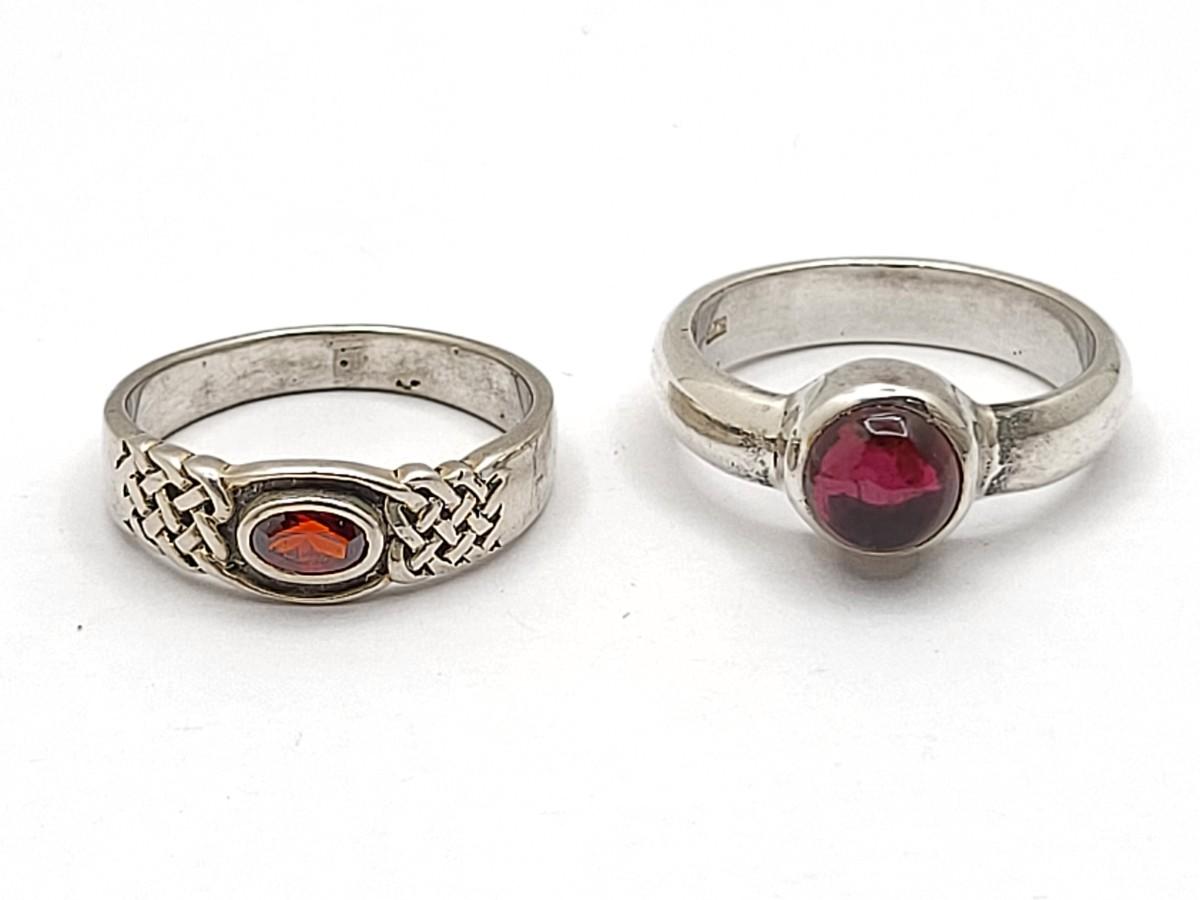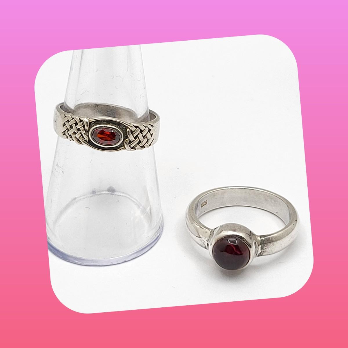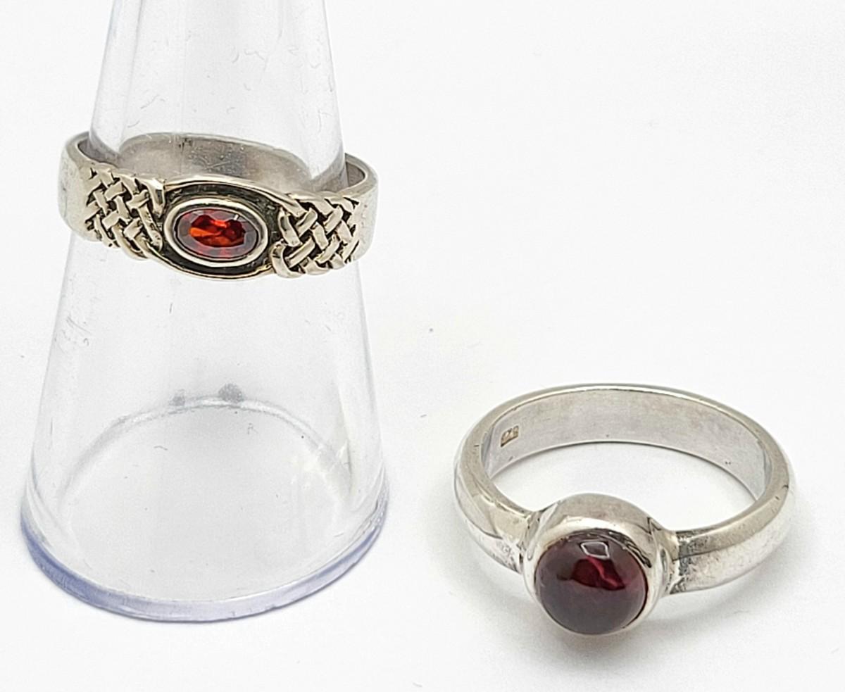 Two vintage garnet and sterling silver rings.