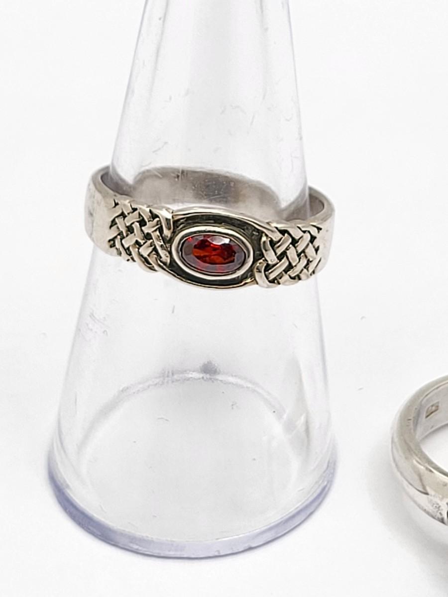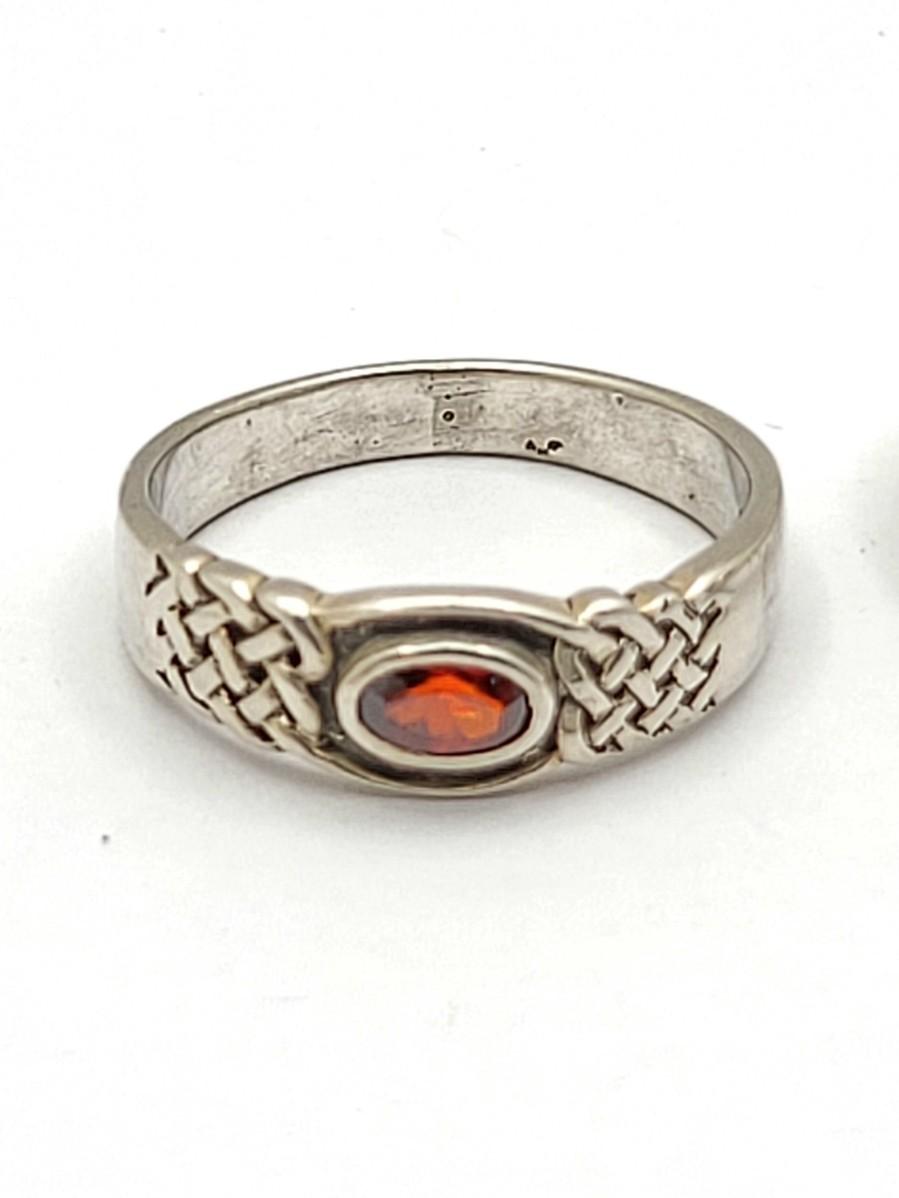 Weaved band, oval garnet size 7.5.