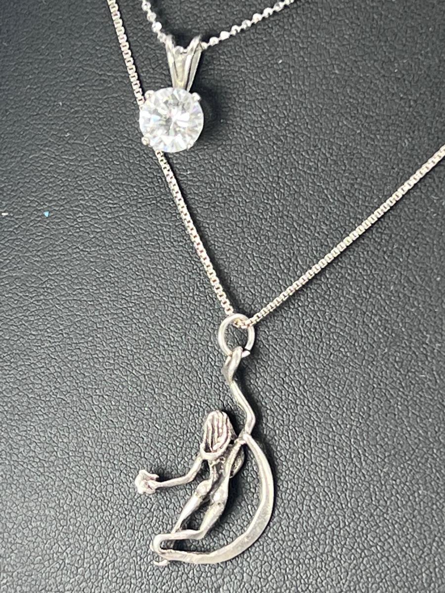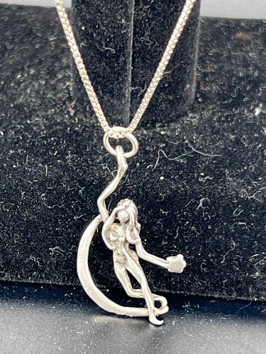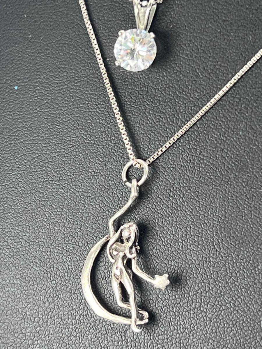 One cast 1” woman and the moon 3d pendant and one sterling 925 set CZ of unknown quality.