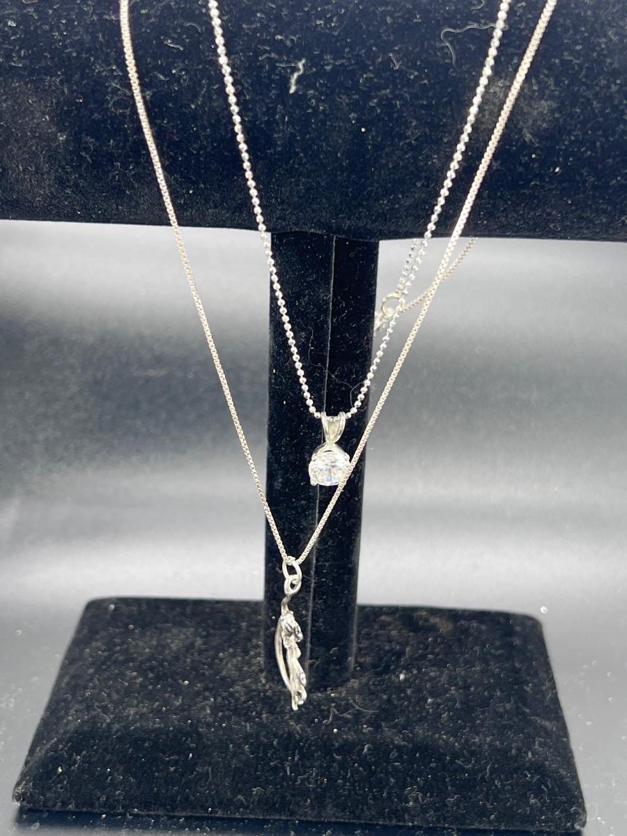 Two sterling pendants and chains