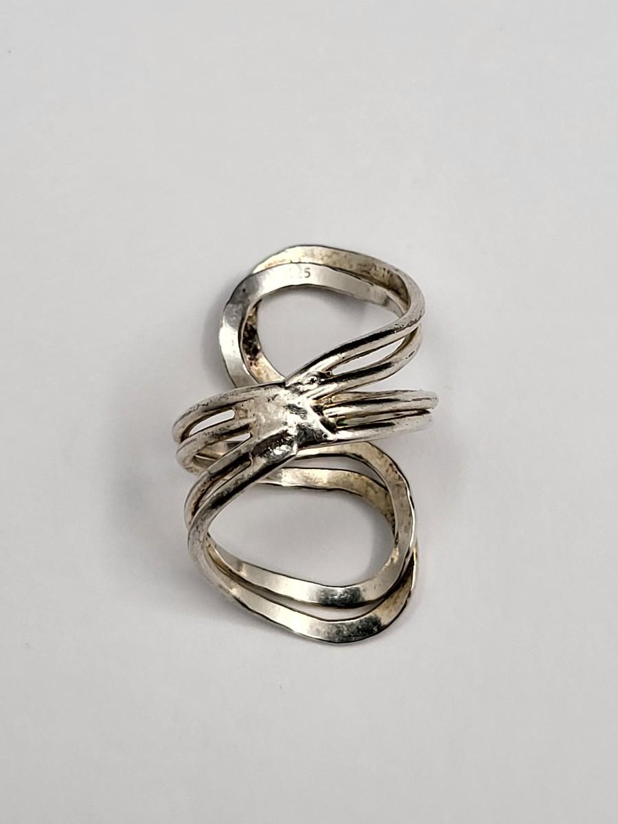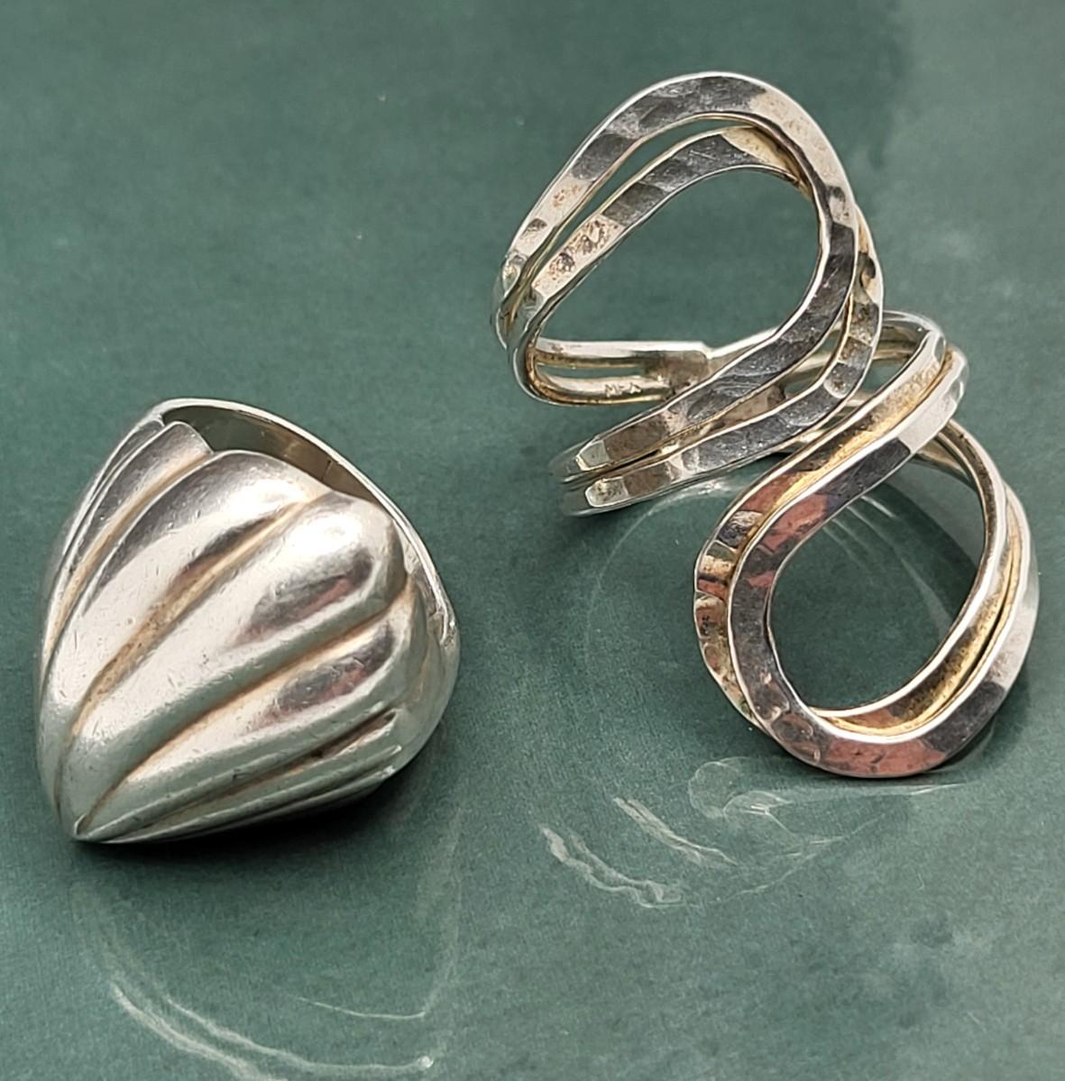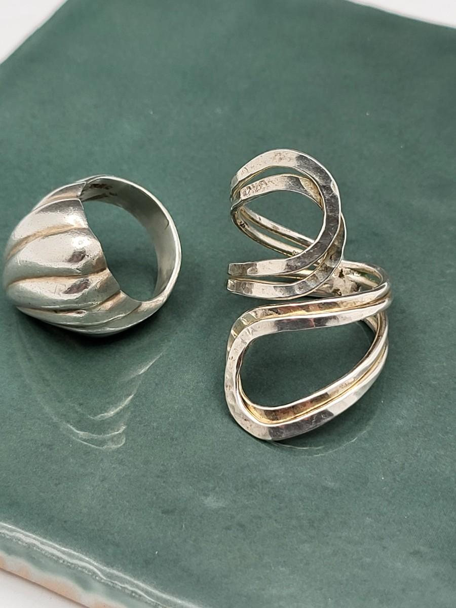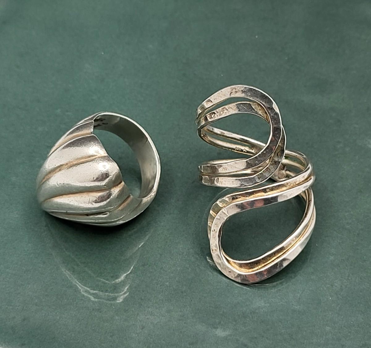 Handmade. Bypass ring is size 10. Scalloped/shell pattern is size 9.