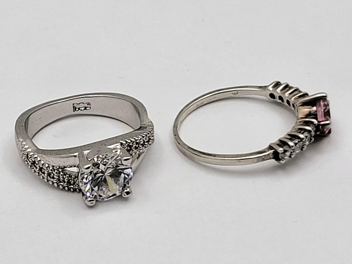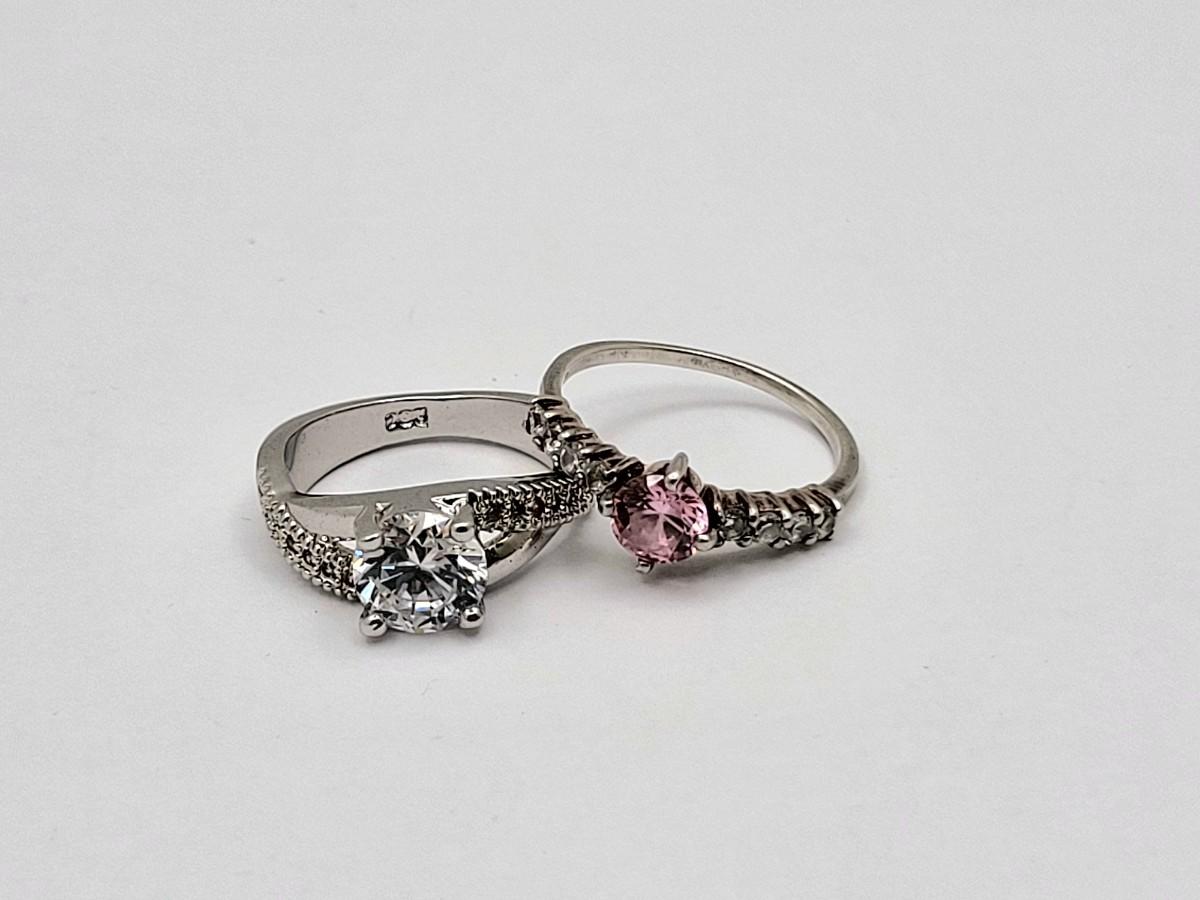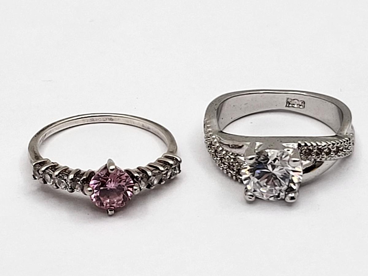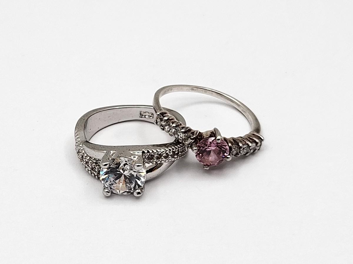 Sparkly clear CZ stone center with clear stone sides, size 7.