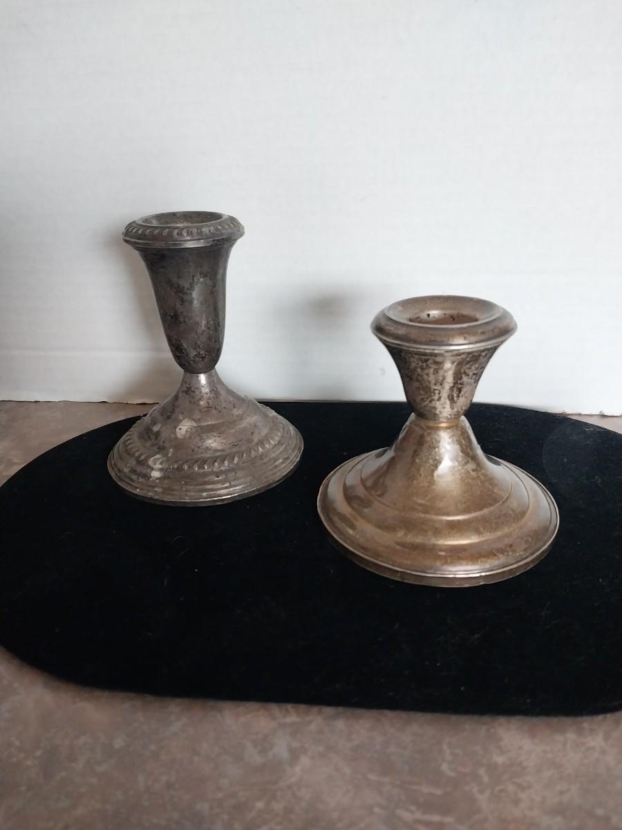 TWO STERLING SILVER (WEIGHTED) CANDLE STICK HOLDERS