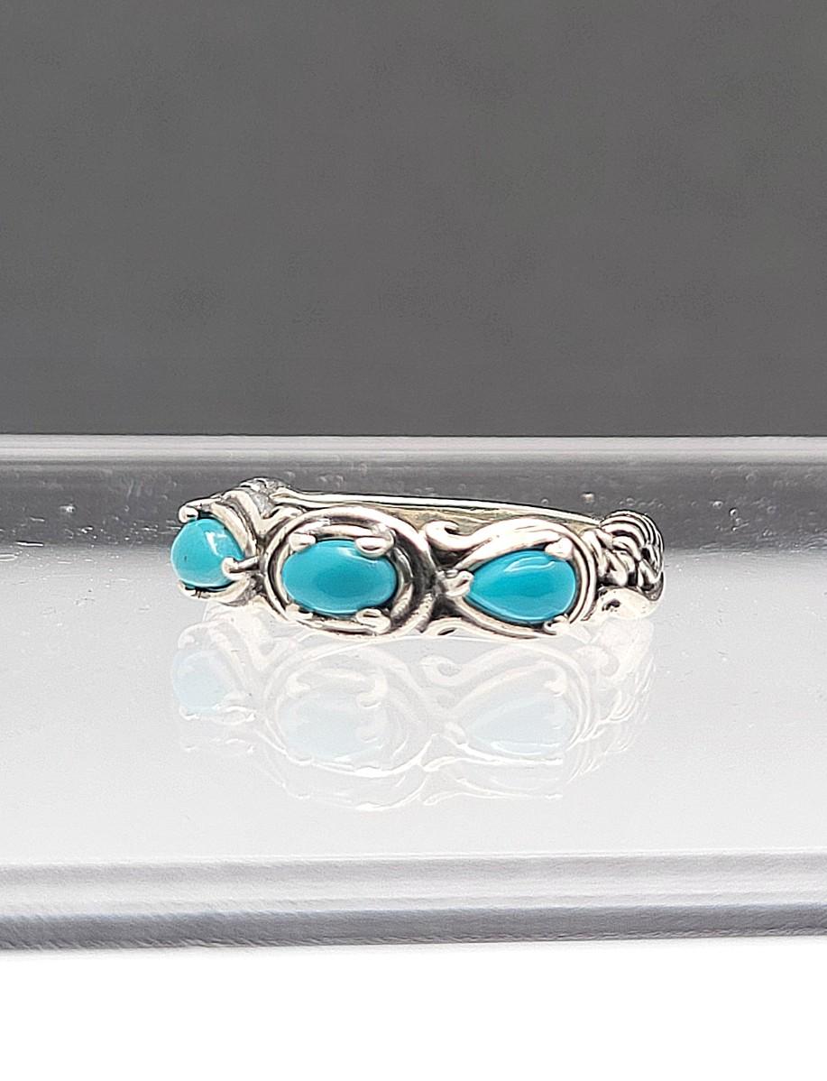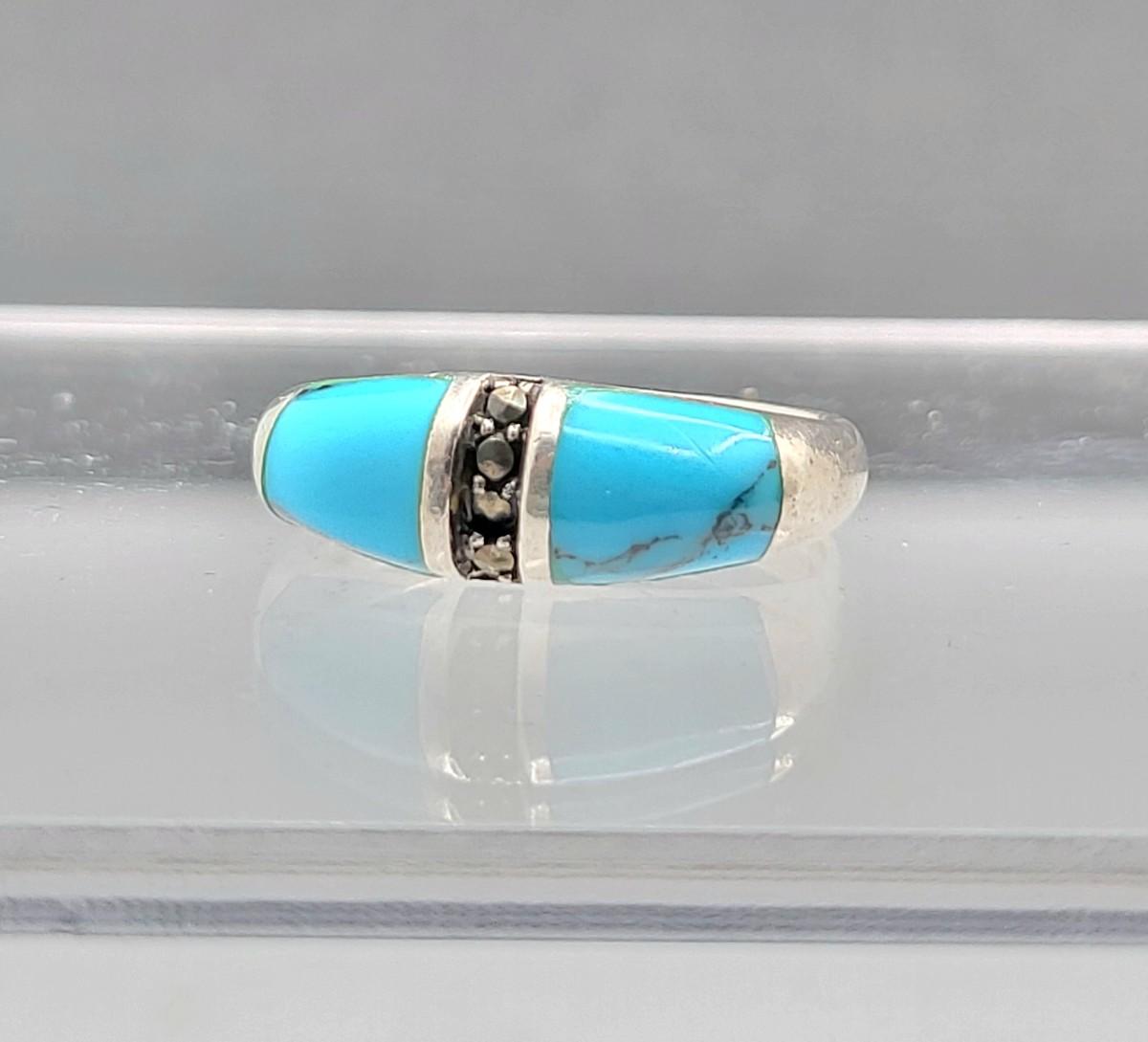 2. Two Turquoise inlay with three center marcasite stones is a size 8.