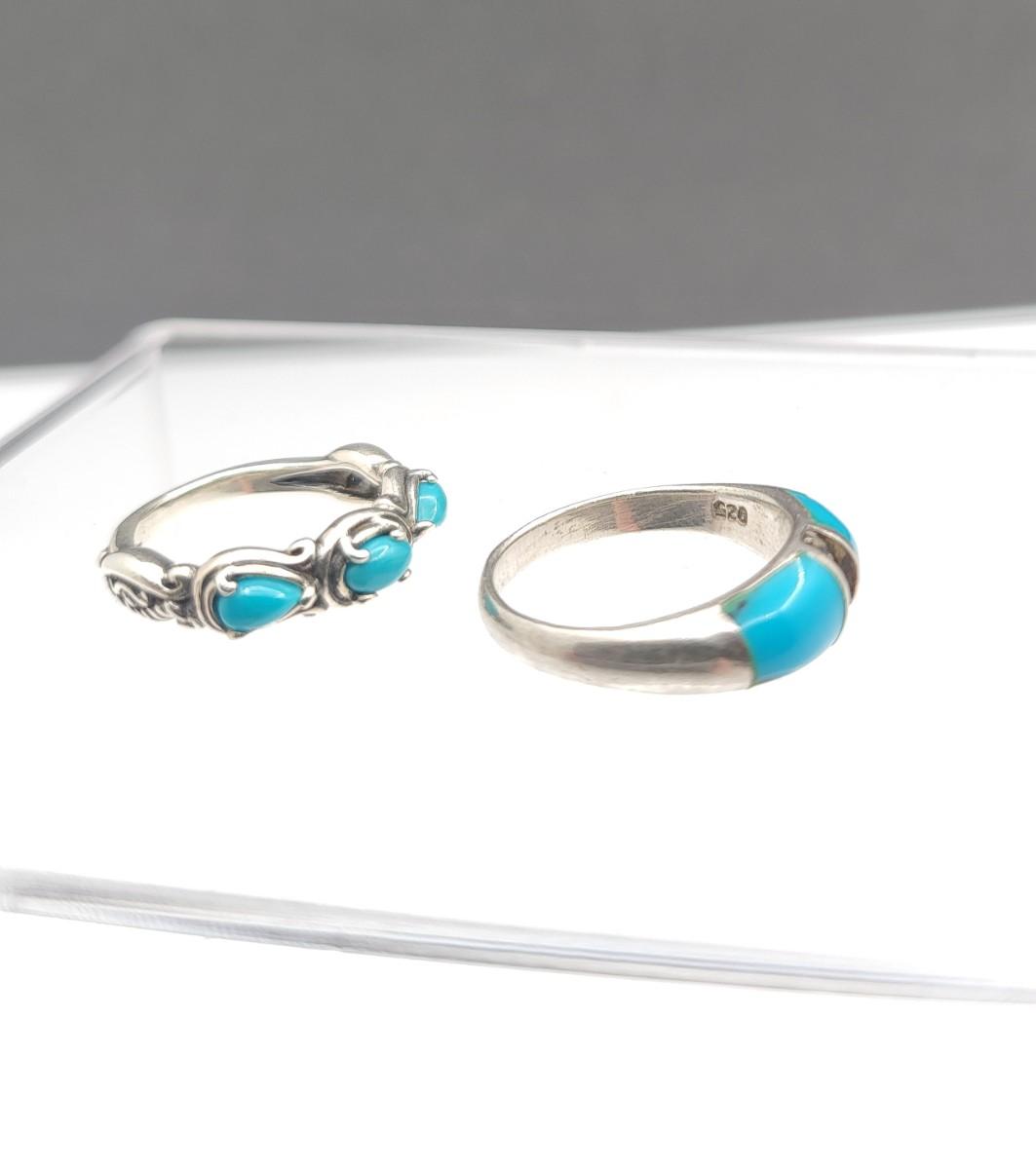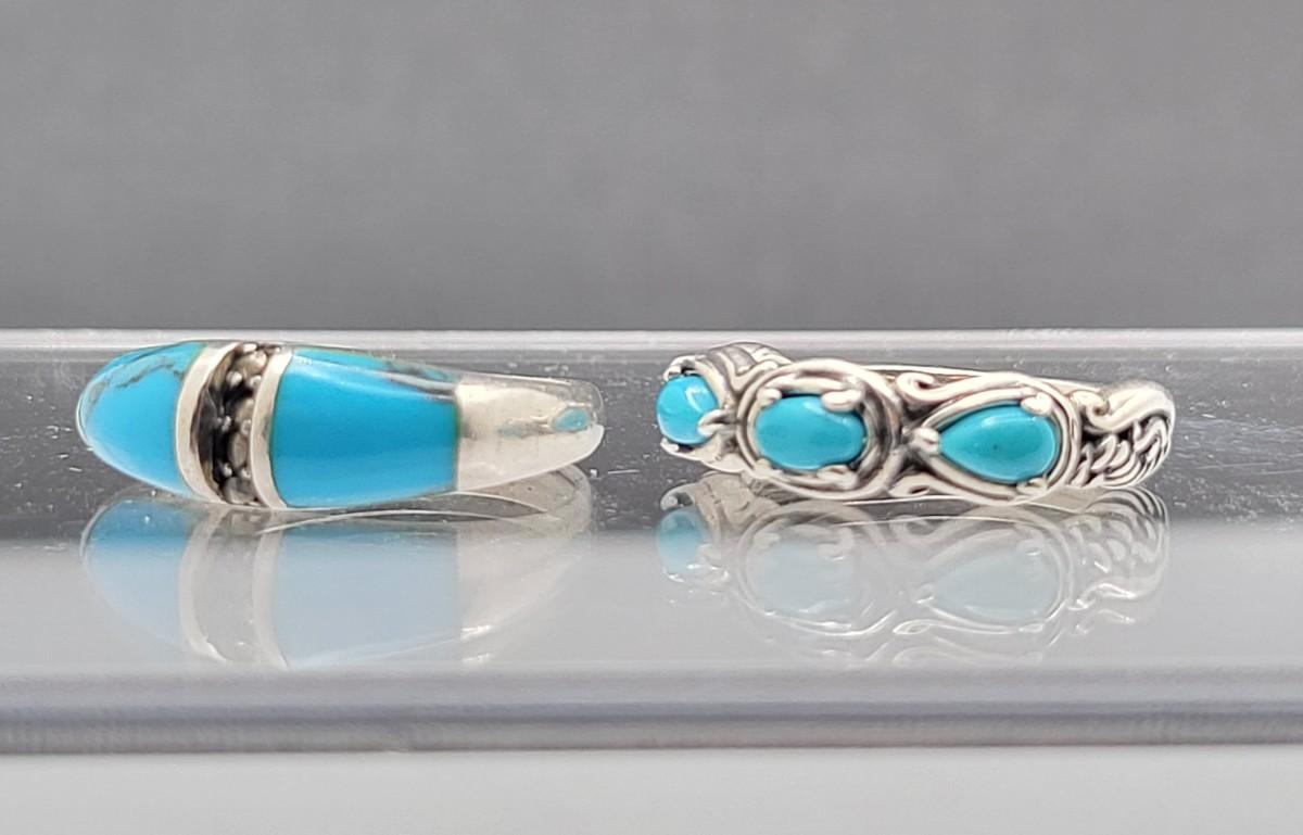 1. Two 925 Sterling Rings with Turquoise. Three stone is size 5.
