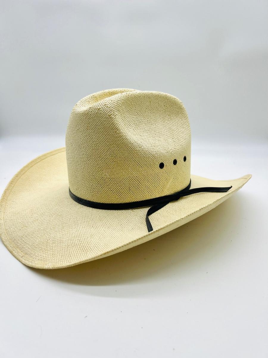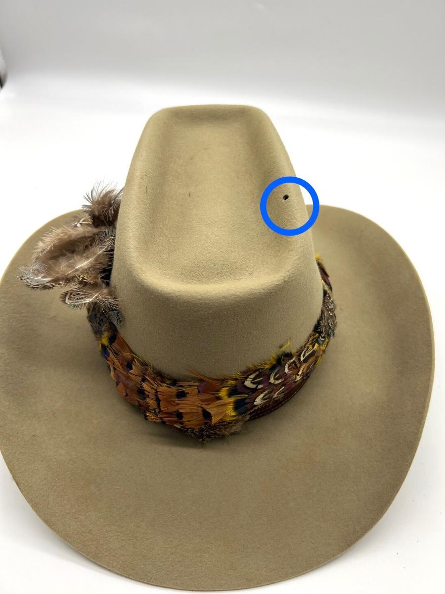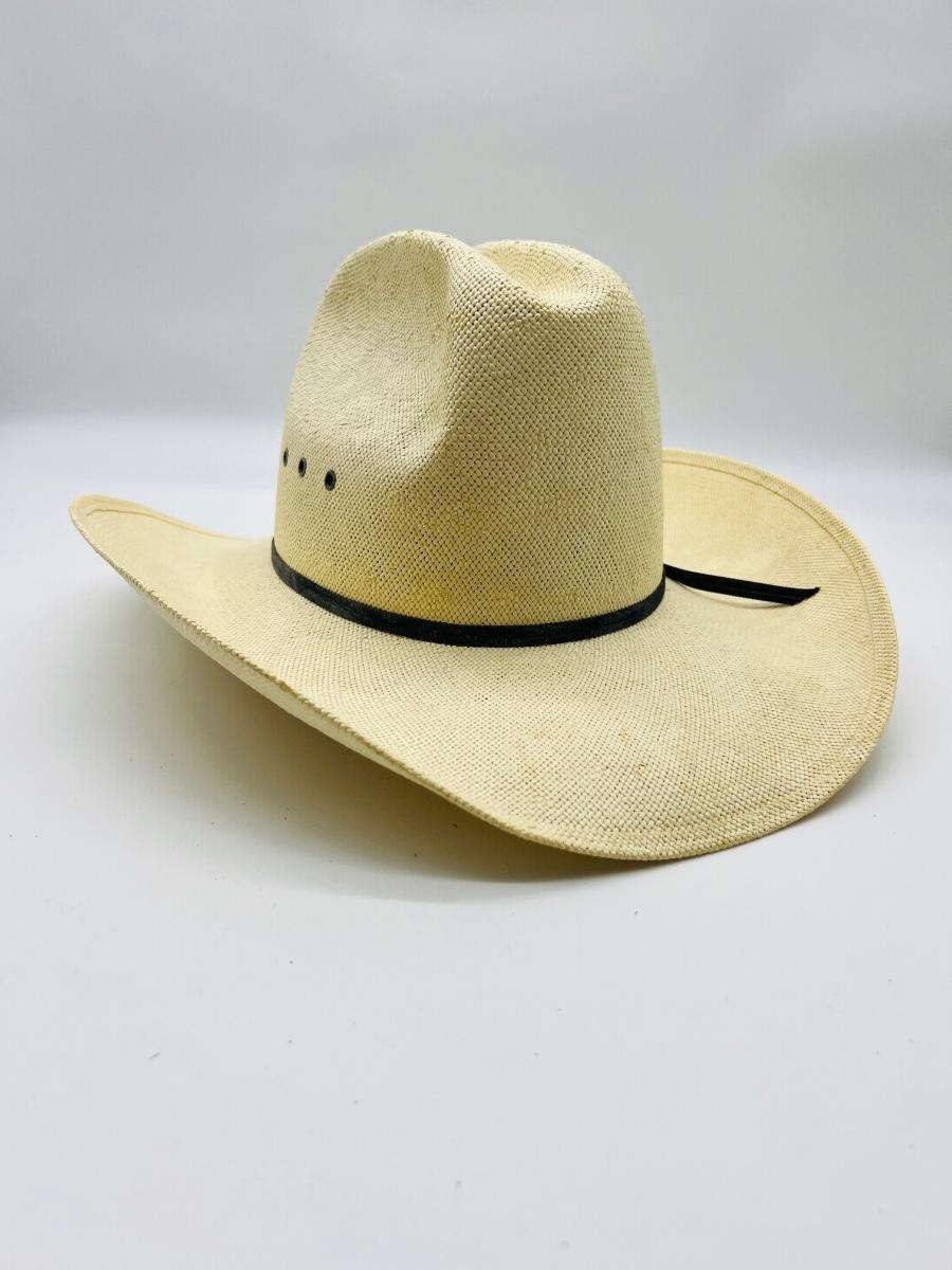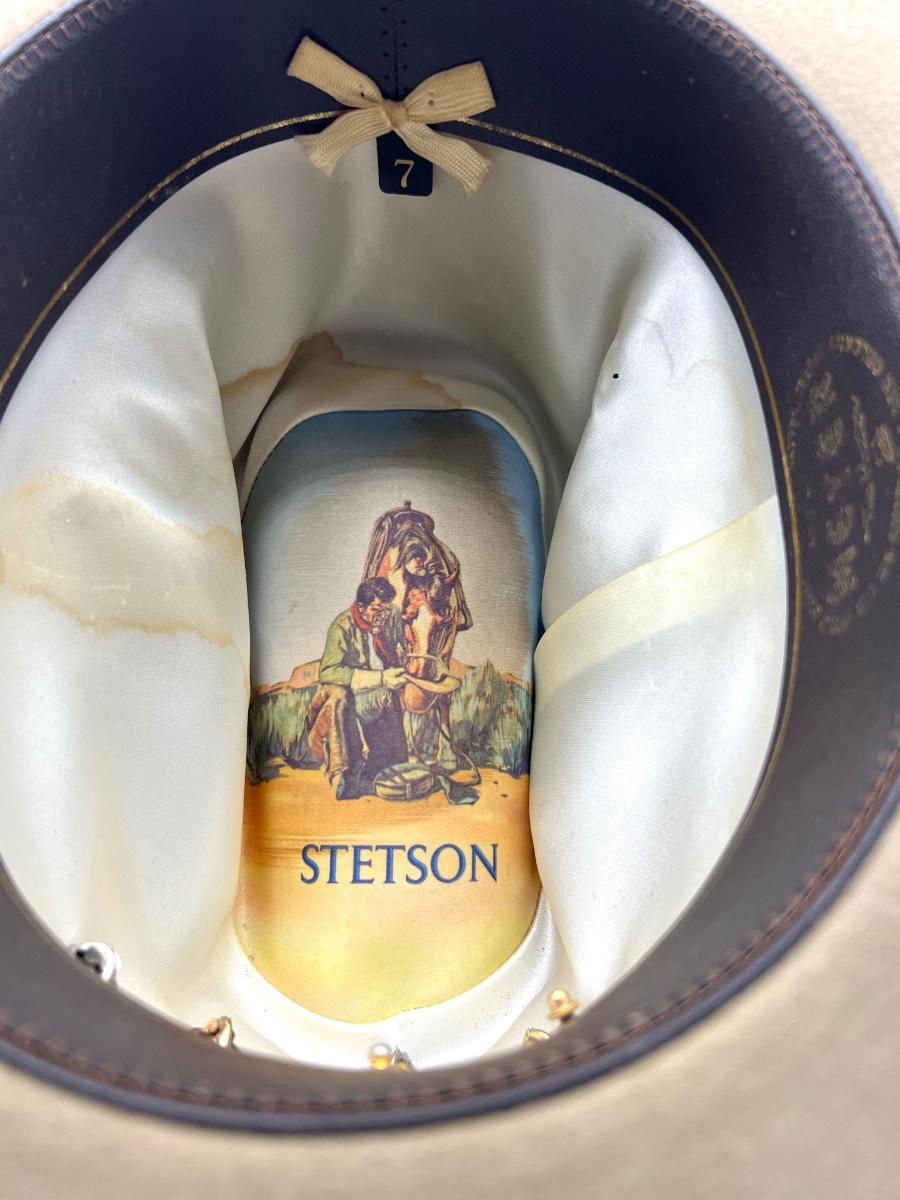 Three hats are in this lot. Two Stetsons & one Larry Mahans cowboy hats. See pictures for condition. Some are dusty from being in the closet. One has a visible pin hole at the top, see picture.