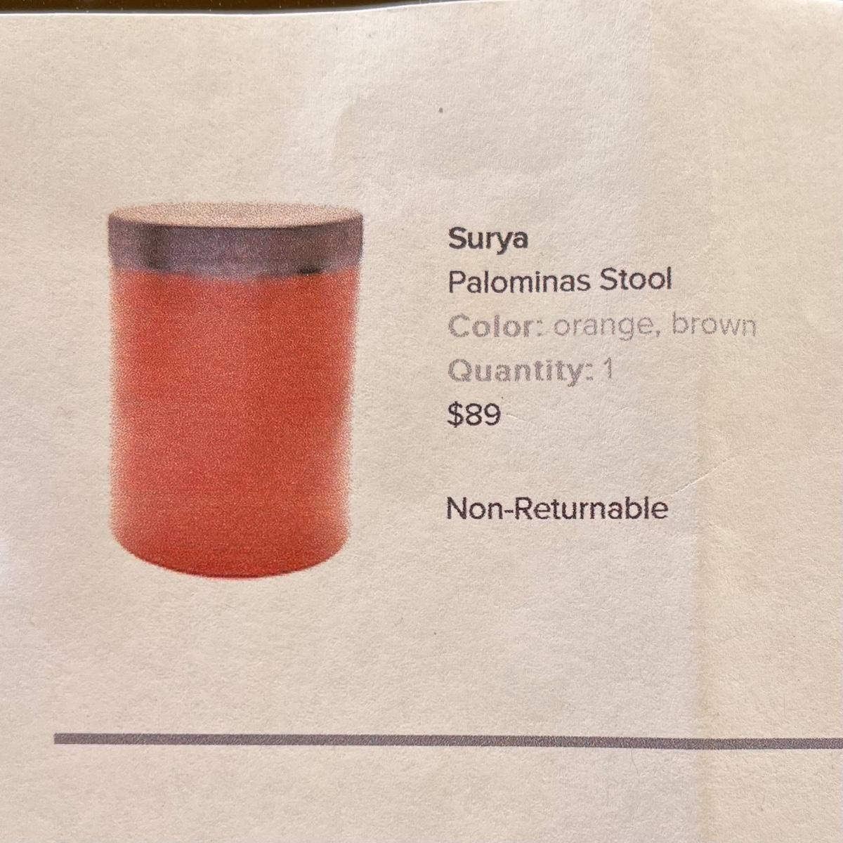 Lot includes two Surya Palominas ceramic garden stools. Stools measure 13”D x 17”H.