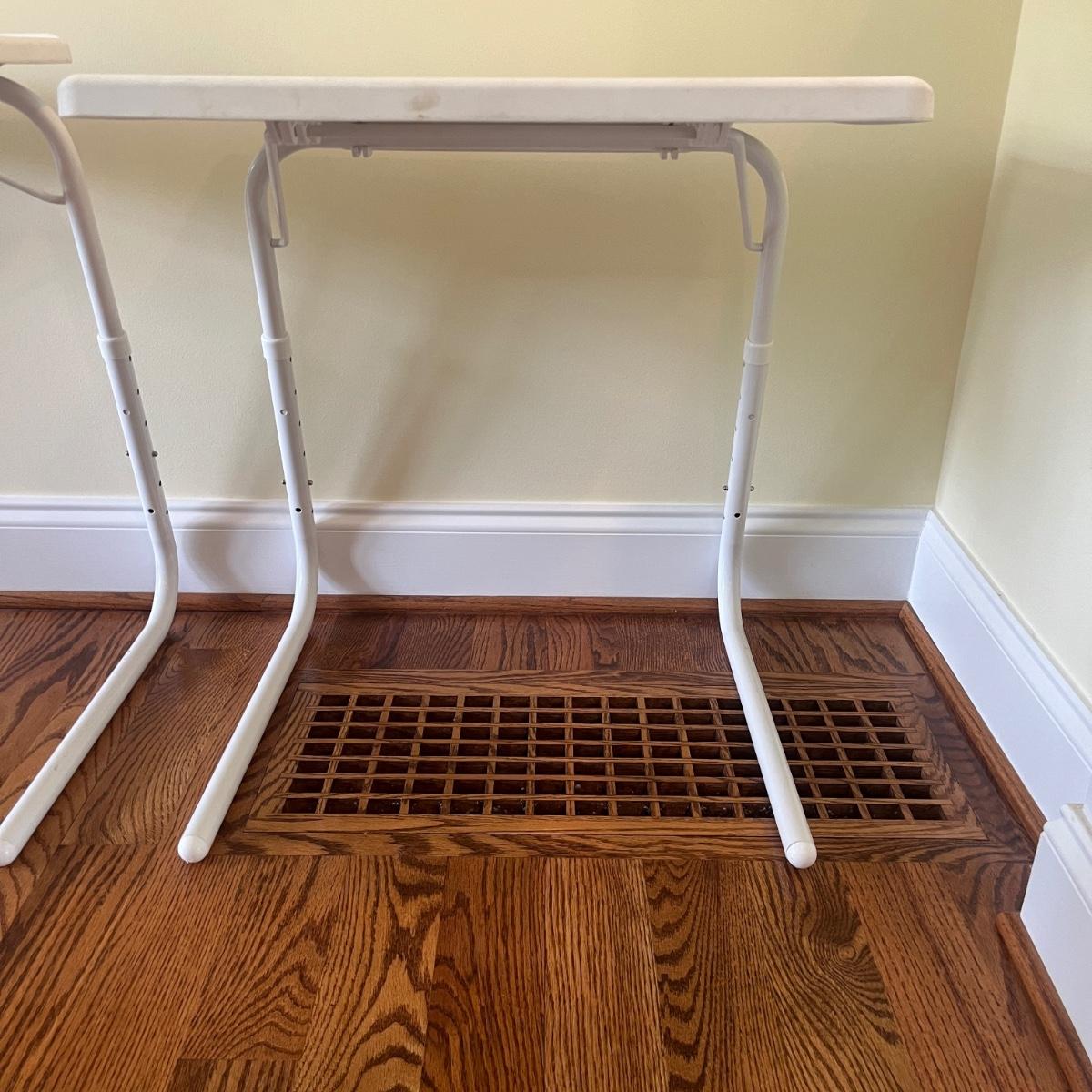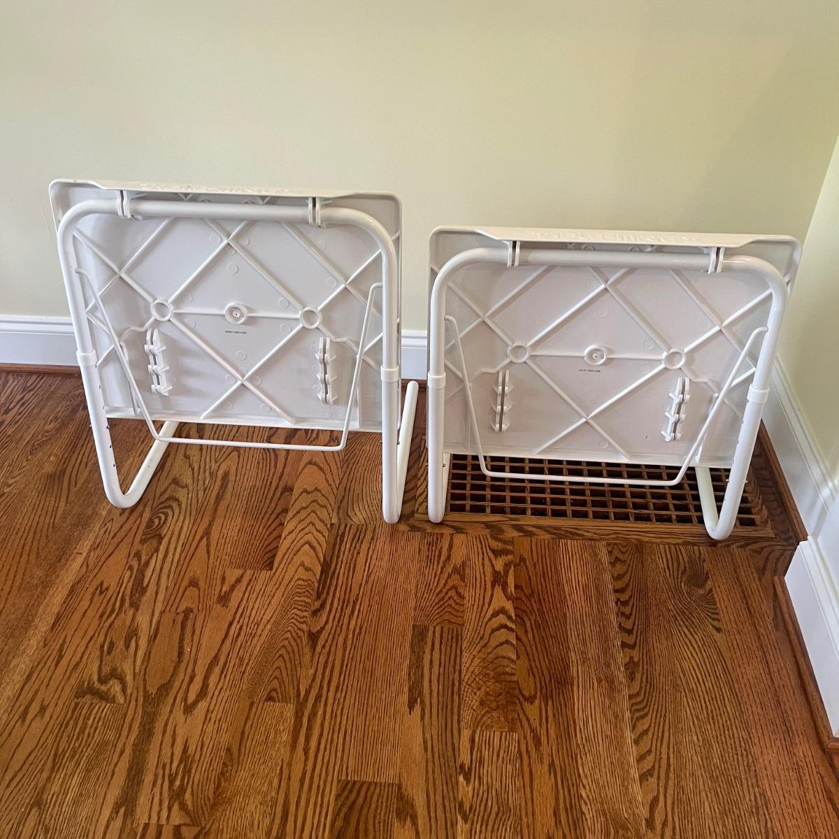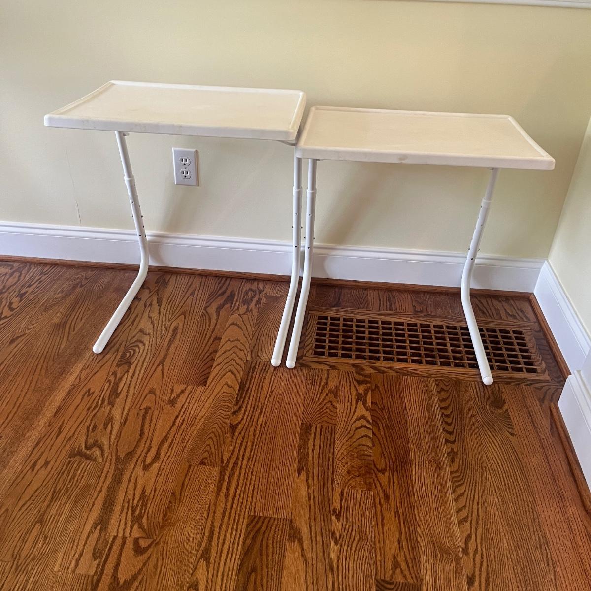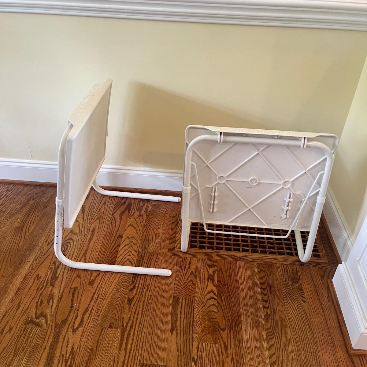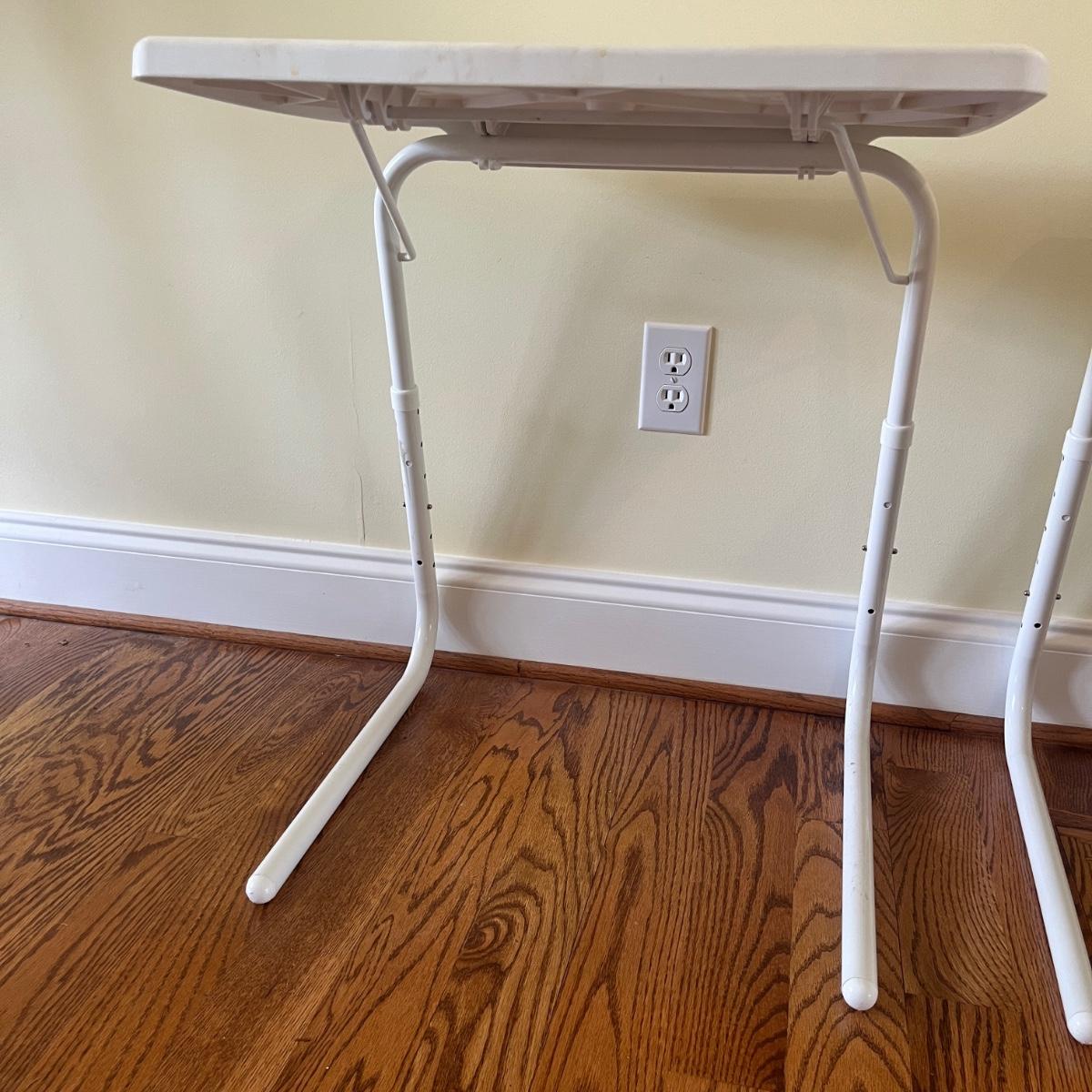 Lot includes two Table Mate 11 foldable plastic and metal tables. Tables measure 21” x 16” x 25”H.
