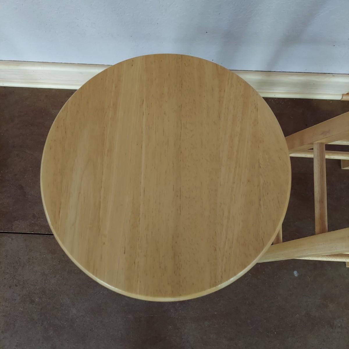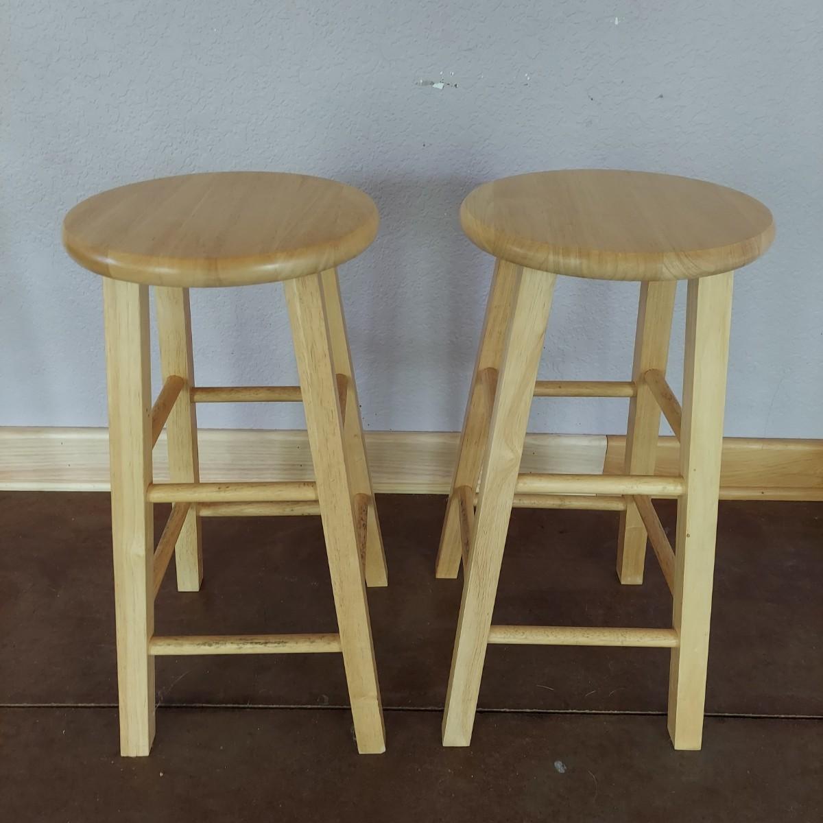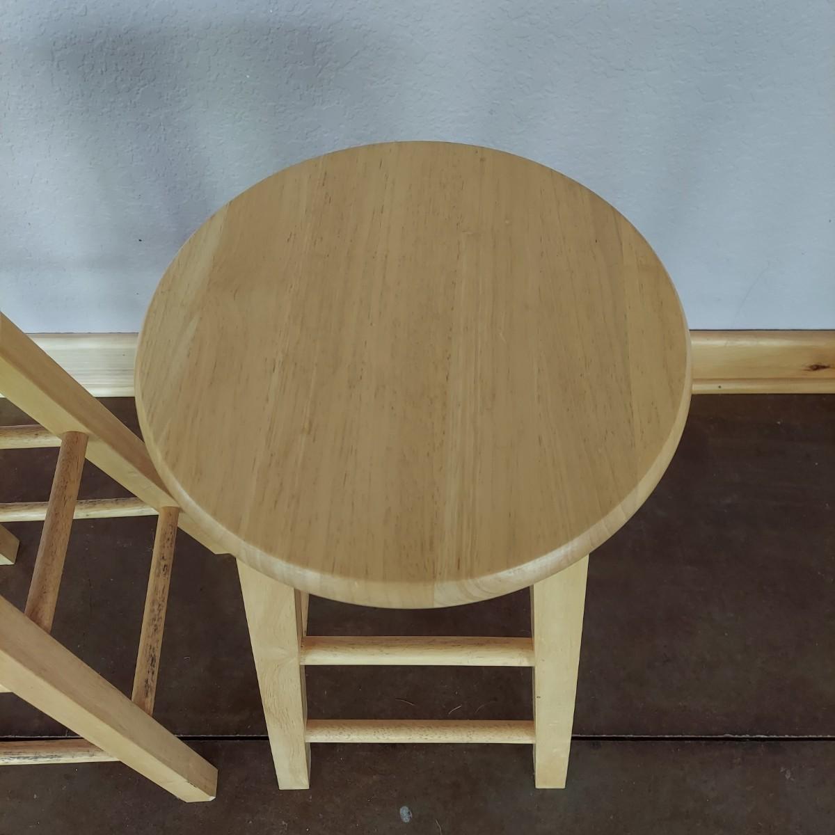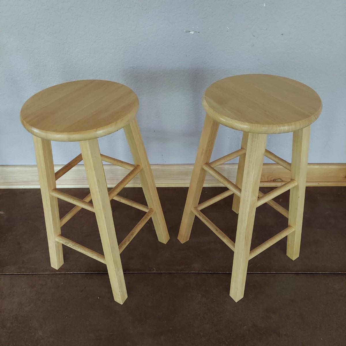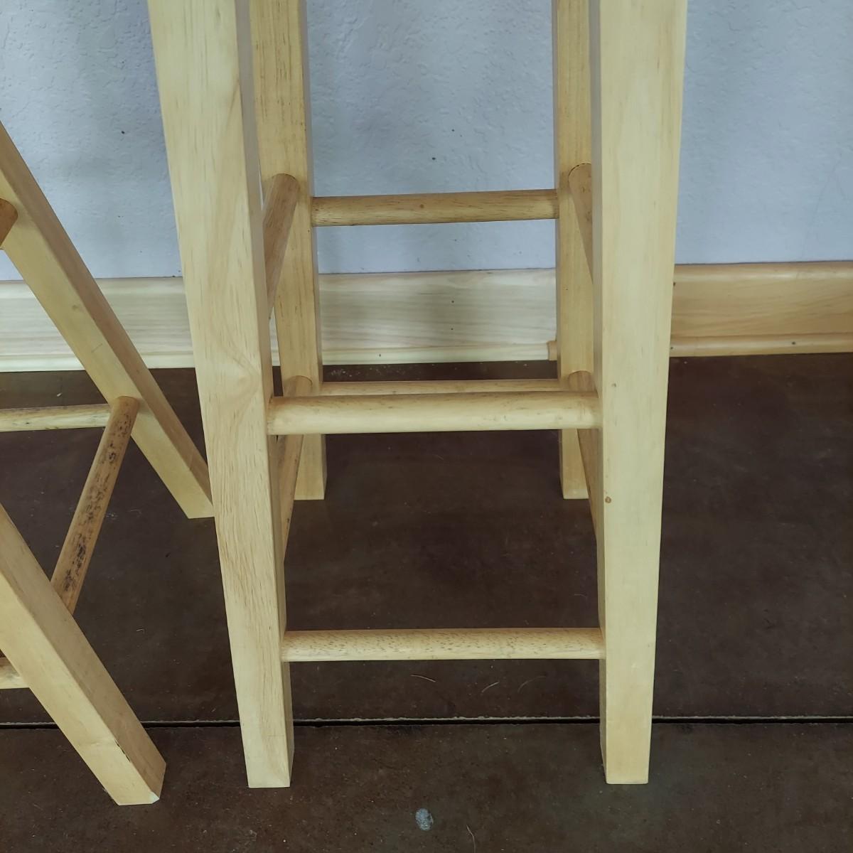 Two solid wood stools by Thomasville. They measure approximately 12" x 12" x 24"H. Local Pickup Only.