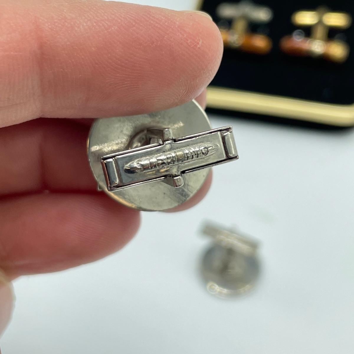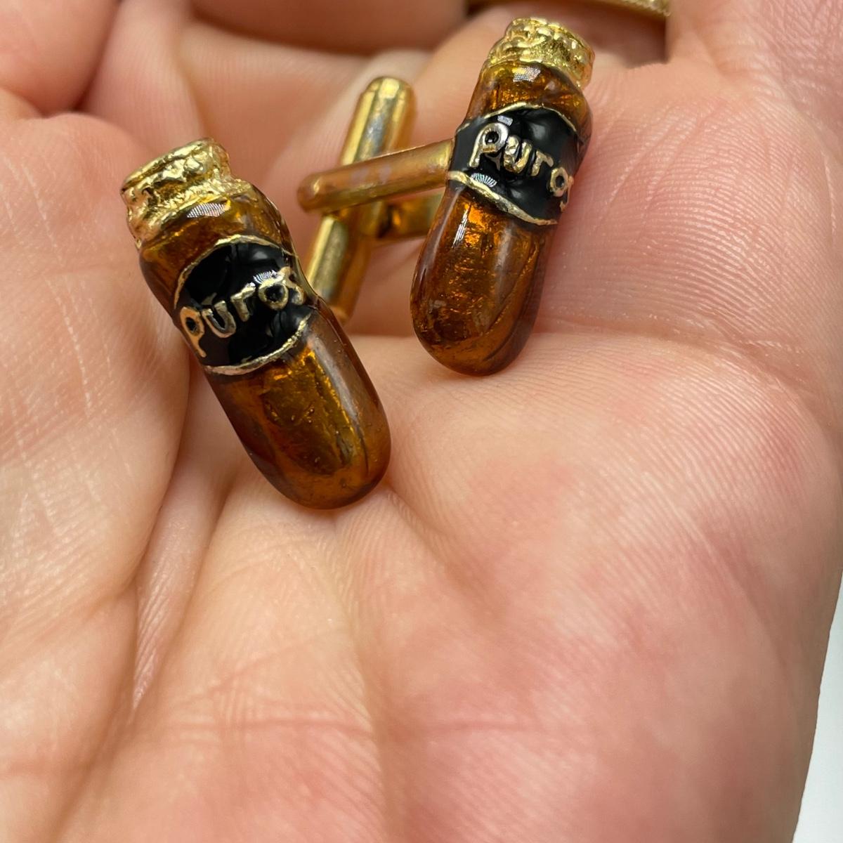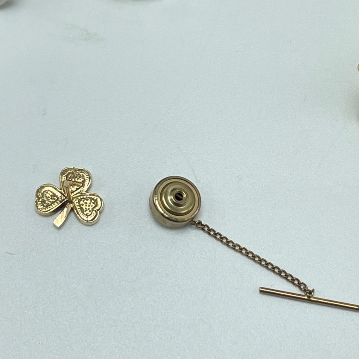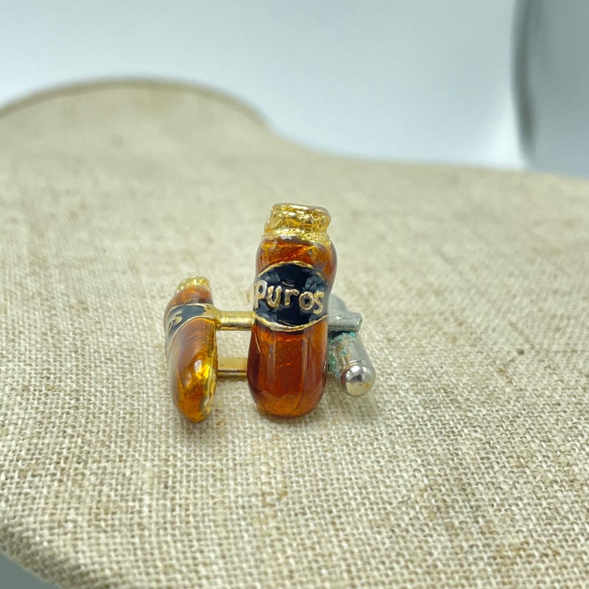 Here’s a lot of personality in a small package. Two tie tacks plus two sets of cufflinks. One bright gold colored buffalo and one shamrock with a 9 and 375 amongst its markings. Lot also contains a sterling Shadow Valley Car Club flag cufflink pair and a cigar cufflink pair. See images. Shipping available.