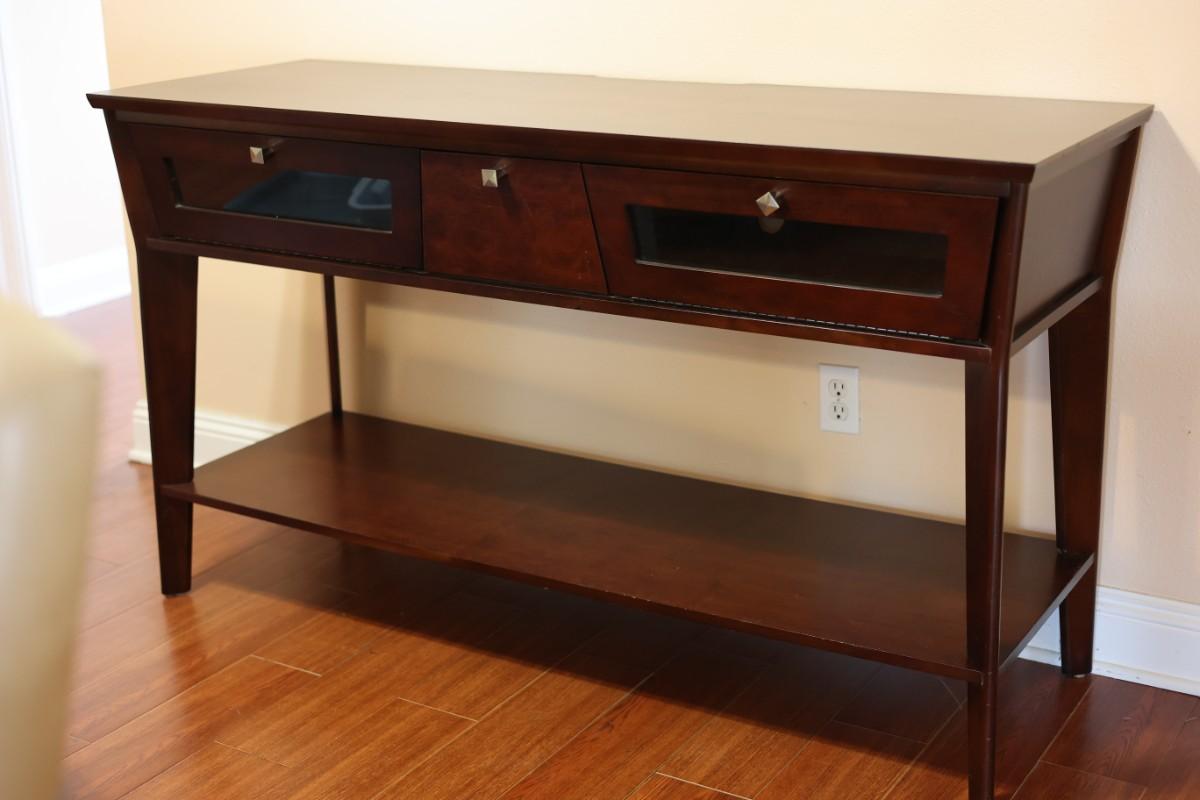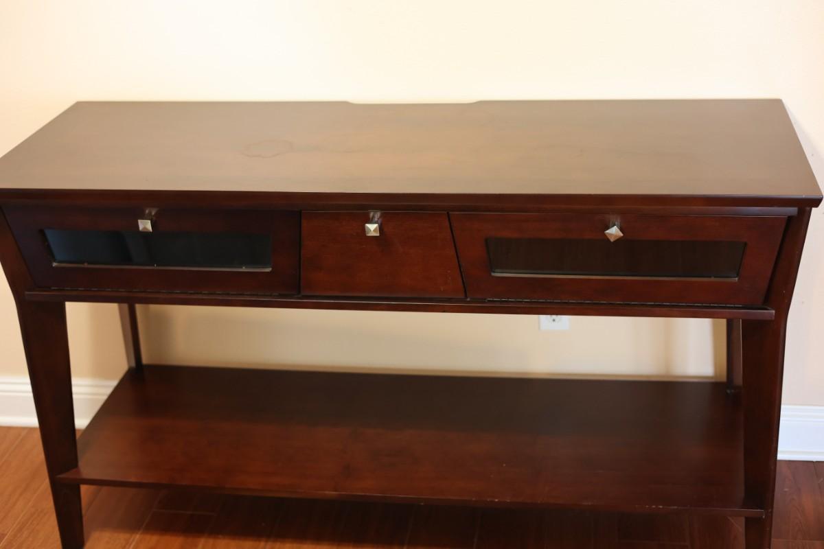 Two Tier Console Table W/ (2) Cabinets & (1) Drawer