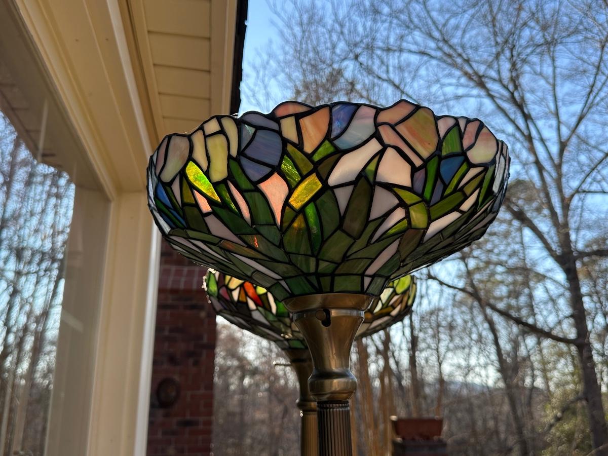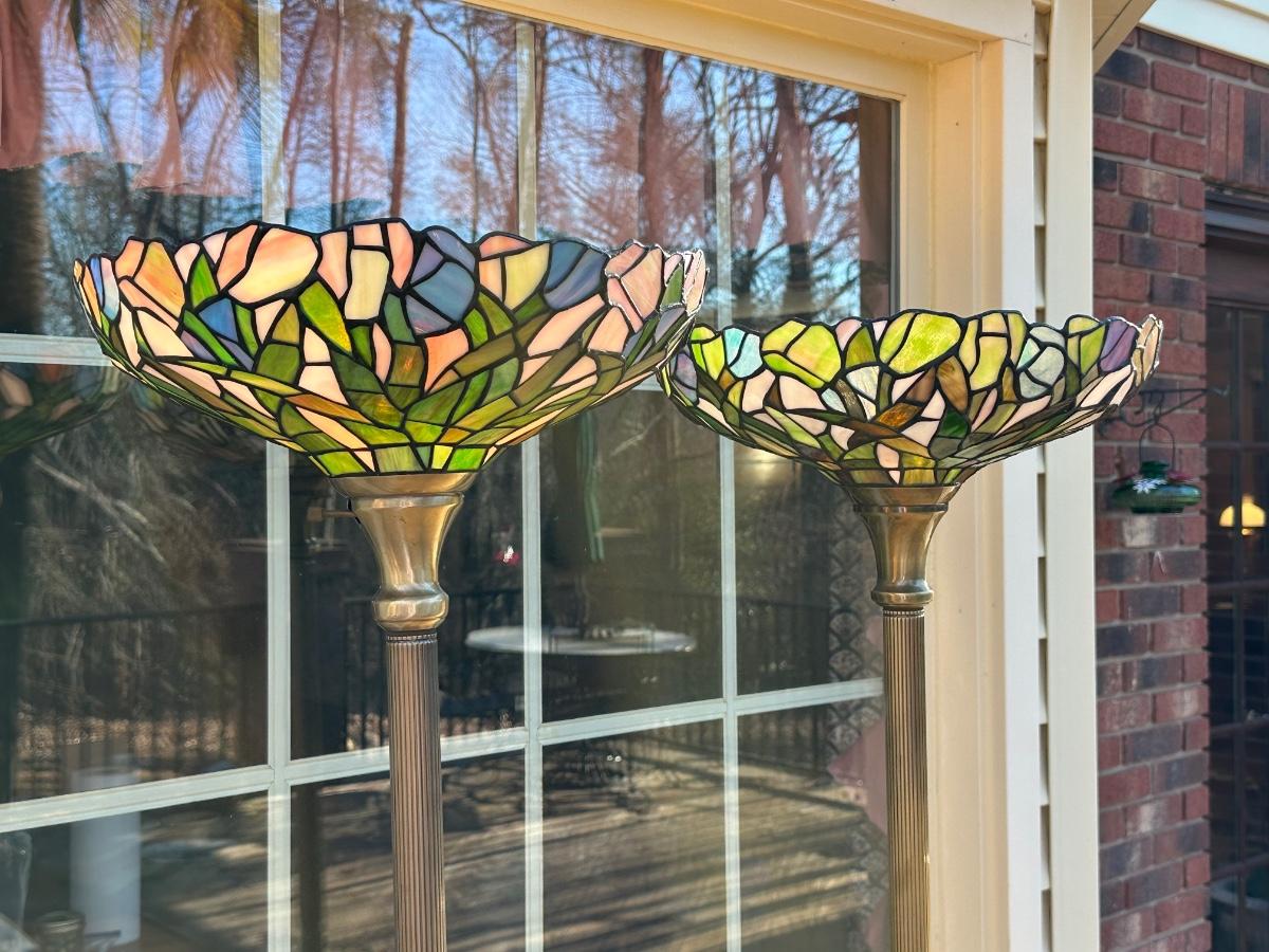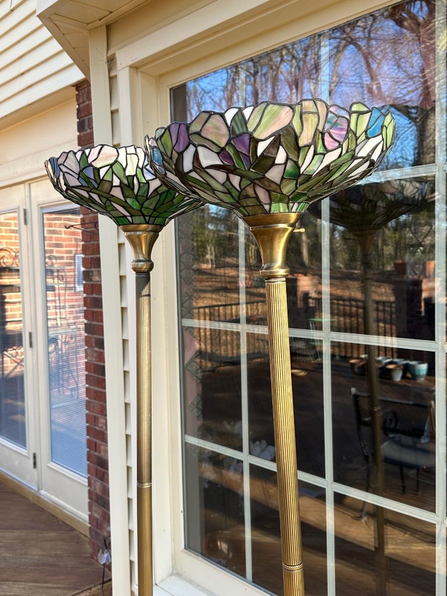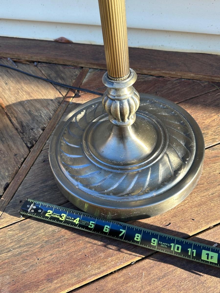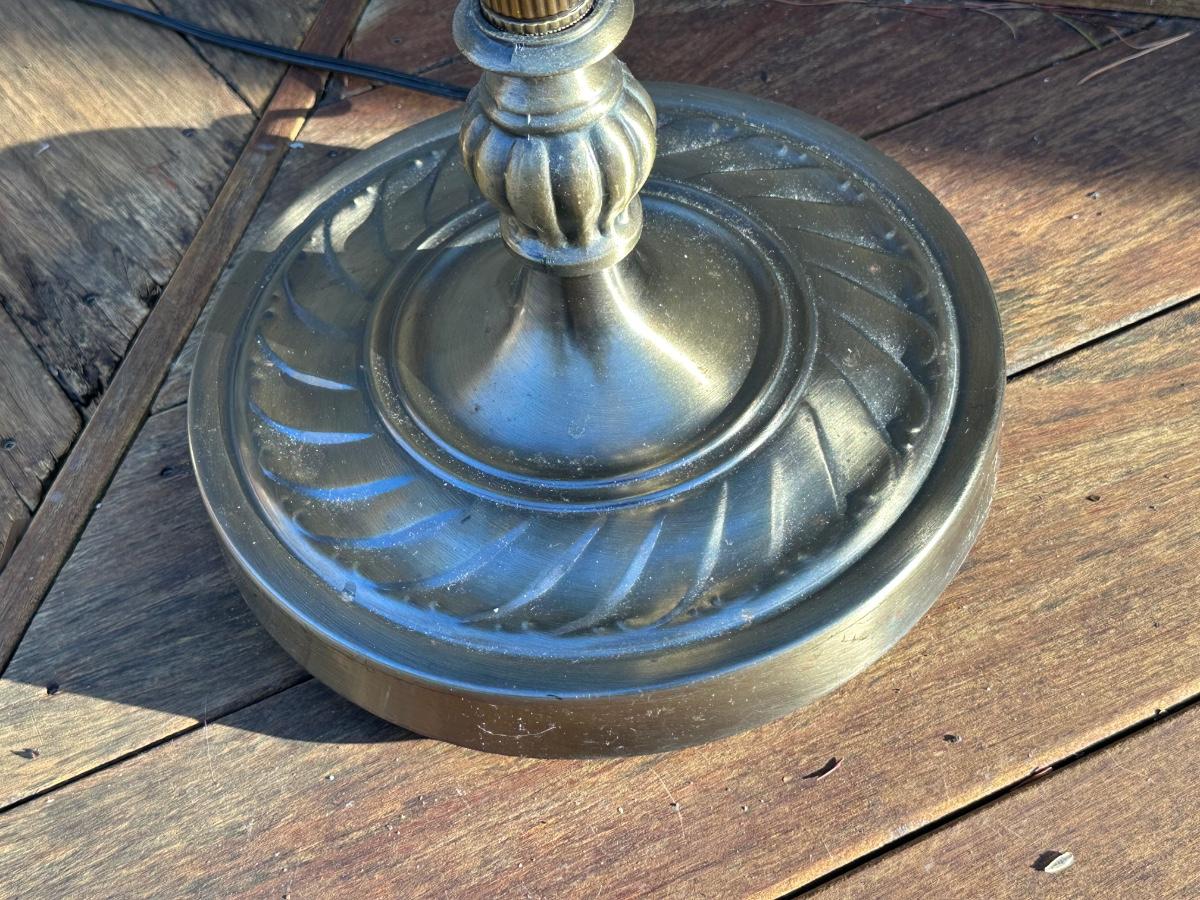 Please review photos carefully. Important — Lamps are in good condition, however there is about a 1” height difference. One lamp does slightly lean (it may need to be tightened, but we are not entirely sure) and one is missing half of a base foundation (pictured)