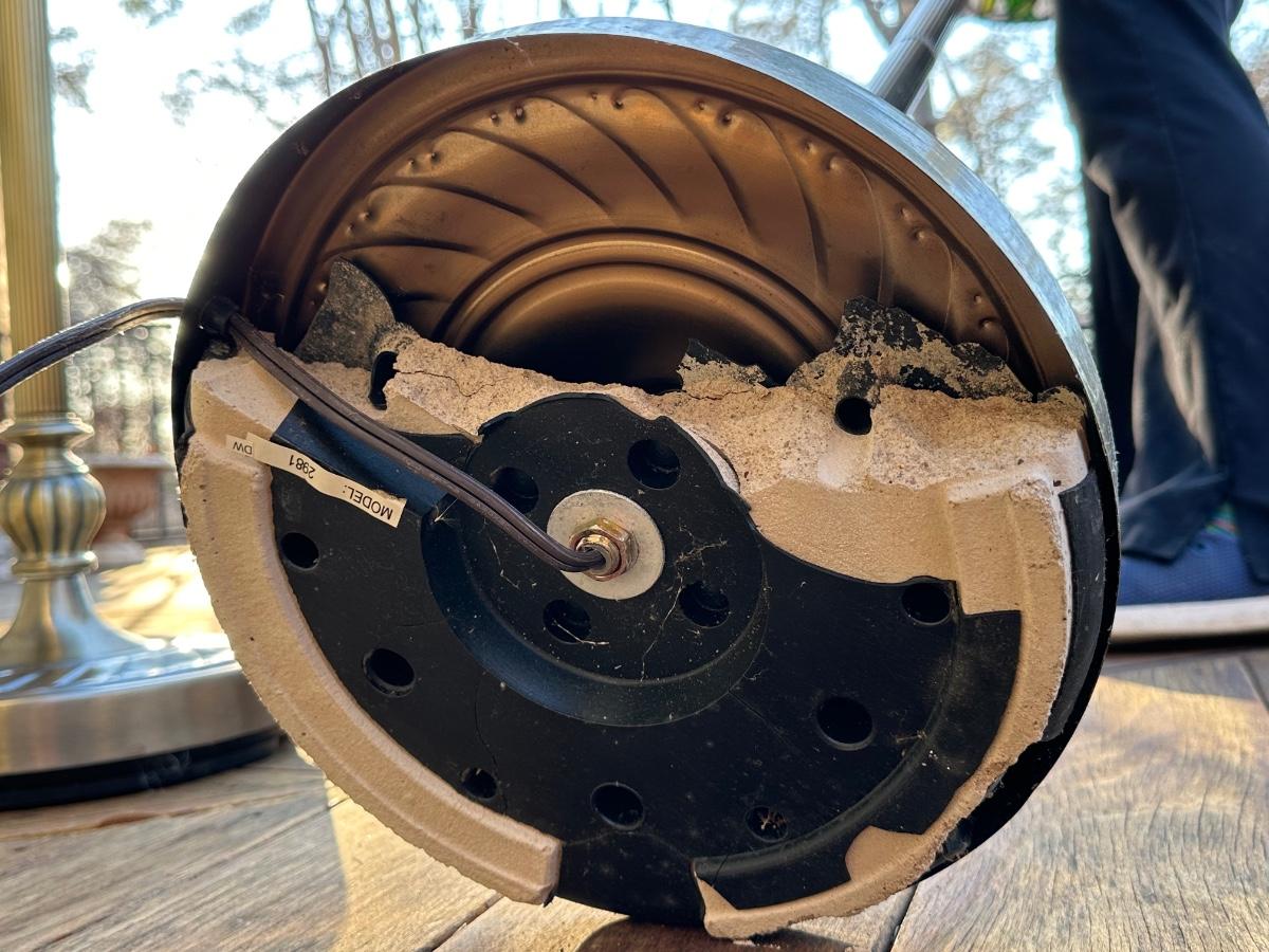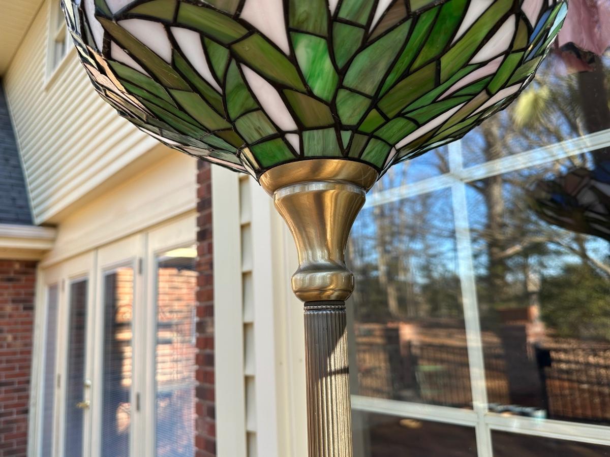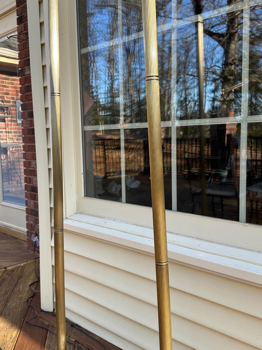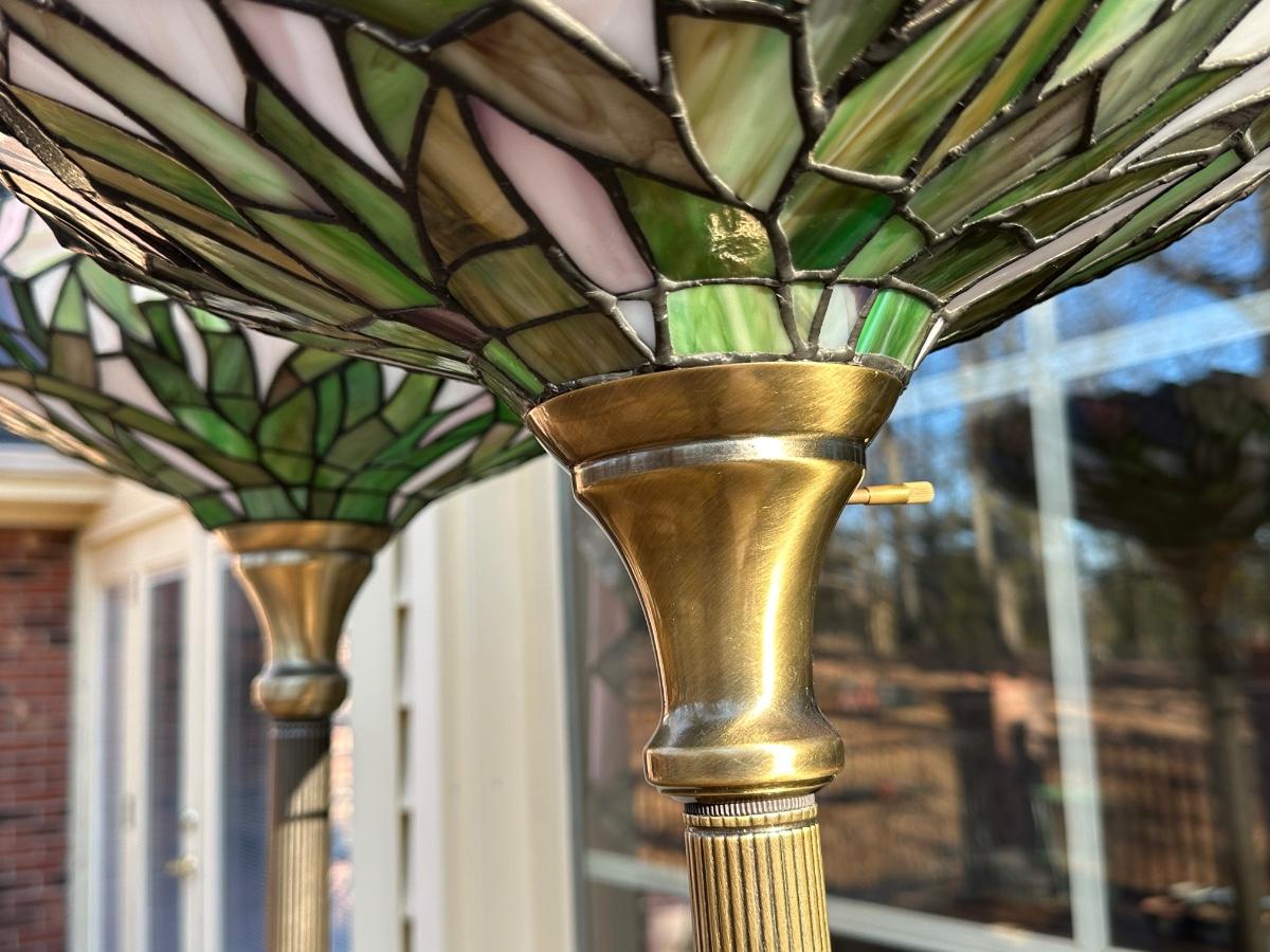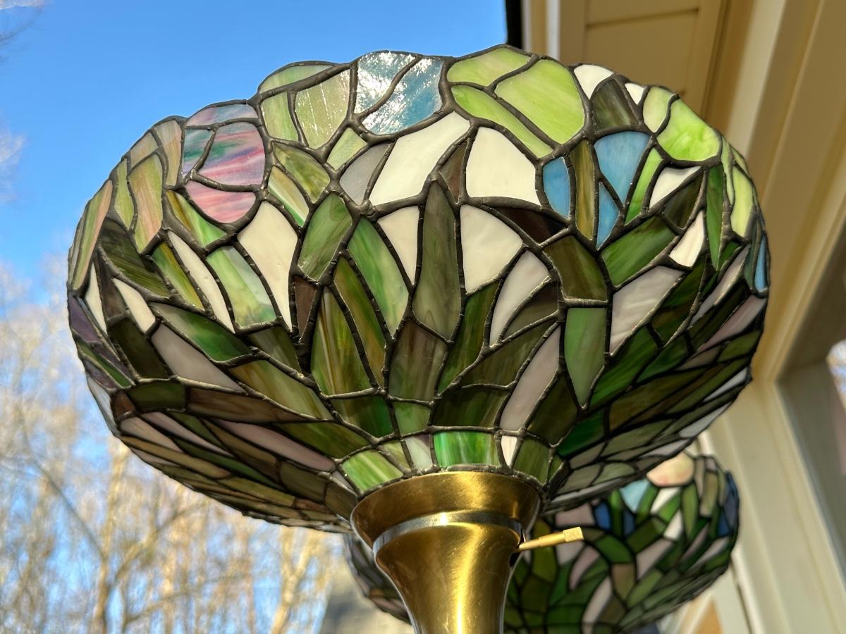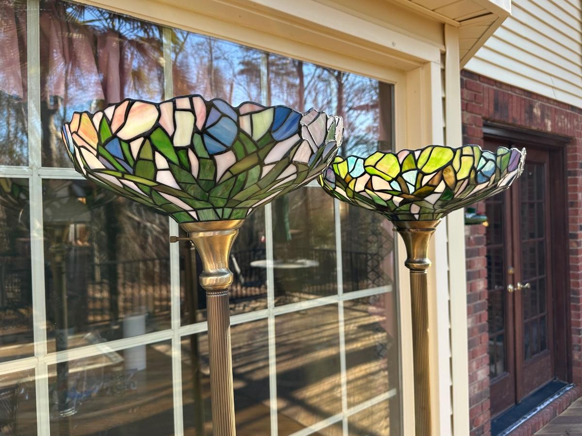 Please review photos carefully. Important — Lamps are in good condition, however there is about a 1” height difference. One lamp does slightly lean (it may need to be tightened, but we are not entirely sure) and one is missing half of a base foundation (pictured)