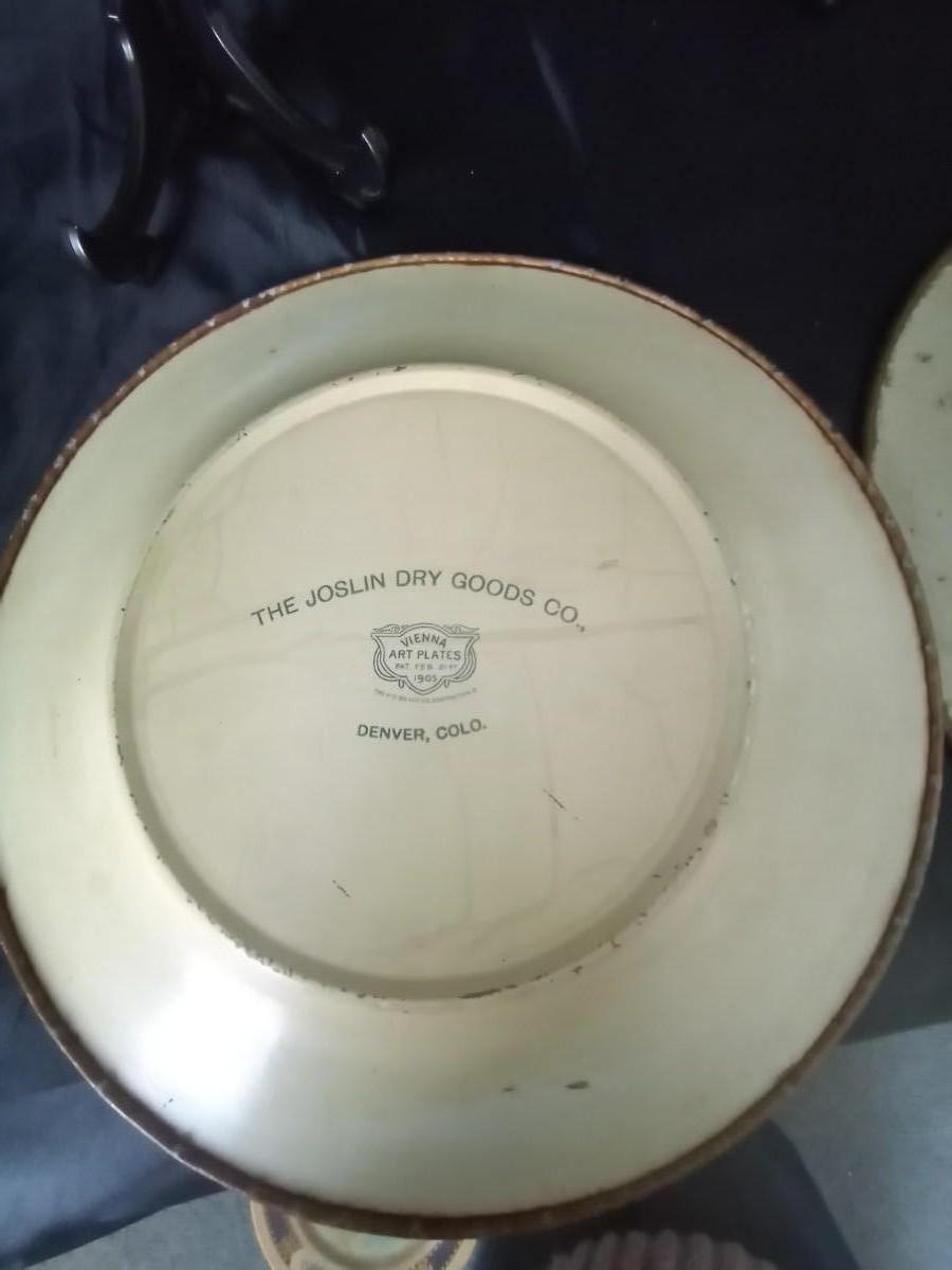 1 PLATE IS MARKED THE JOSLIN DRY GOODS CO. DENVER COLO BOTH ARE APPROX. 10" ROUND