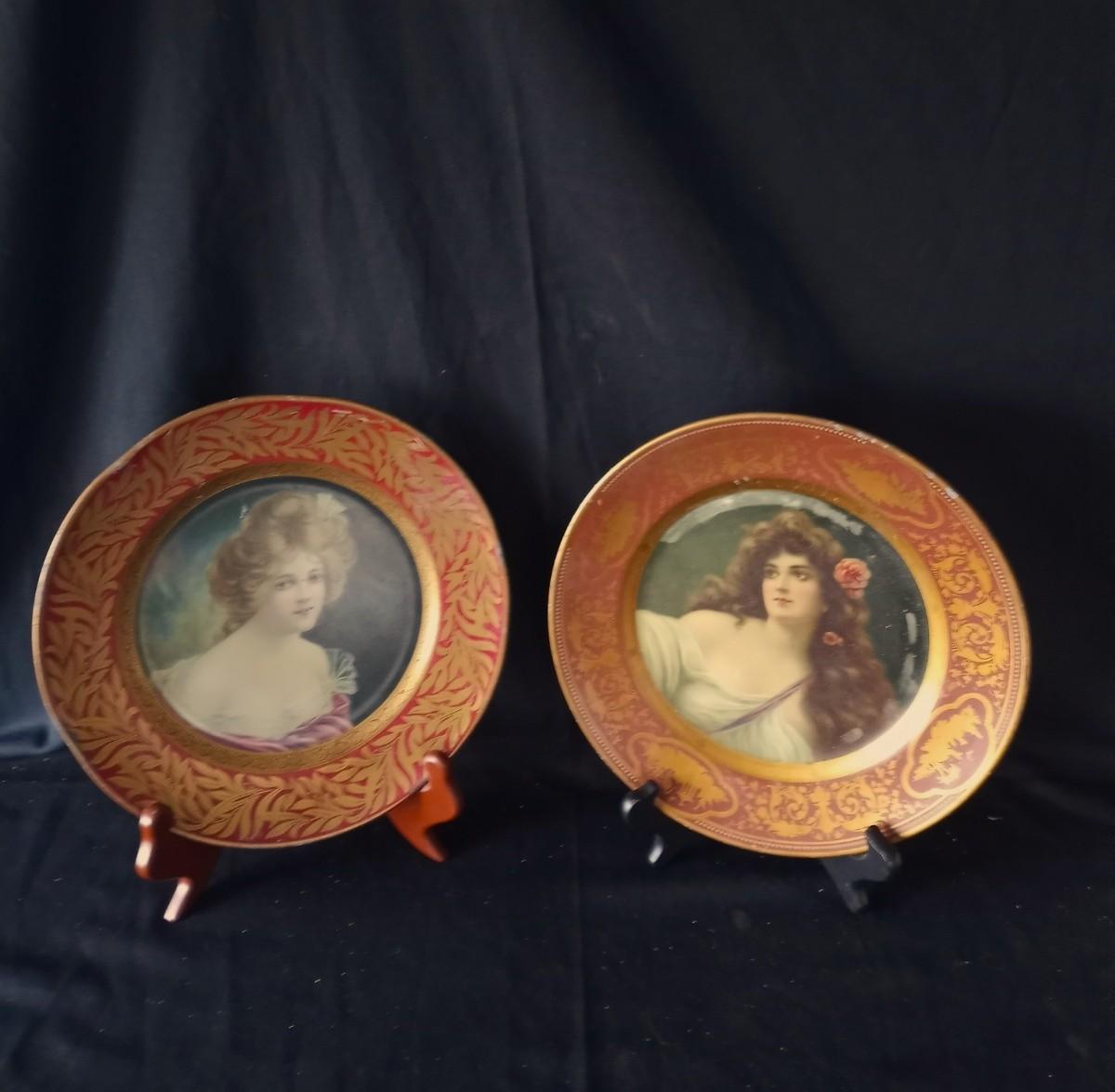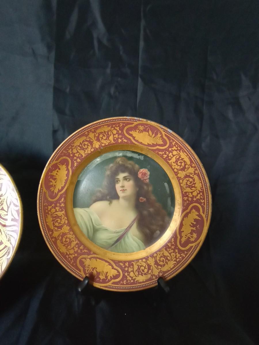 TWO ANTIQUE PROMOTIONAL TIN VIENNA ART PLATES