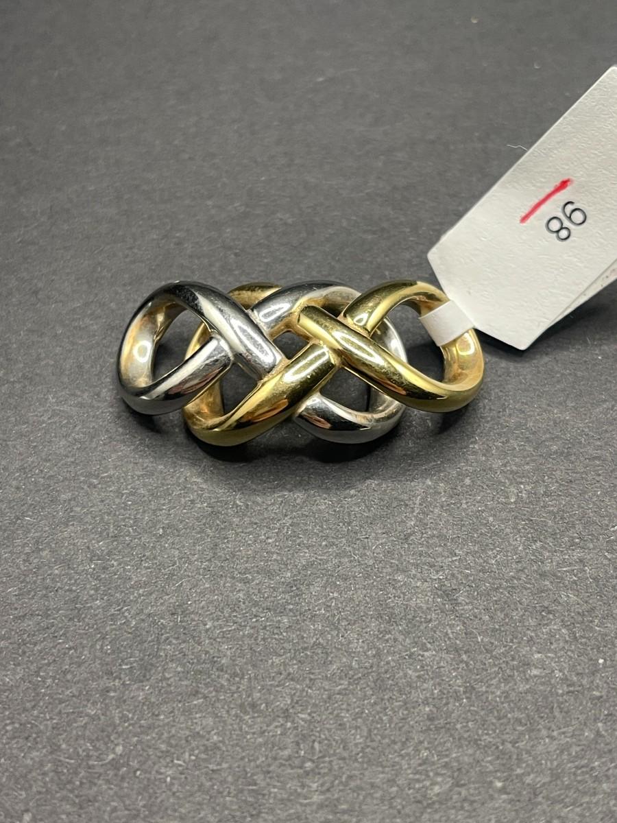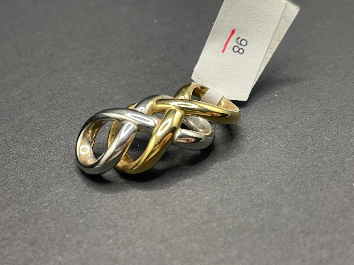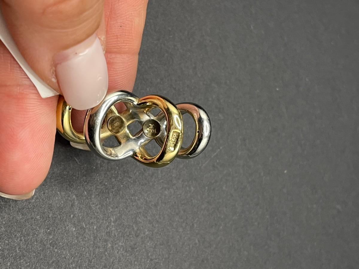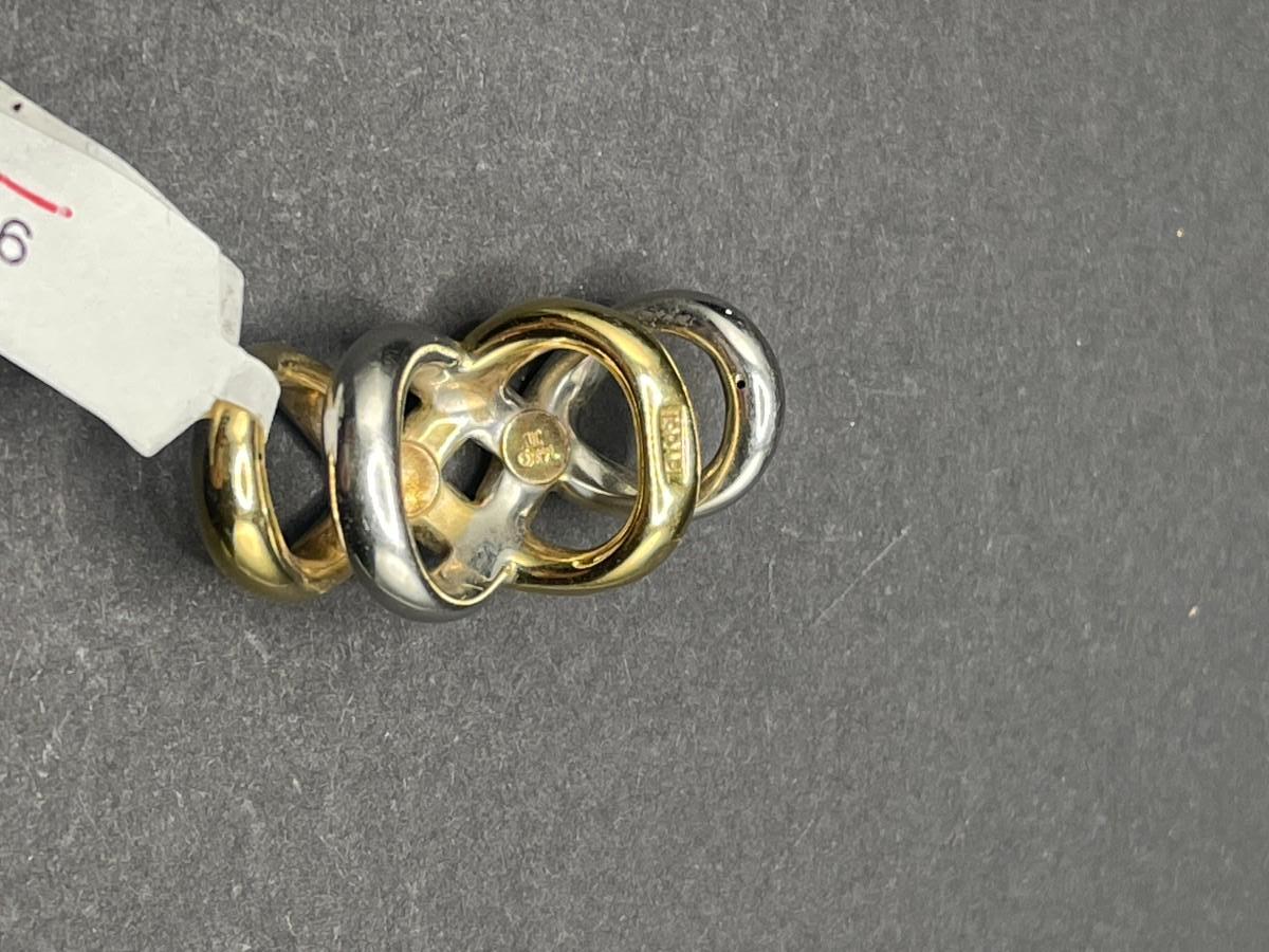 14K white and yellow gold double infinity pendant, stamped Israel and 14K. 2.48 grams.