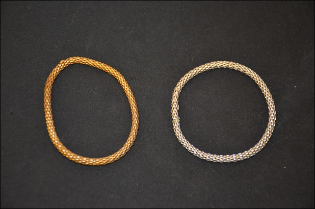 Two tone sterling silver bracelet pair, one is silver the other is gold tone. T