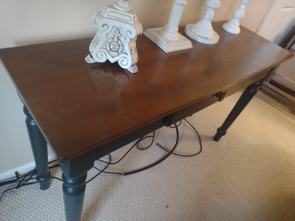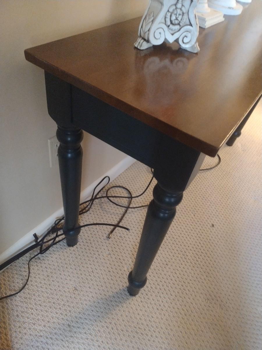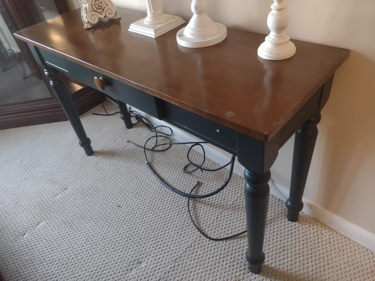 Two Tone Wood Finish Sofa Table (No Contents)