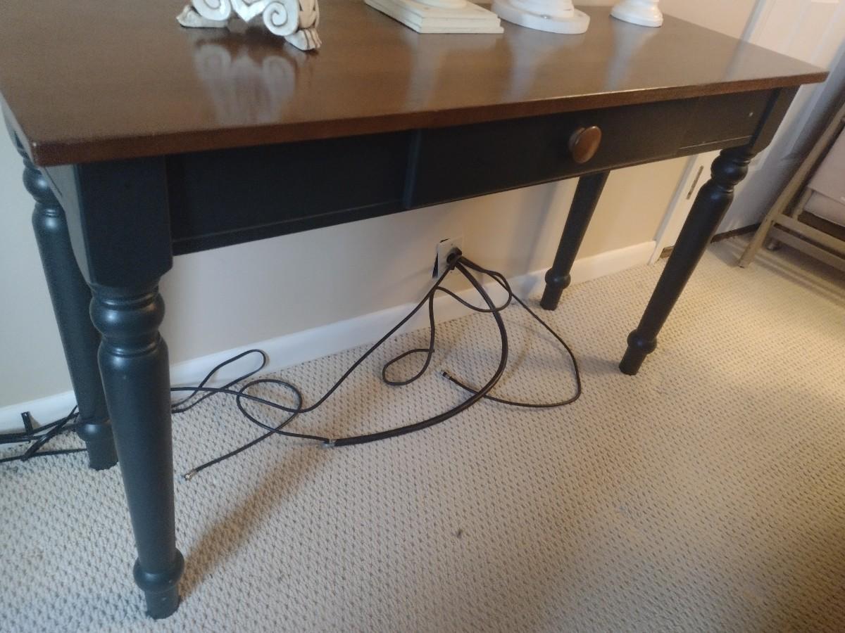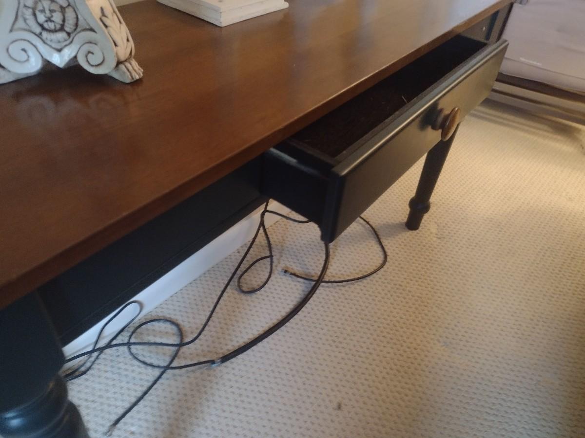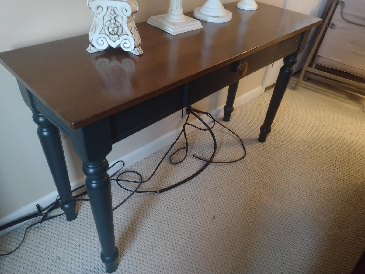 Two Tone Wood Finish Sofa Table (No Contents)