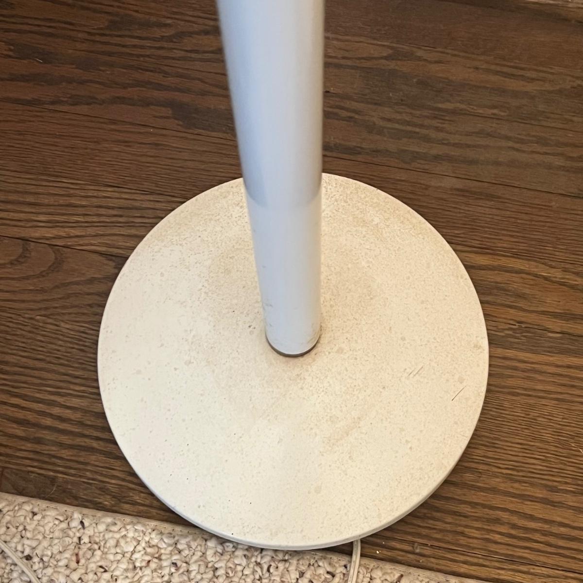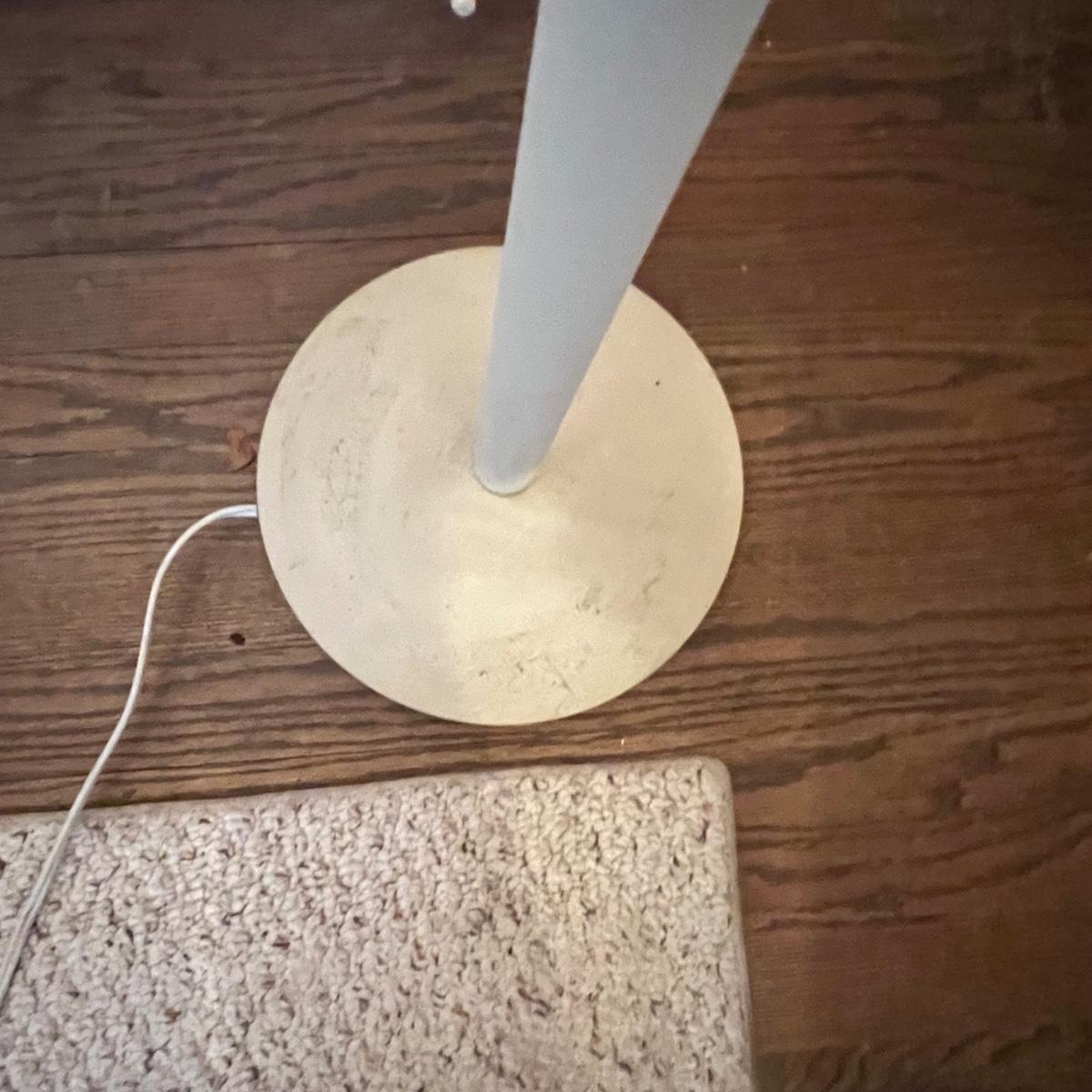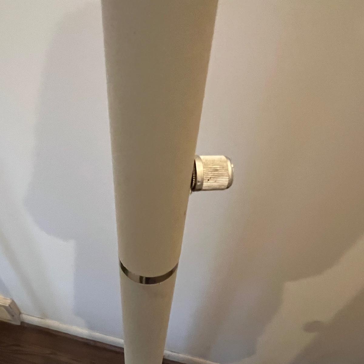 Both of these torchiere lamps stand 71”H ; lamp pictured on the left has a 12” base and this one has a dimmer switch, the other is a two way which offers two levels of lighting. They need cleaning.