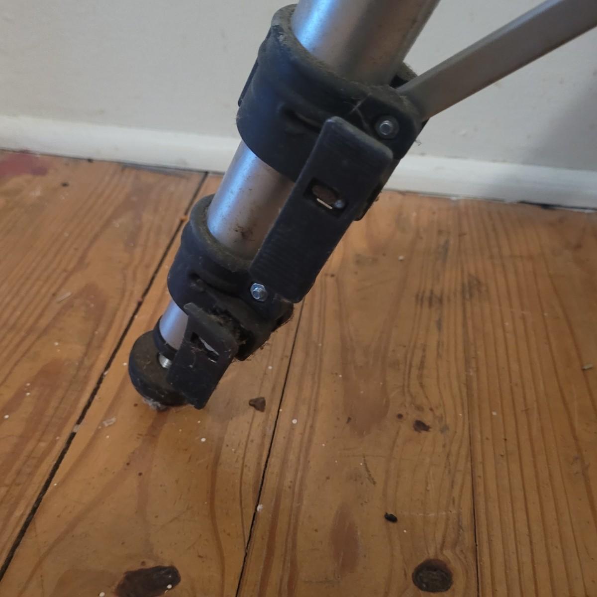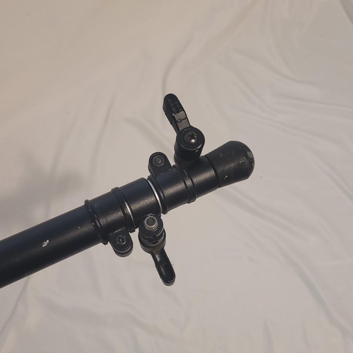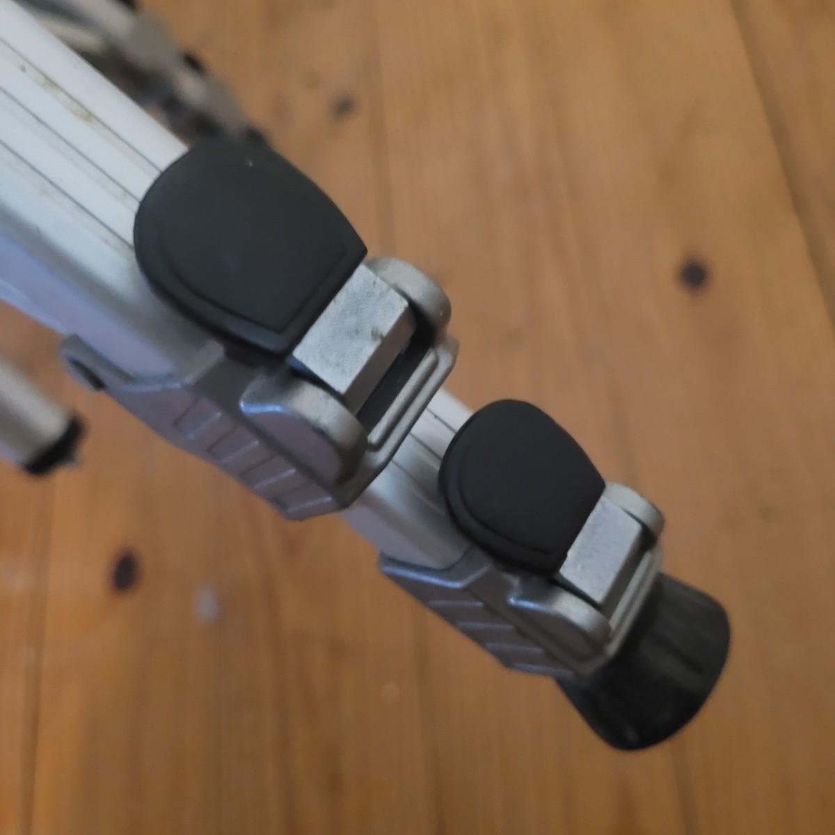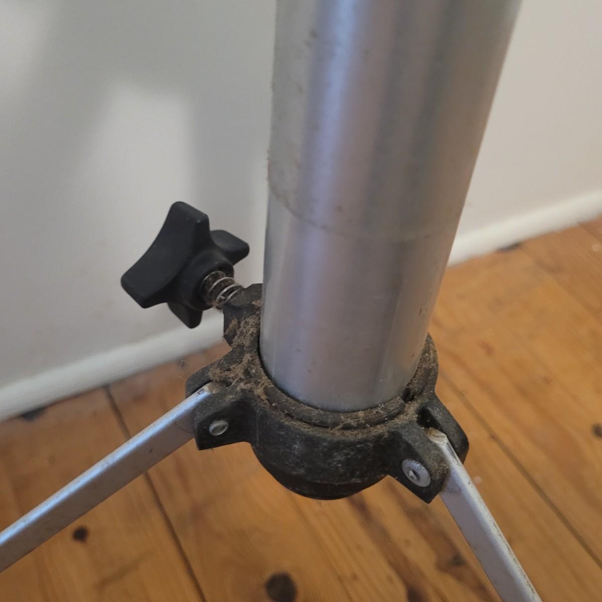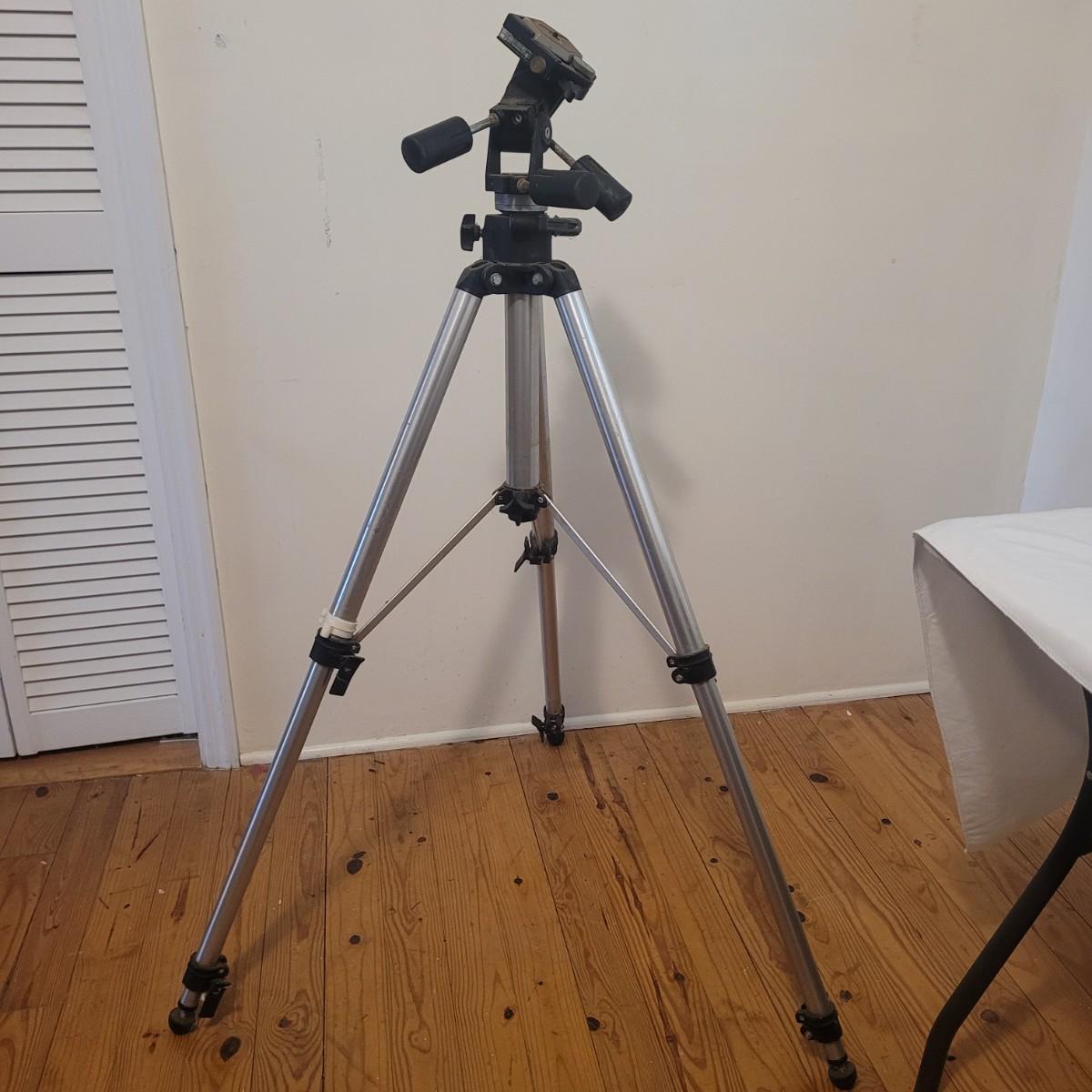 Three different types of camera stands. One Bogen brand professional tripod (model 3033) with a very sturdy metal frame. The Bogen measures 33"H to start and extends to 70"H. One Velbon brand tripod (model VGB-3C) also with a sturdy metal frame. The Velbon starts at 21"H and extends to 50"H.