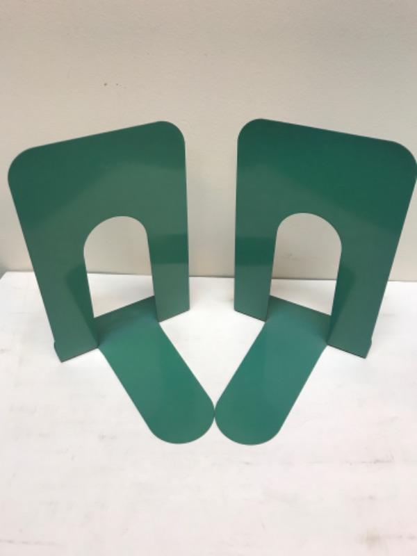 One set of two sturdy metal bookends. Measures 9 1/8” x 6”; unmarked. In excellent condition; see pictures.