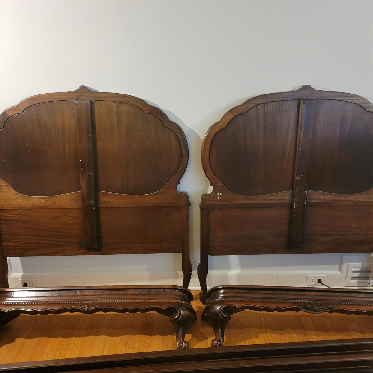 Two Twin Antique Hathaway Bed Frames (LR-DW)
