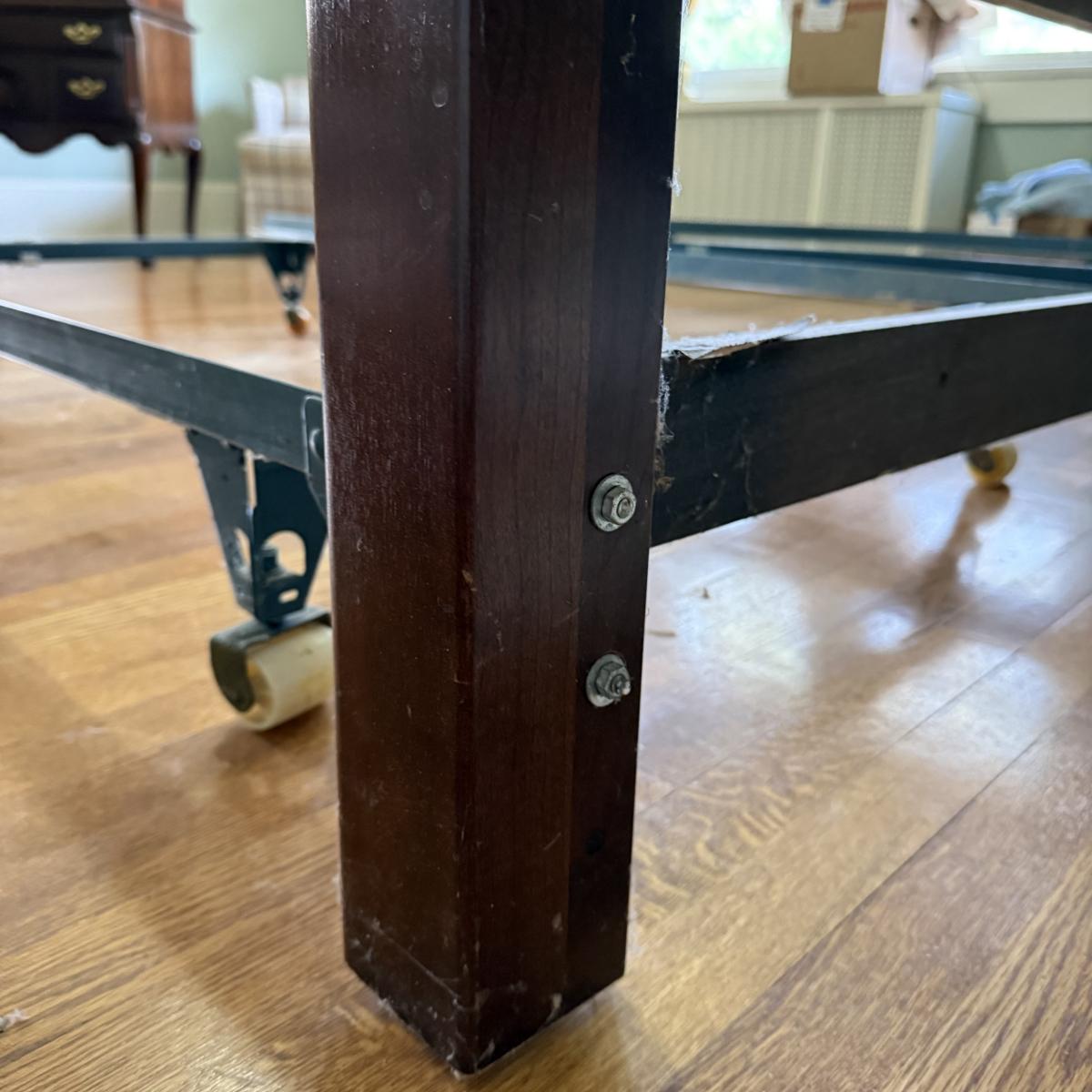 Twin headboards have attached rolling metal frames that could be removed. Buyer should bring appropriate tools to disassemble - see photos for hardware.
