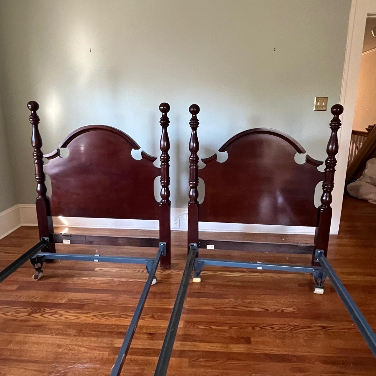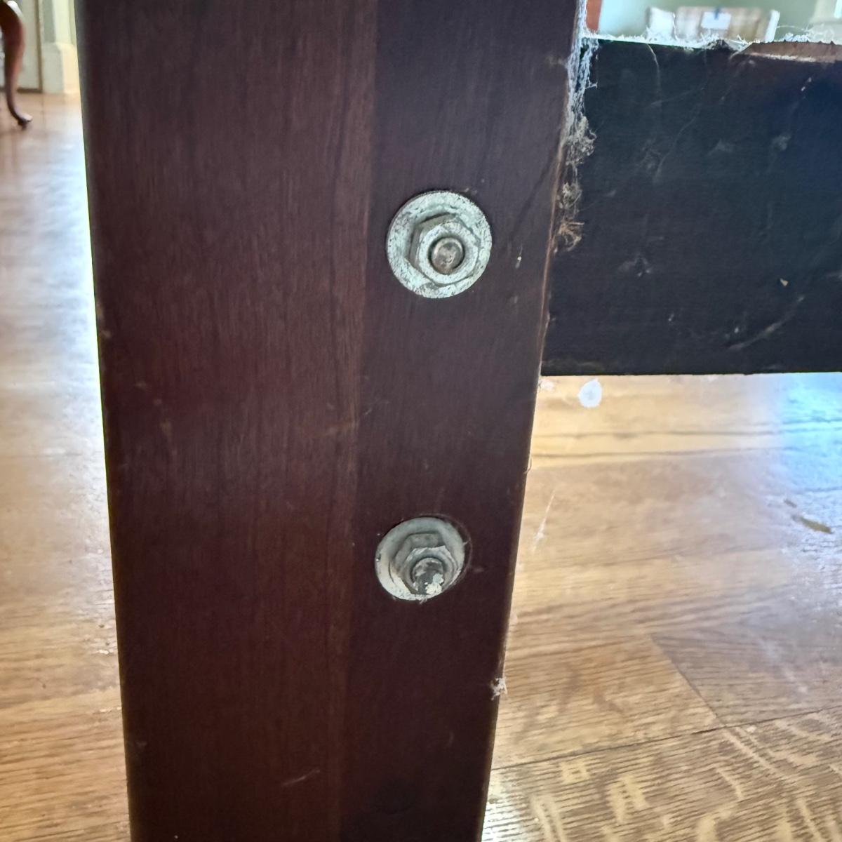 Mild signs of wear. Headboard measures 41.25” x 3.25” x 50”H. Approx 79” long from head to toe if mattress was in place.