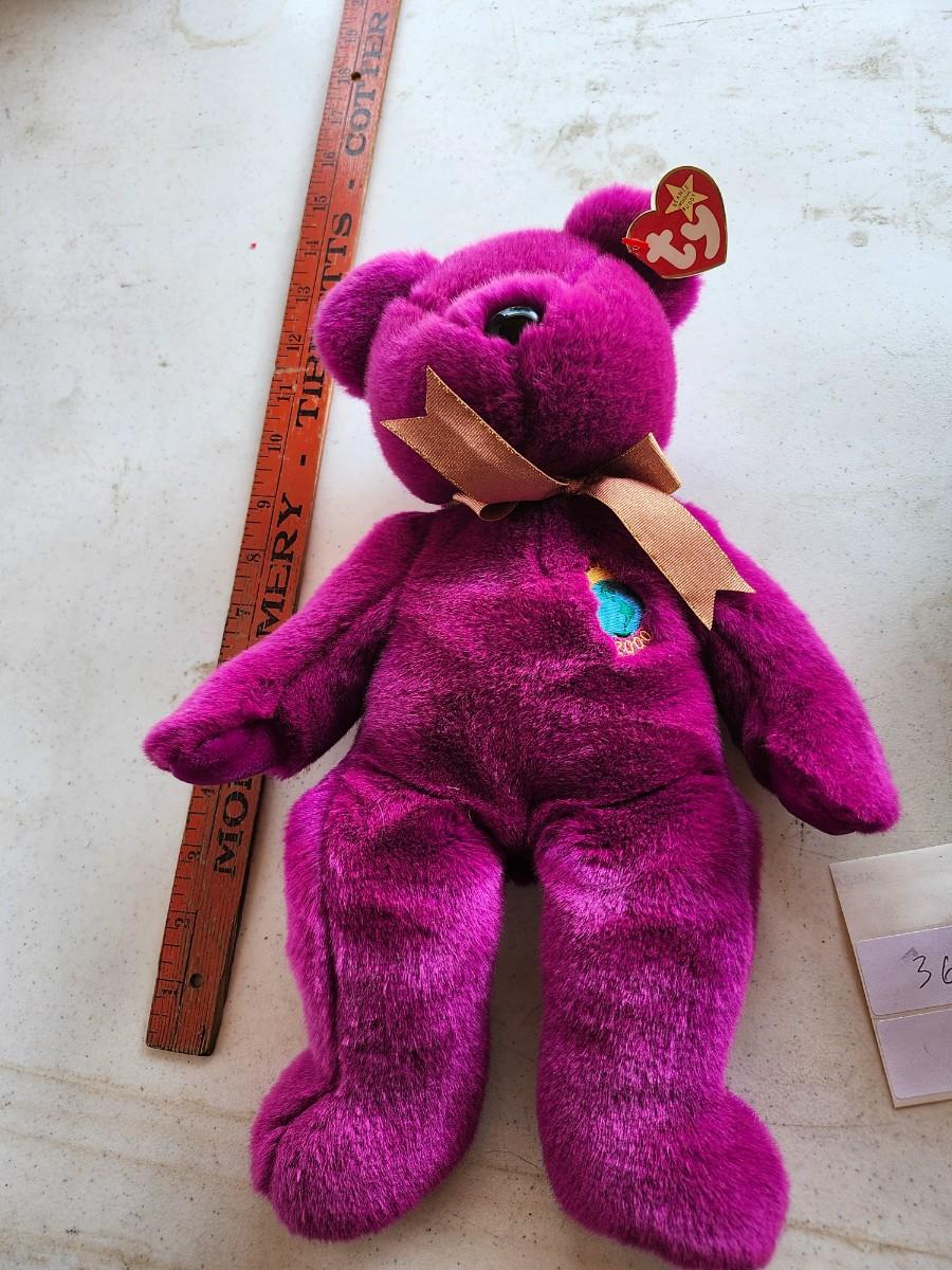 2000 Original TY Beanie Buddy plush Millennium purple bear