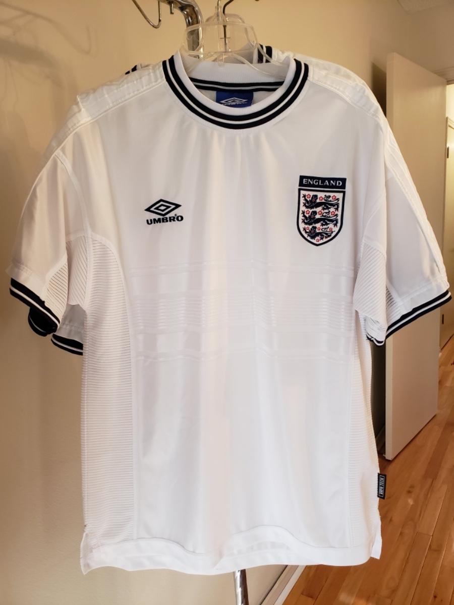 TWO Umbro soccer jerseys - England. This style used 1999-2001. Mens Size L. NEW
