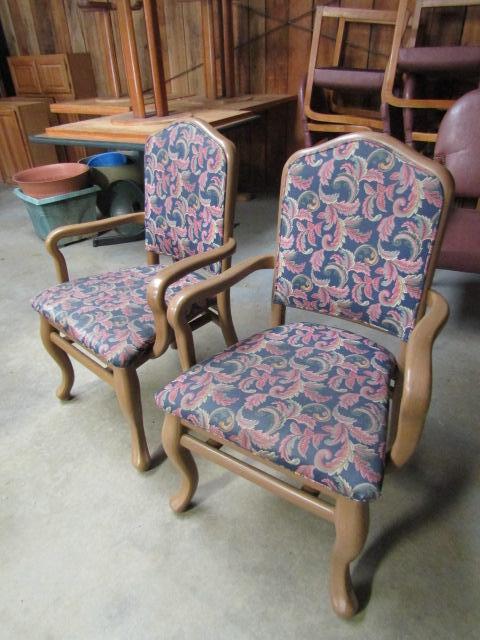 Two Upholstered Office Chairs by Joerns- 24" Wide. Please See Pictures: one chair has area where stitching is coming loose.